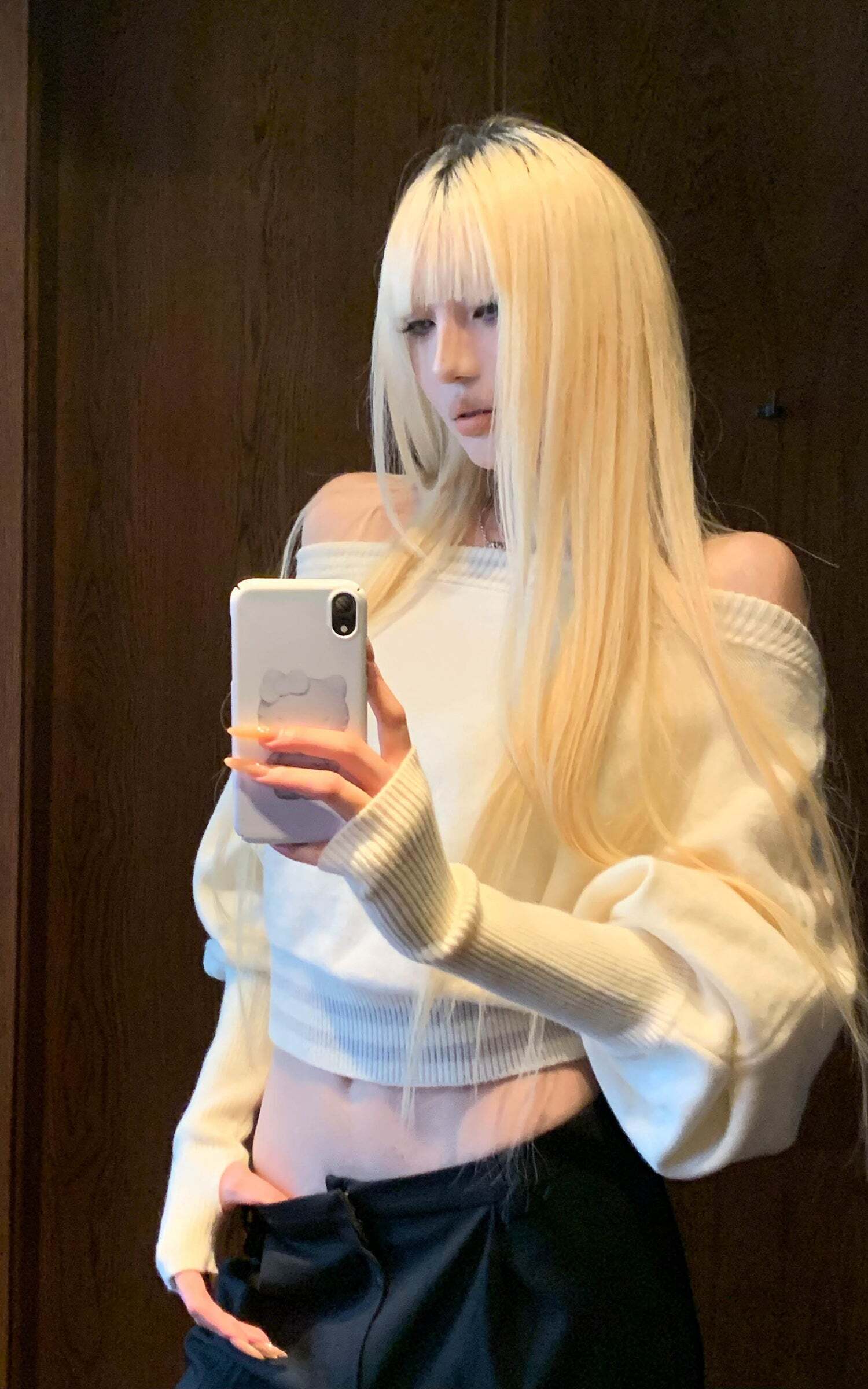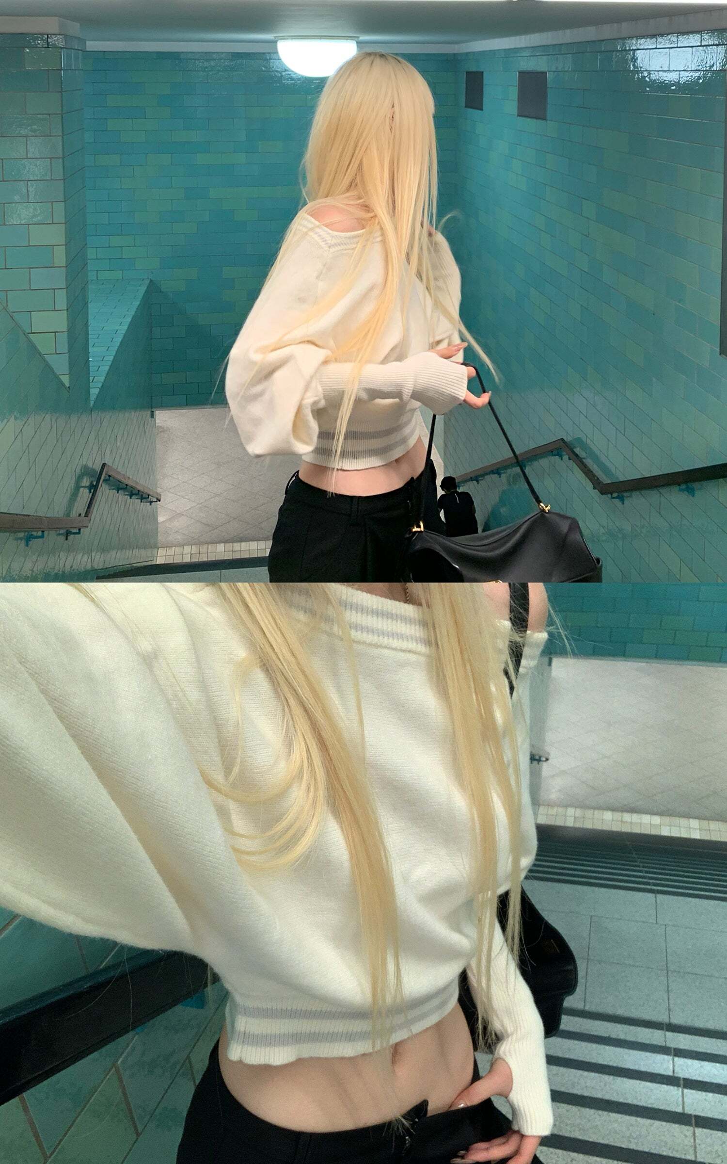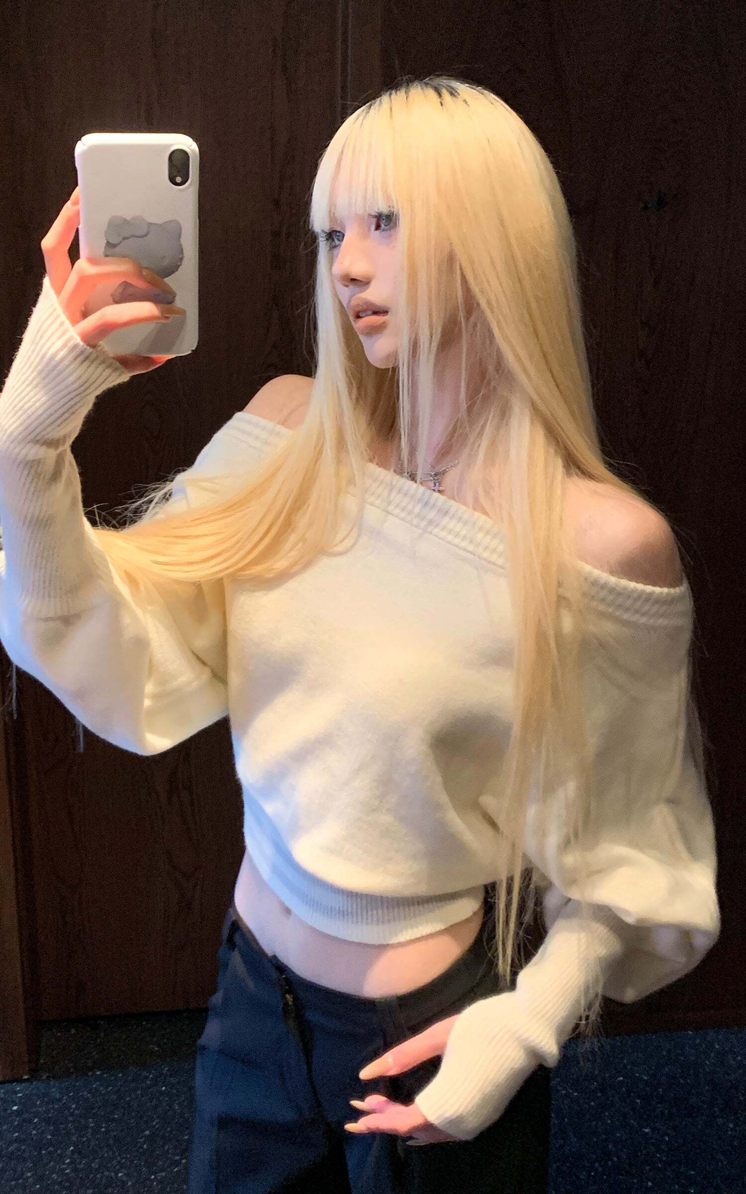 Rase le sol Off-Shoulder Knit Cropped Sweater
