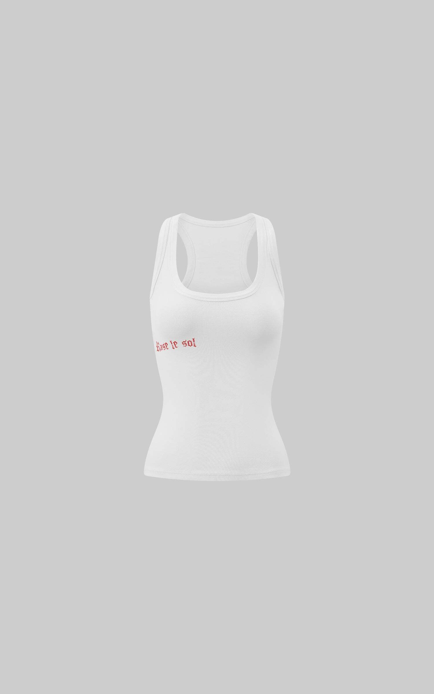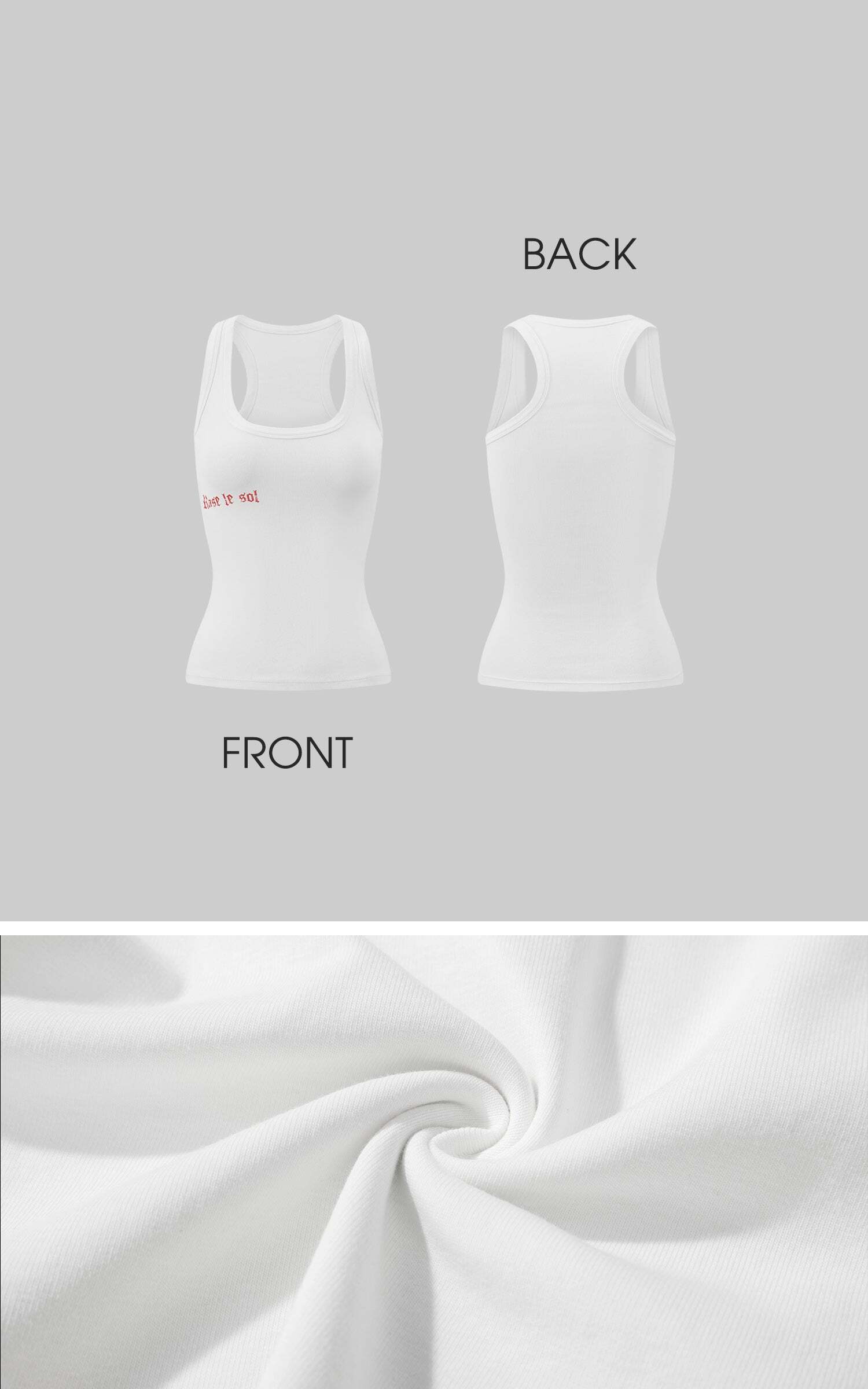 This white tank top is crafted from soft stretch cotton, providing a naturally fitted silhouette. The red letter print on the front adds a vintage touch to the minimalist design. Ribbed edges and a clean tank silhouette create a sharp and refined look. The sleeveless design and lightweight feel make it an ideal piece for summer and everyday styling.