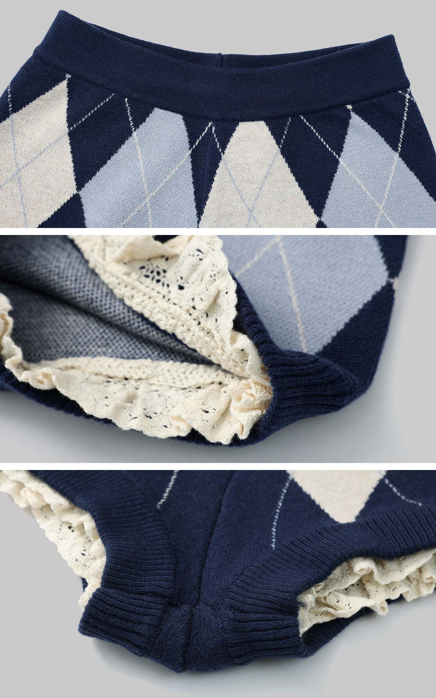 Retro Color-block Argyle Knitted Shorts: Must-have for Fall Clothing Trends 2025