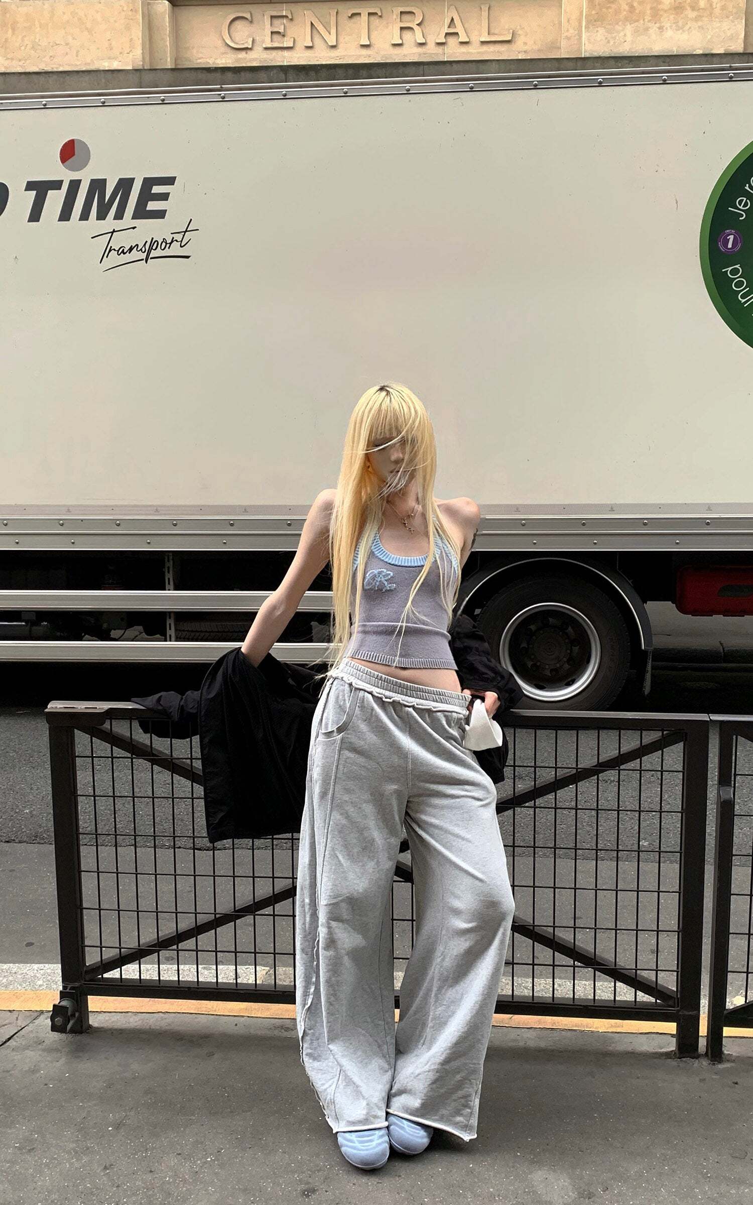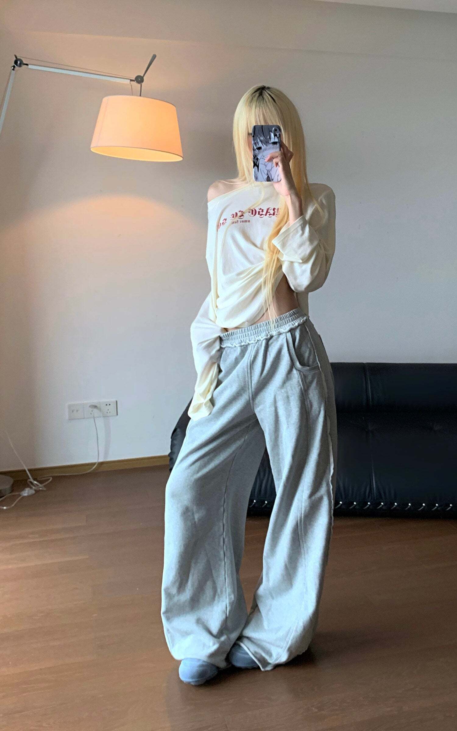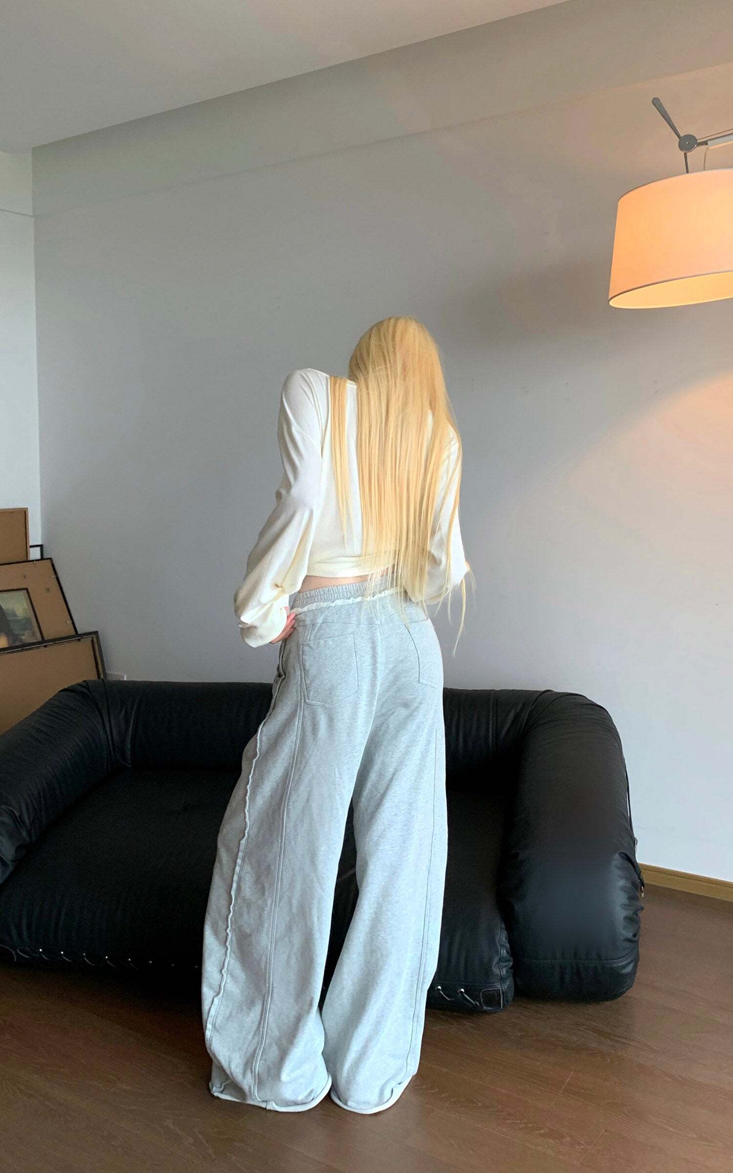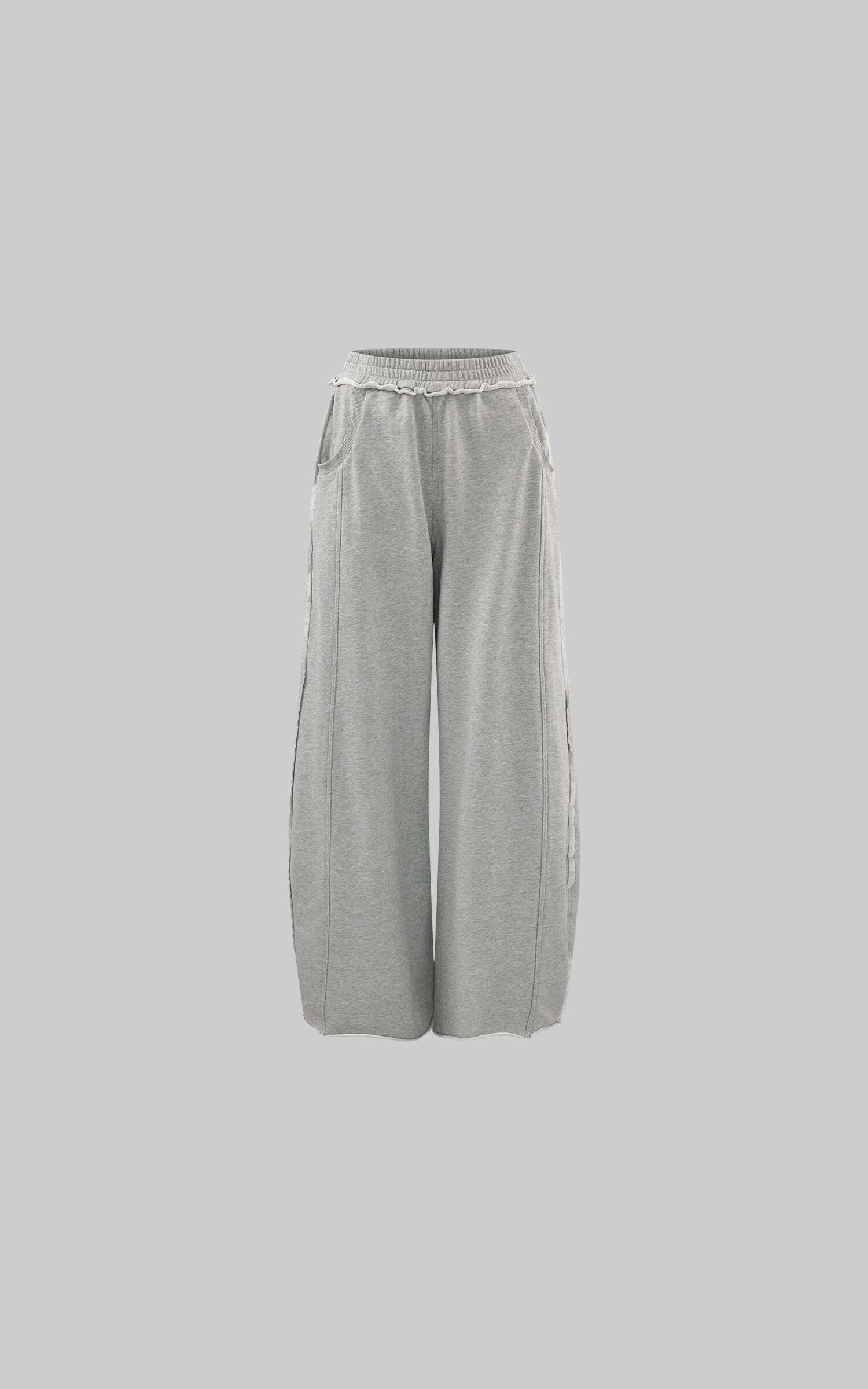 Ruffled Waist Wide-leg Sweatpants in Heather Grey for Effortless Summer Fits