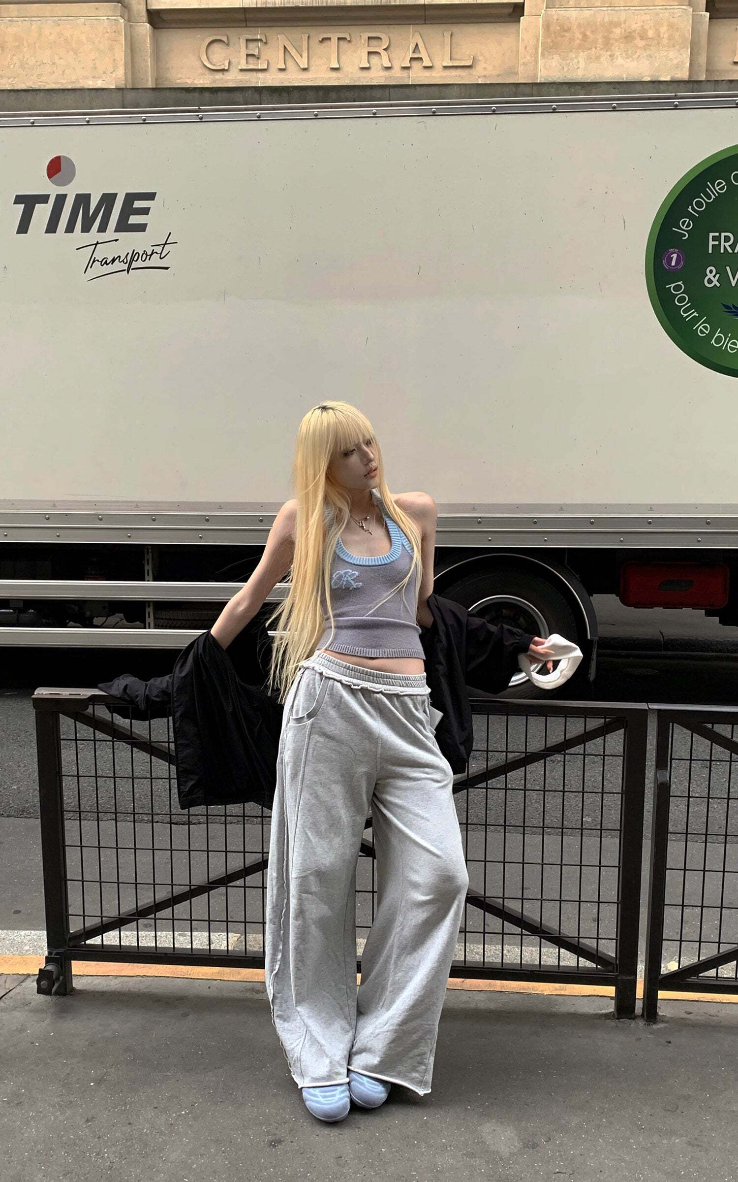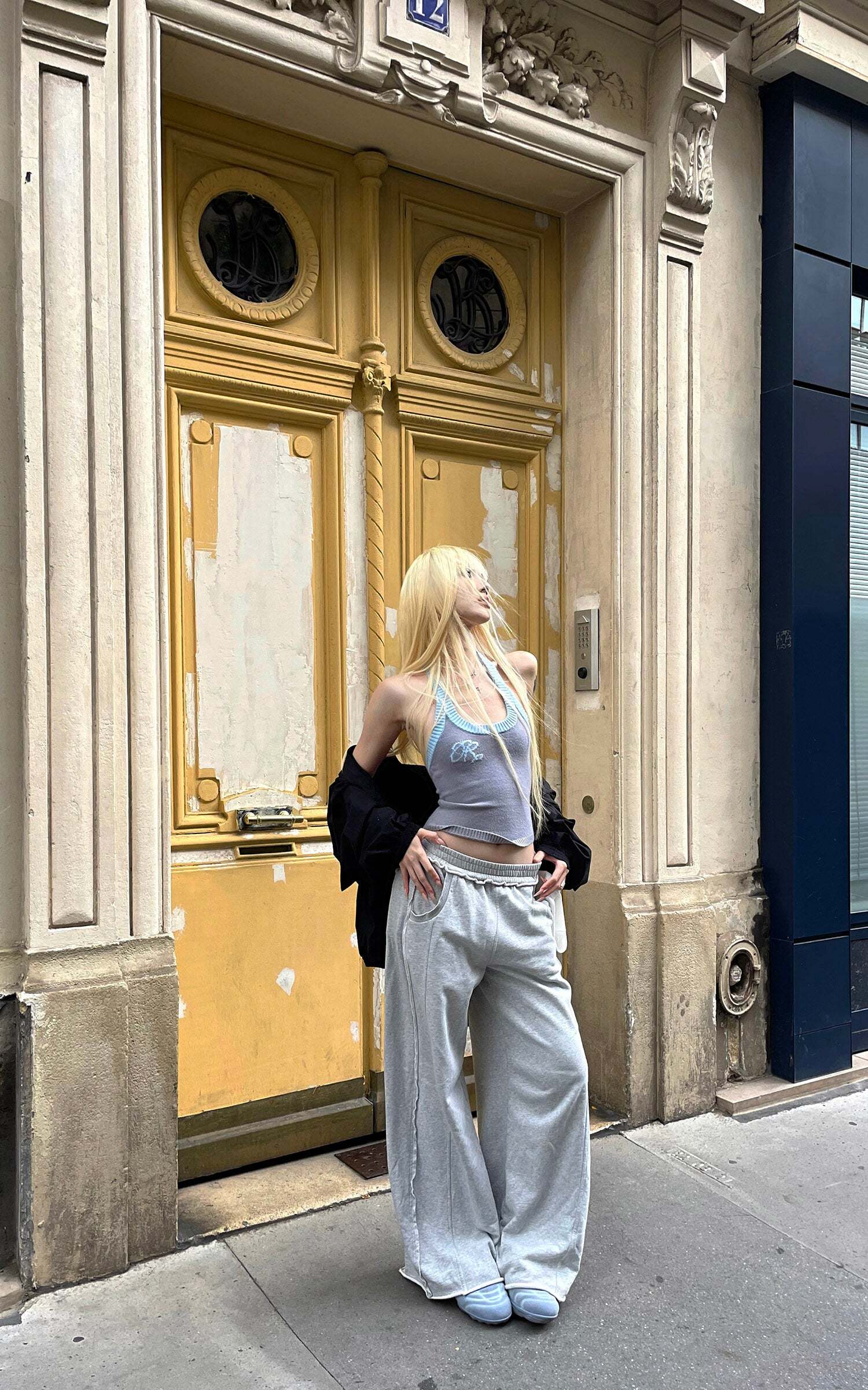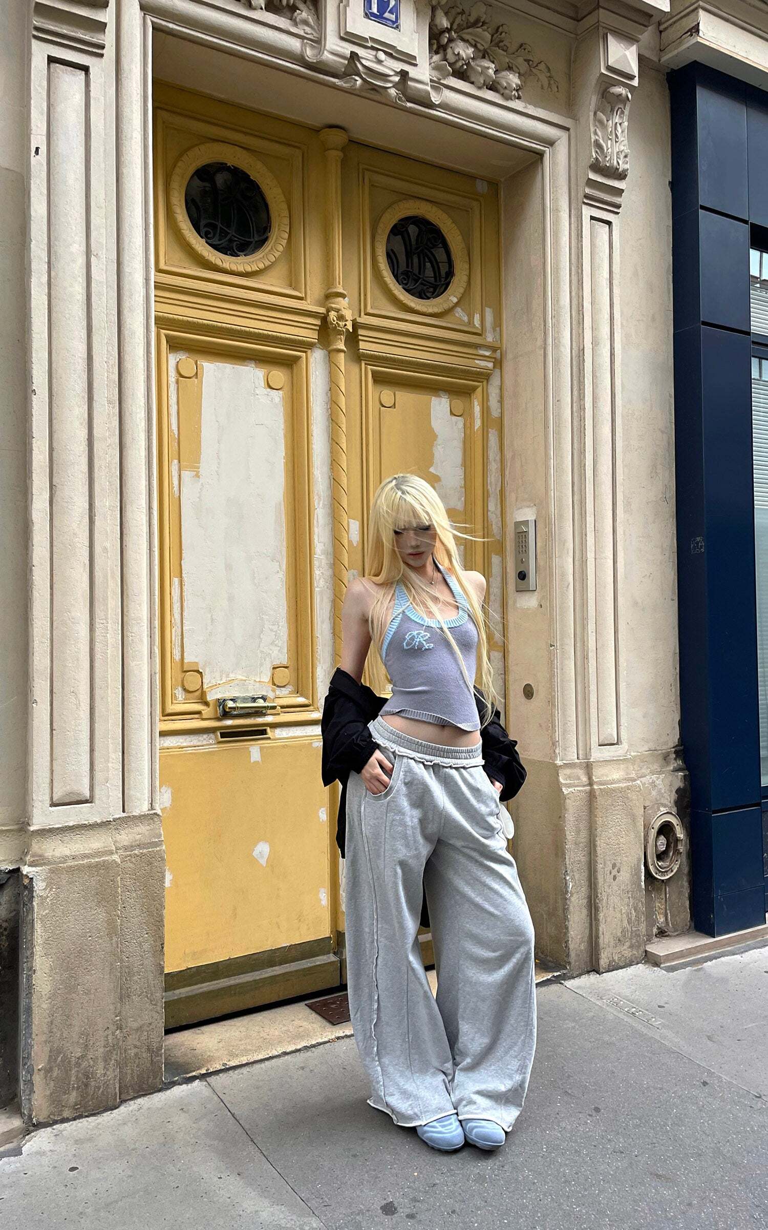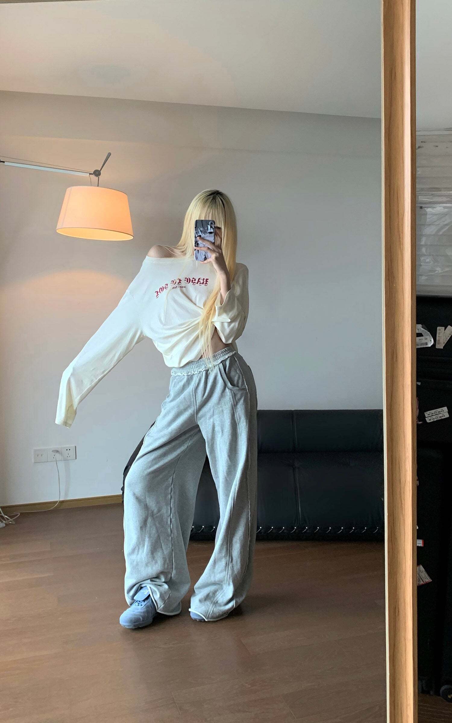 Ruffled Waist Wide-leg Sweatpants in Heather Grey for Effortless Summer Fits