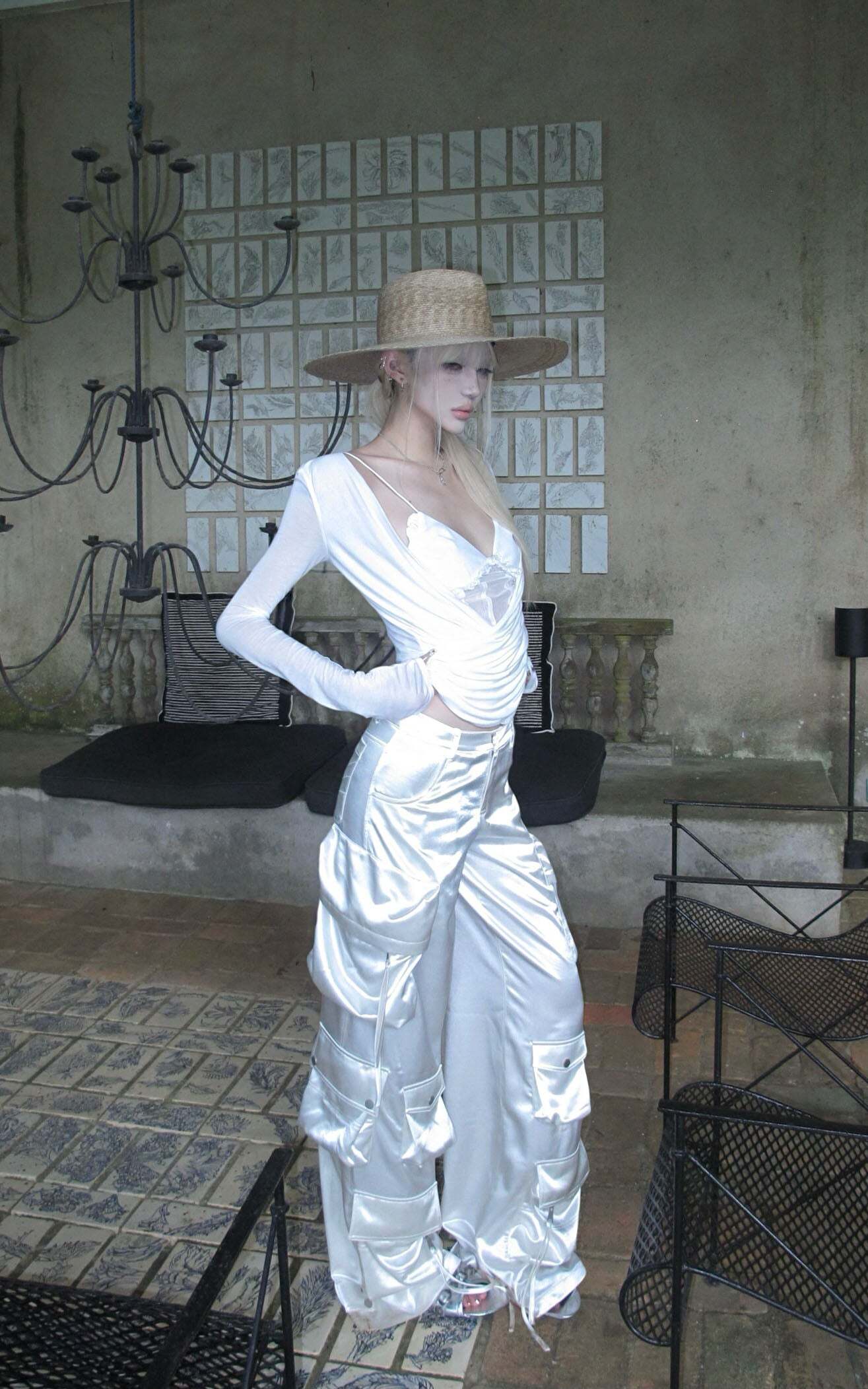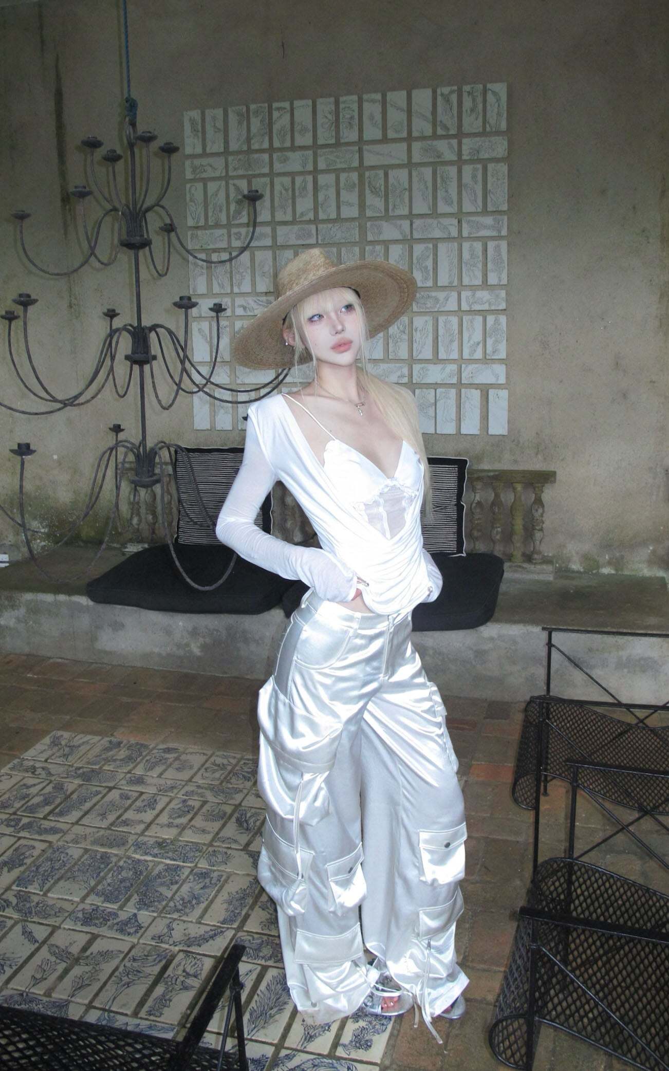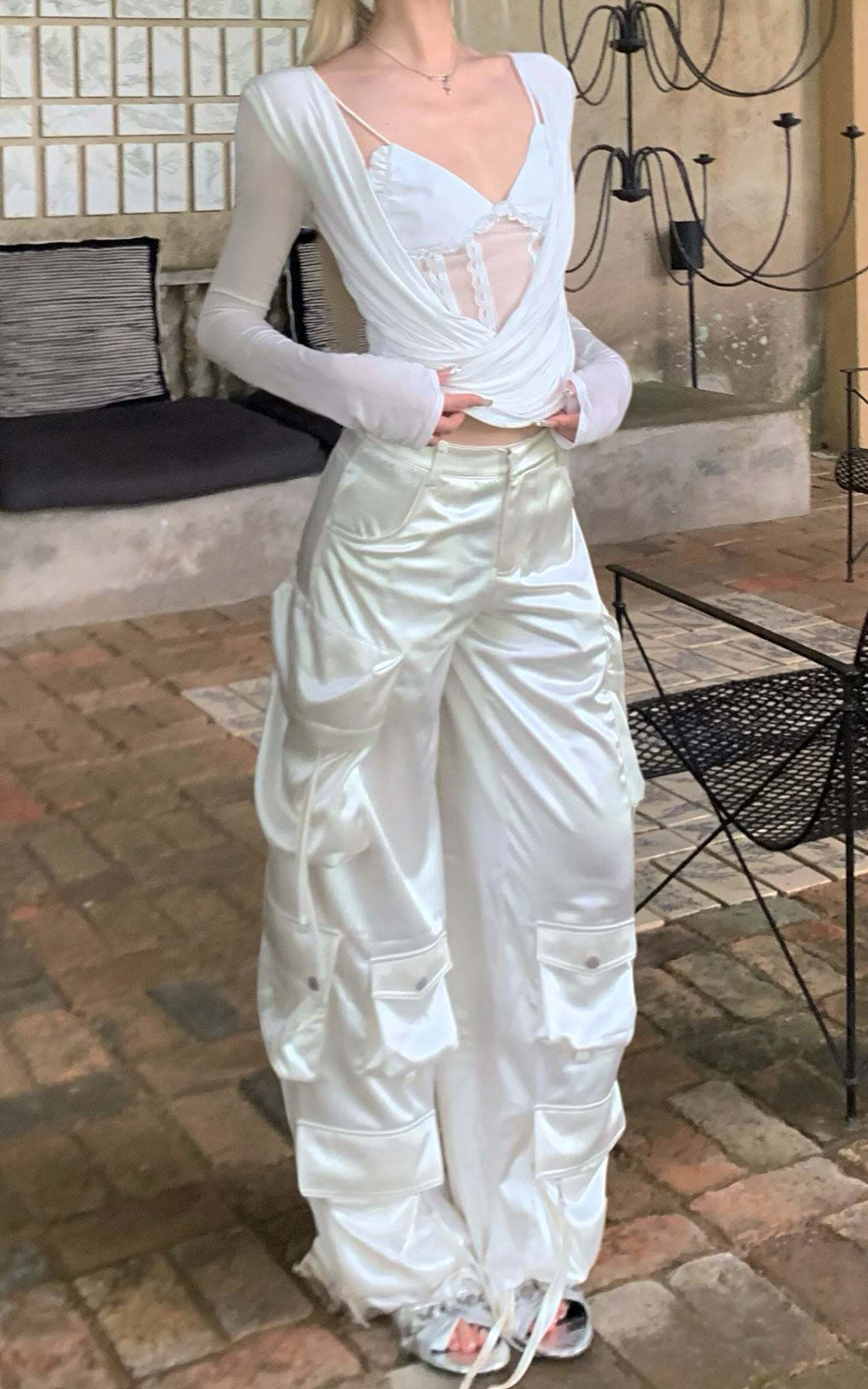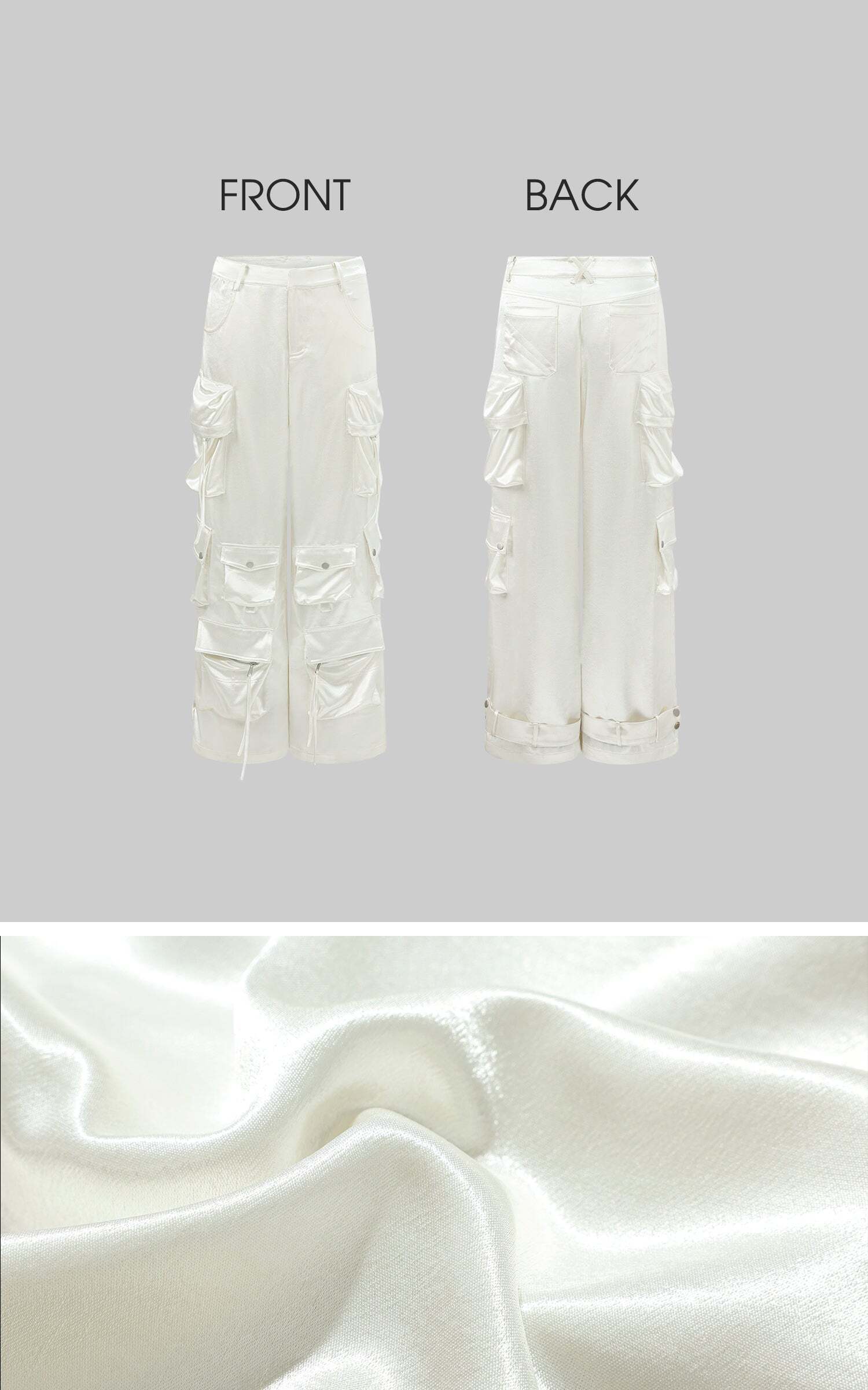 Satin Multi-pocket Cargo Pants: Elevate Your Cargo Pants Outfit Today!