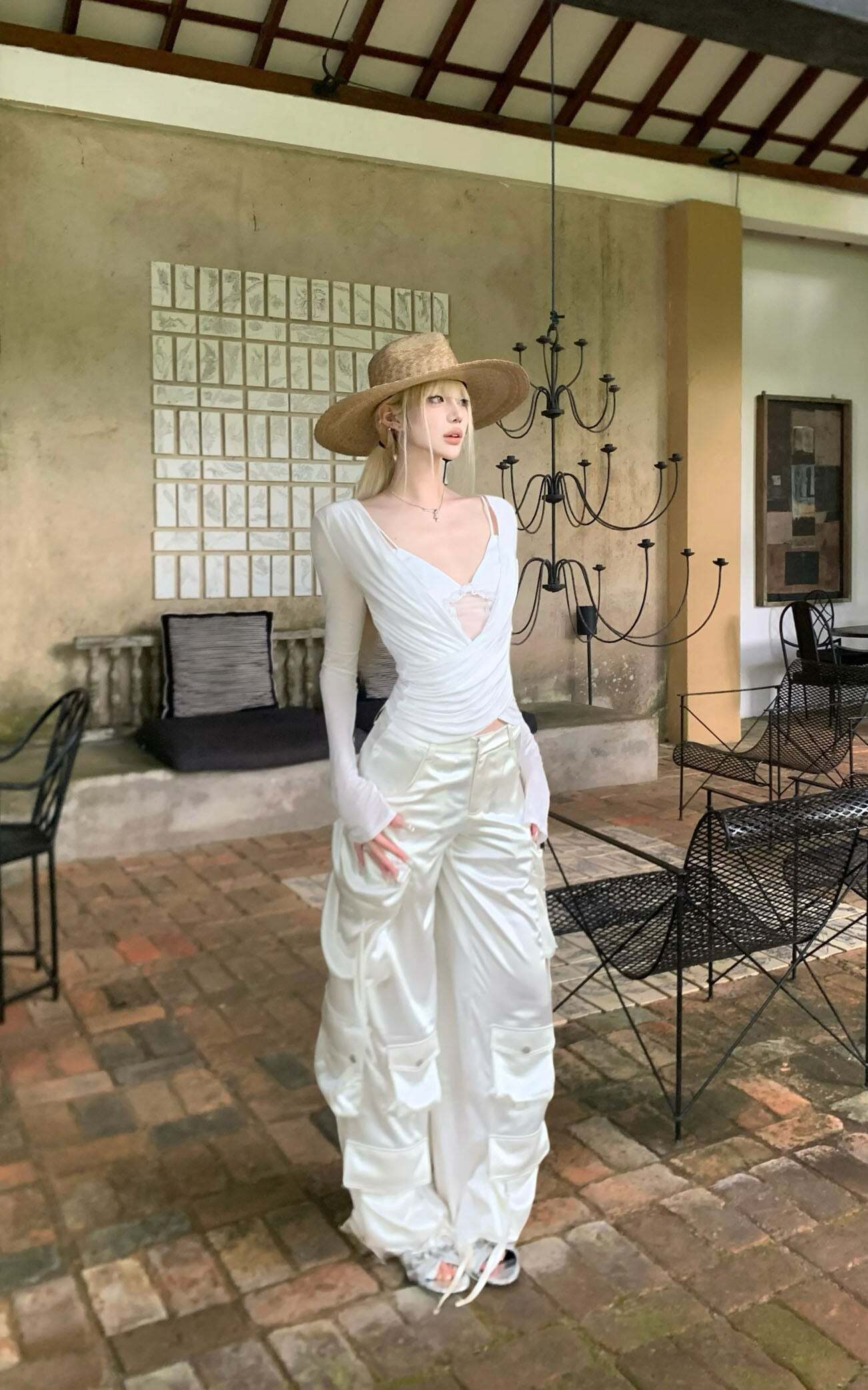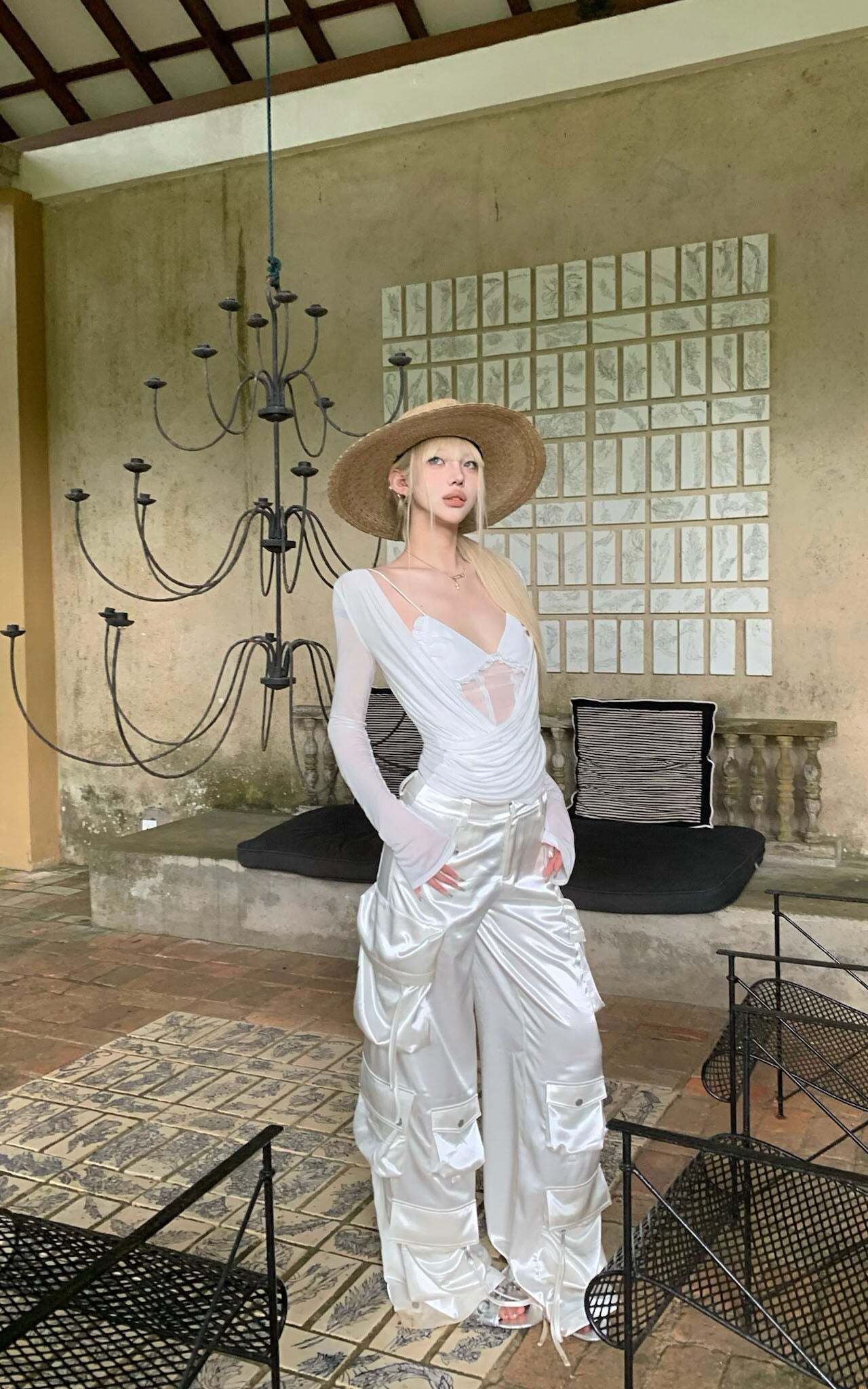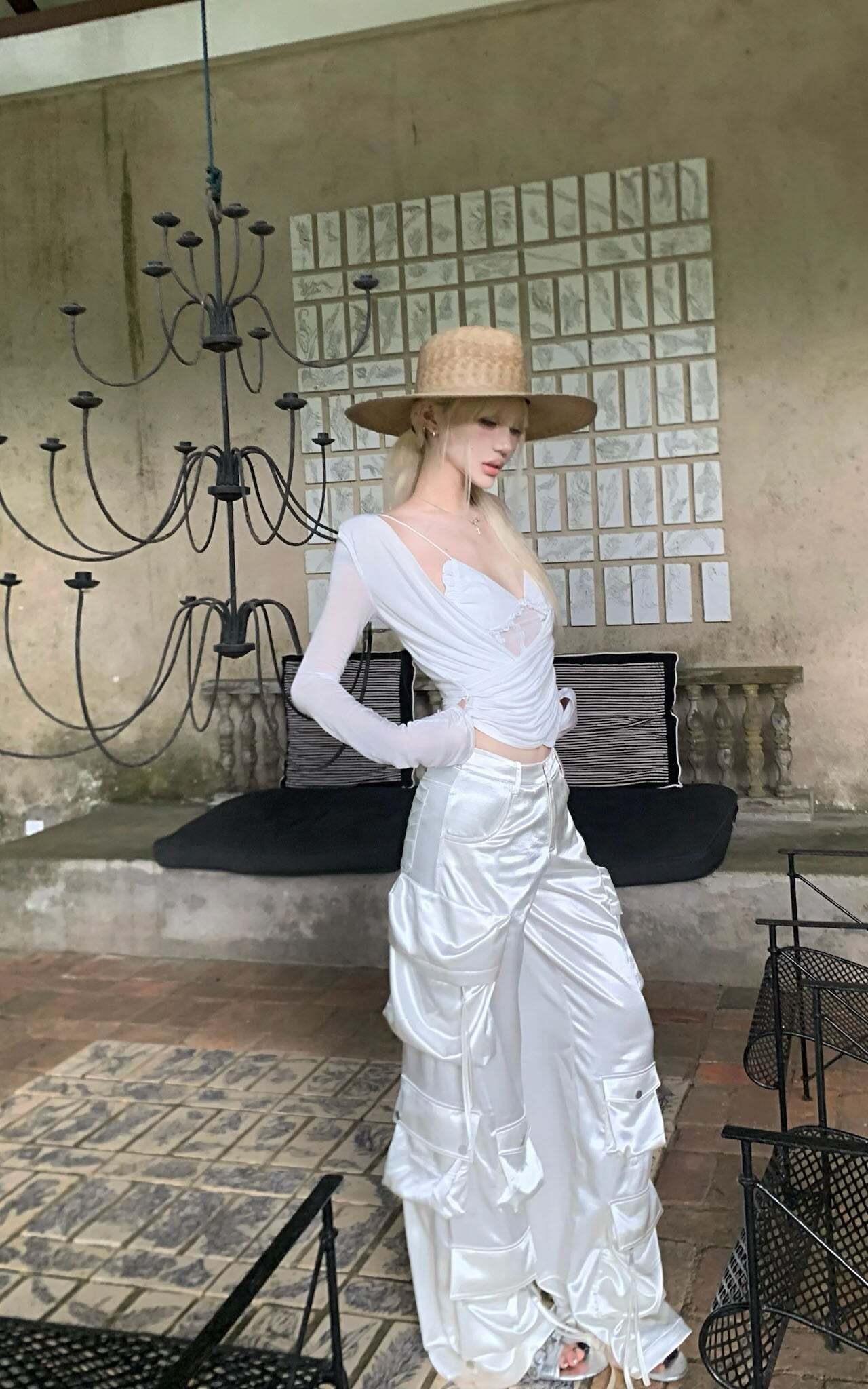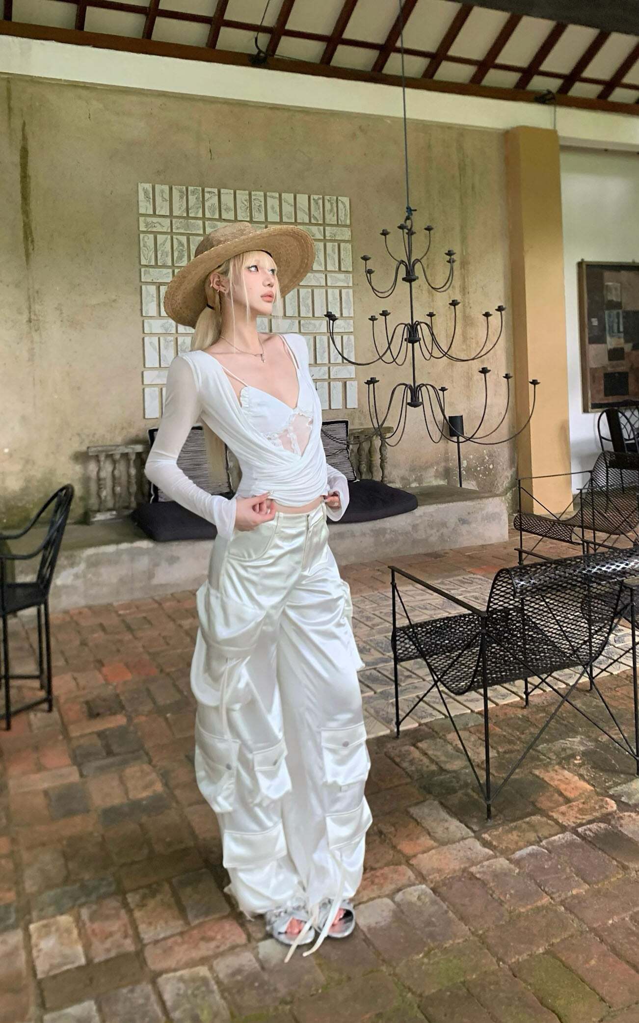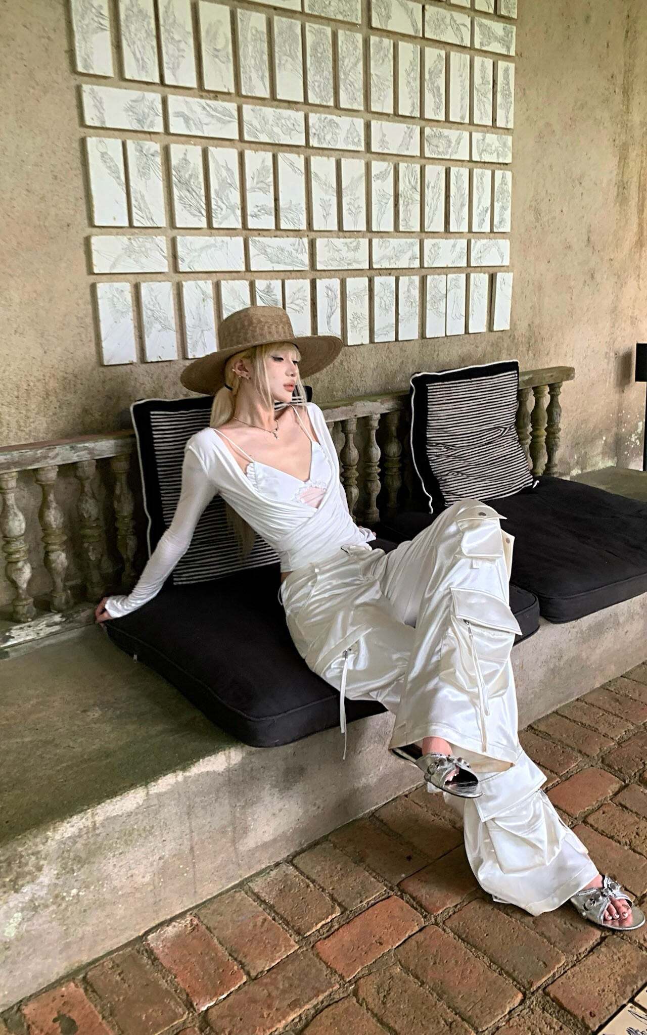 Satin Multi-pocket Cargo Pants: Elevate Your Cargo Pants Outfit Today!