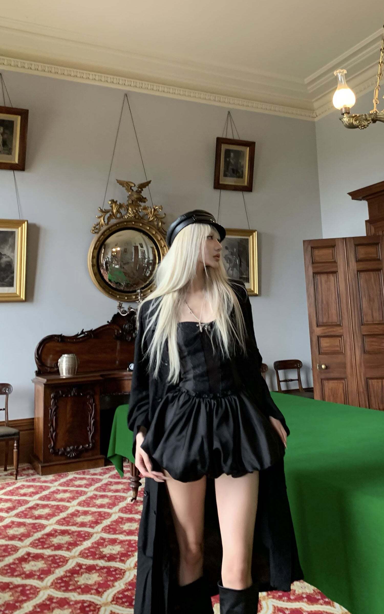 Sculpted Corset Dress with Crystal Bow – Black Corset Halloween Costume