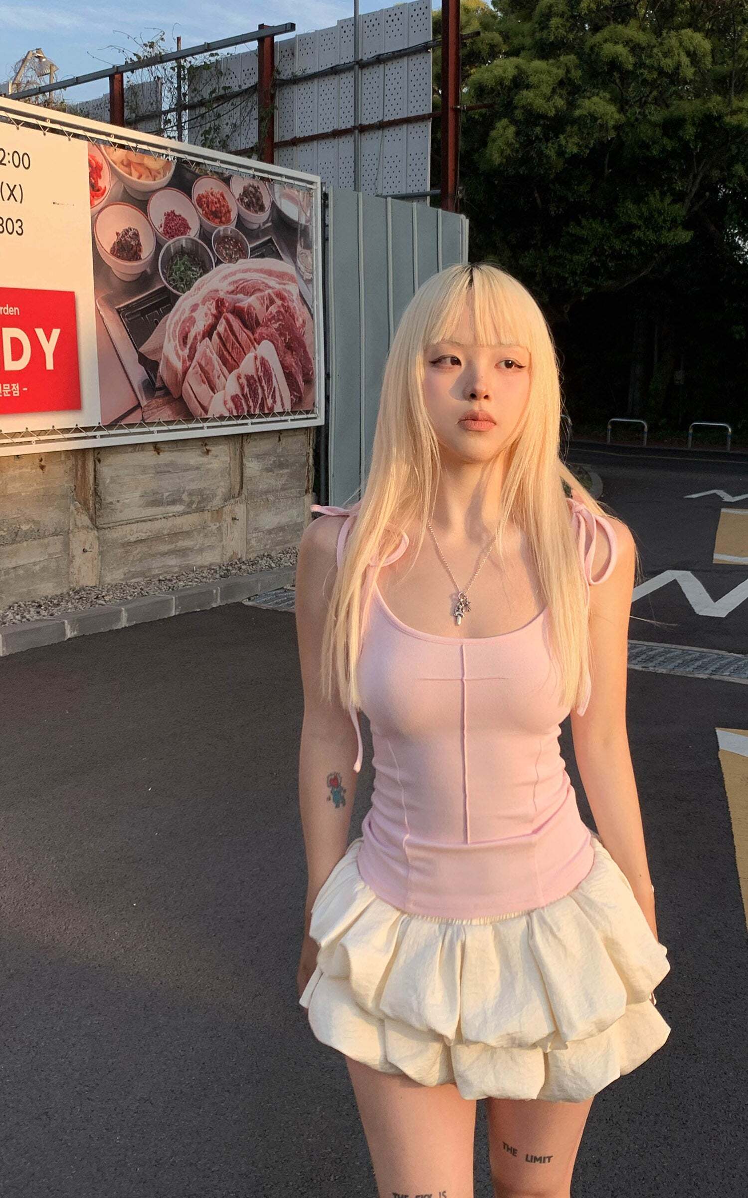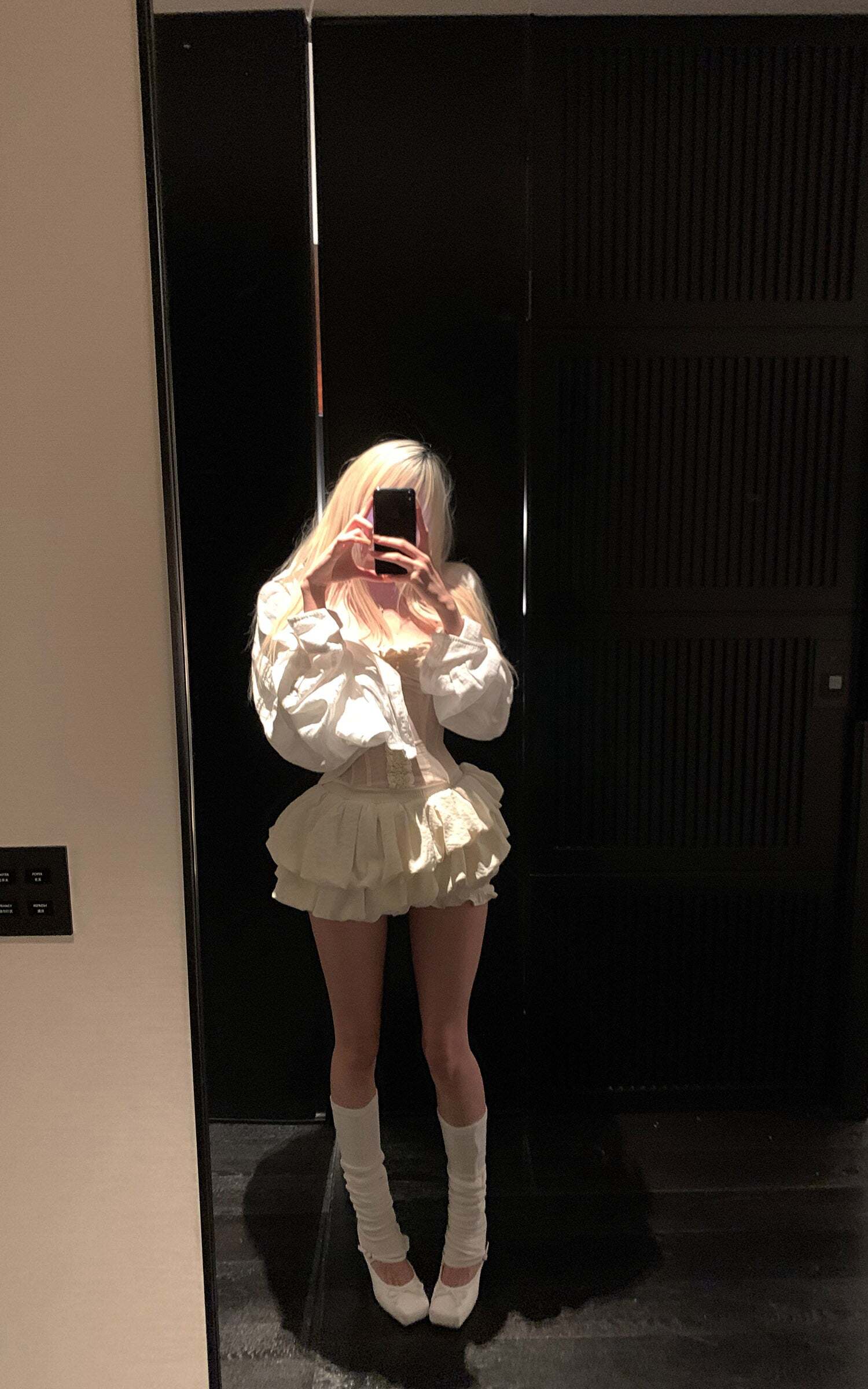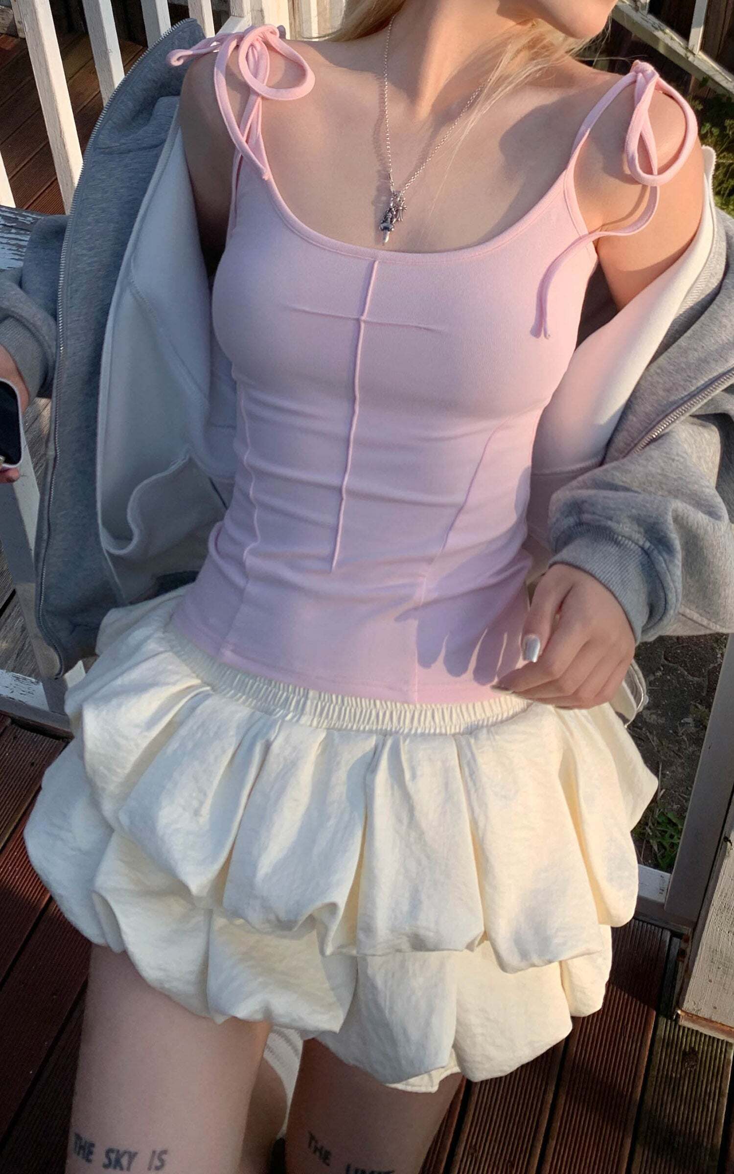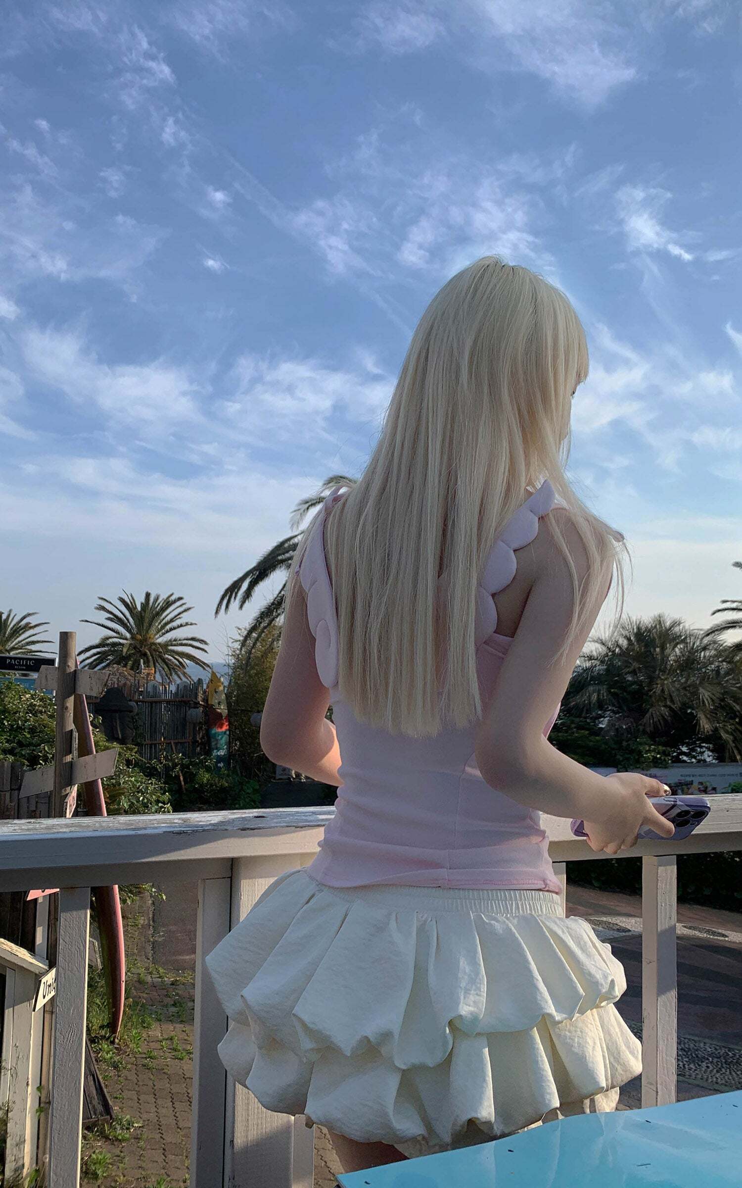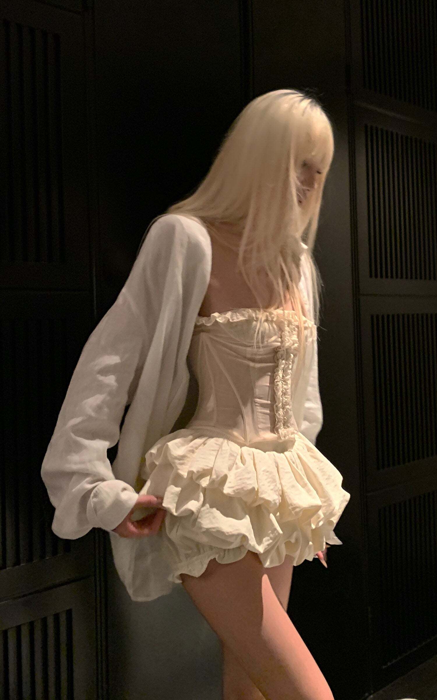 Built from sculptural tiers, the skirt swells into form without flourish—soft, but never fragile. Its matte texture whispers restraint, while the elastic waistband anchors the volume with quiet authority. This is not a skirt that performs for approval; it is a tender defiance, a stage in motion, a gesture between innocence and provocation.