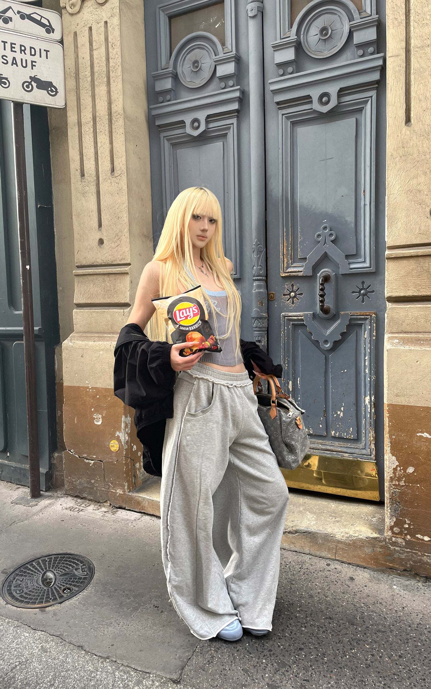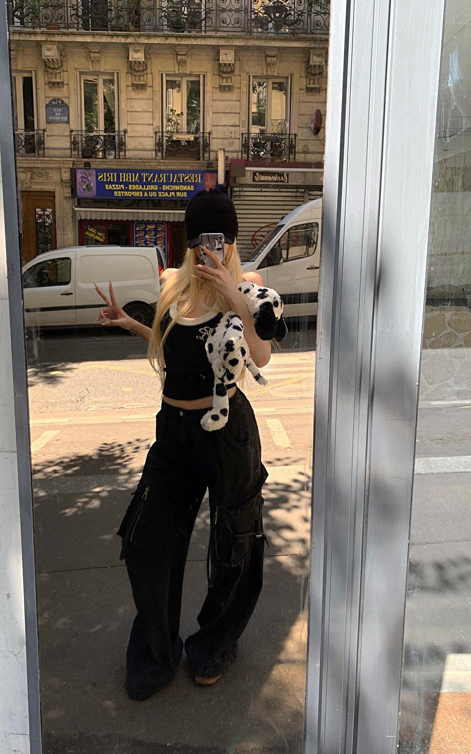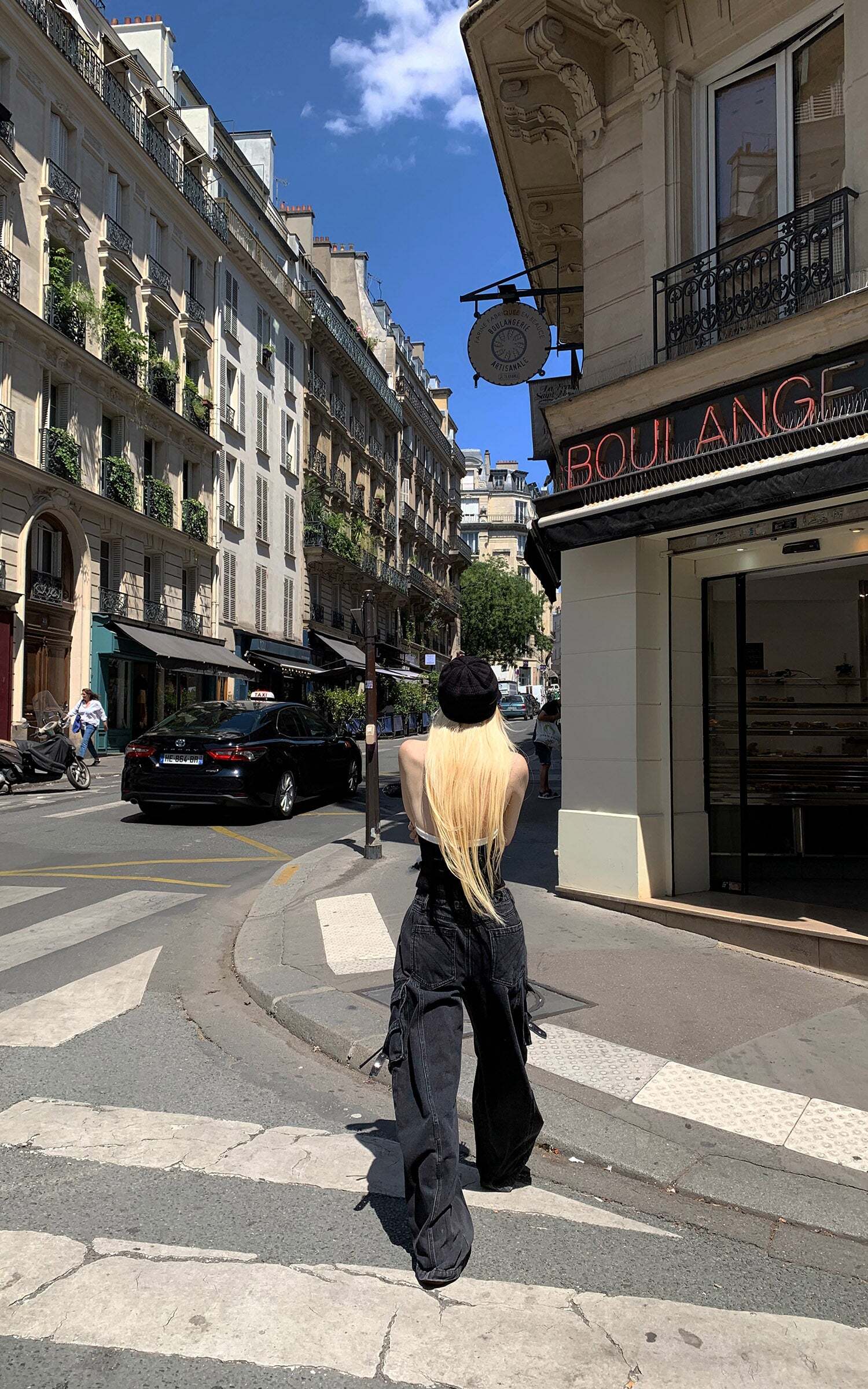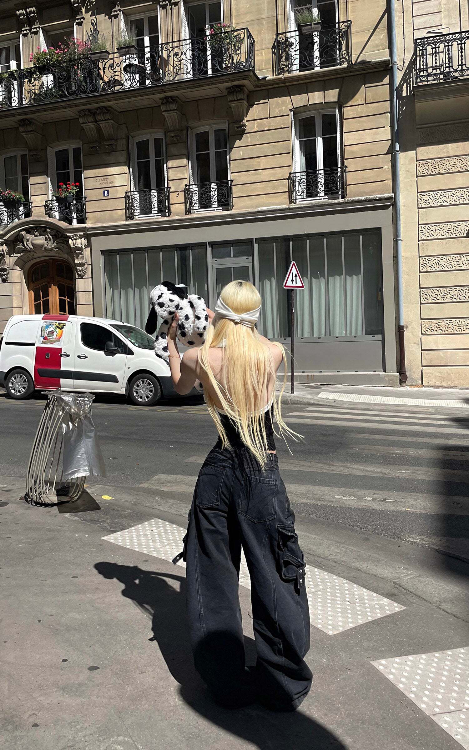 A slim-fit knit tank that clings gently without constriction, crafted from soft, skin-friendly yarn. The silhouette flows cleanly, with tonal depth enhanced by the ribbed texture. Featuring a two-tone neckline and shoulder trim that brings contrast to its minimalist form, the front is embroidered with an abstract graphic—unrefined yet intentional. Wear it solo or layered under a shirt or leather jacket to channel a quiet, emotive urban presence.