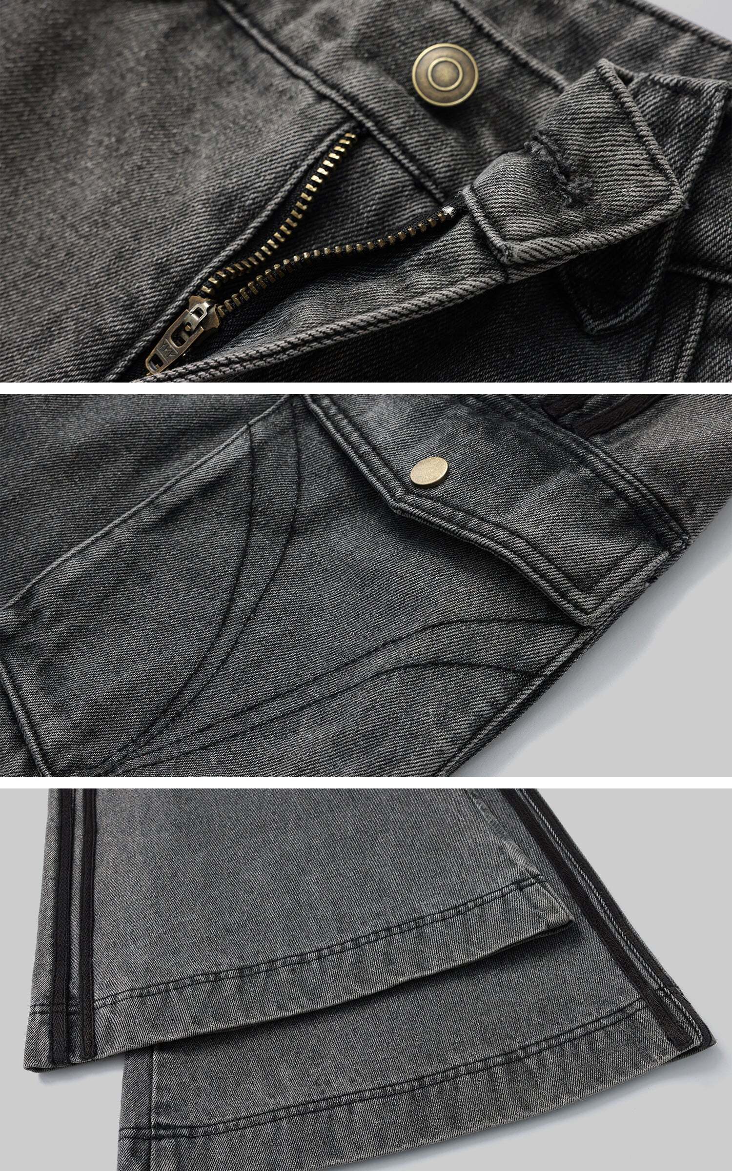 Reimagining classic workwear through an avant-garde lens, these washed gray denim pants seamlessly blend utility with aesthetics. Featuring a wide-leg silhouette and an expertly treated wash for a vintage feel, they come complete with 3D utility pockets that offer both functionality and detail. The side zipper accents add an edgy touch, making this piece perfect for an unconventional street style. Pair it with oversized tops or sleek boots to elevate your ensemble effortlessly.