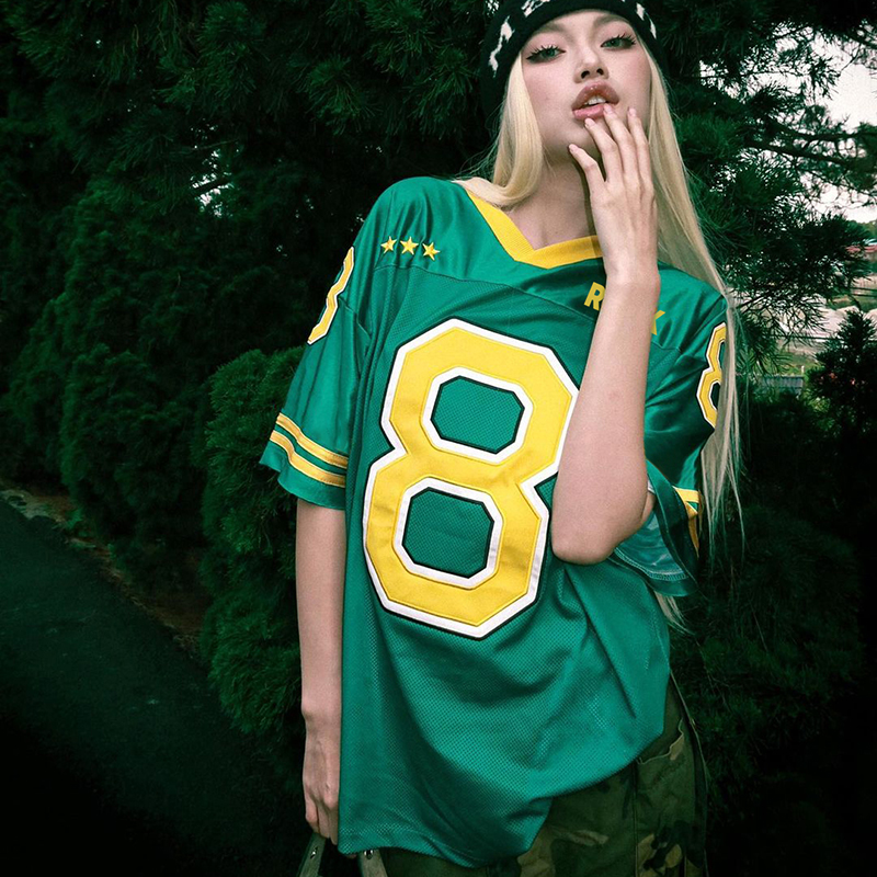 Retro Loose Letter Print Short Sleeve Sports Women Casual Top, Y2k – Y2k Outfits