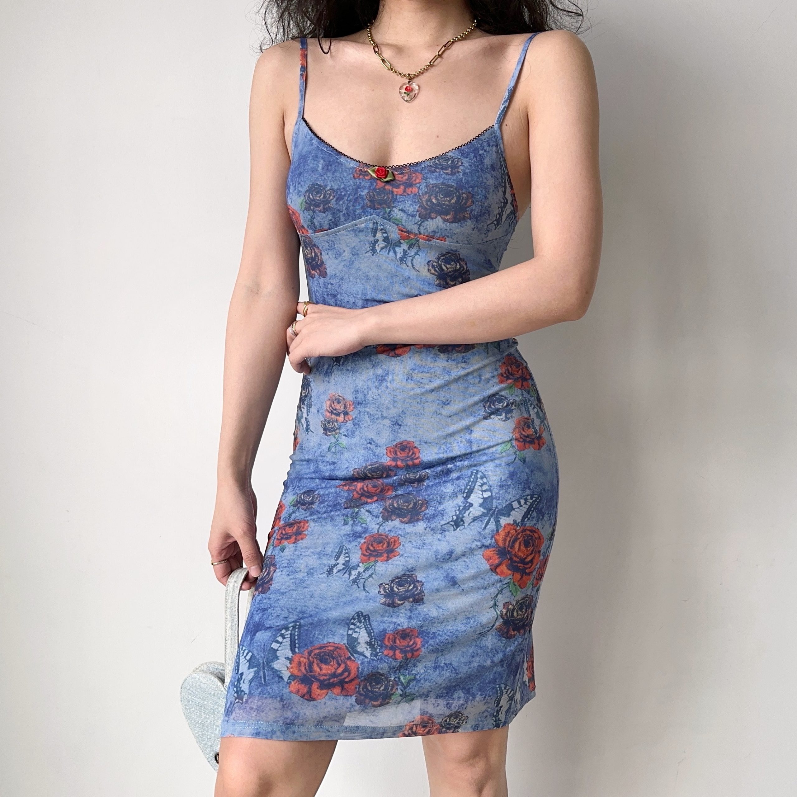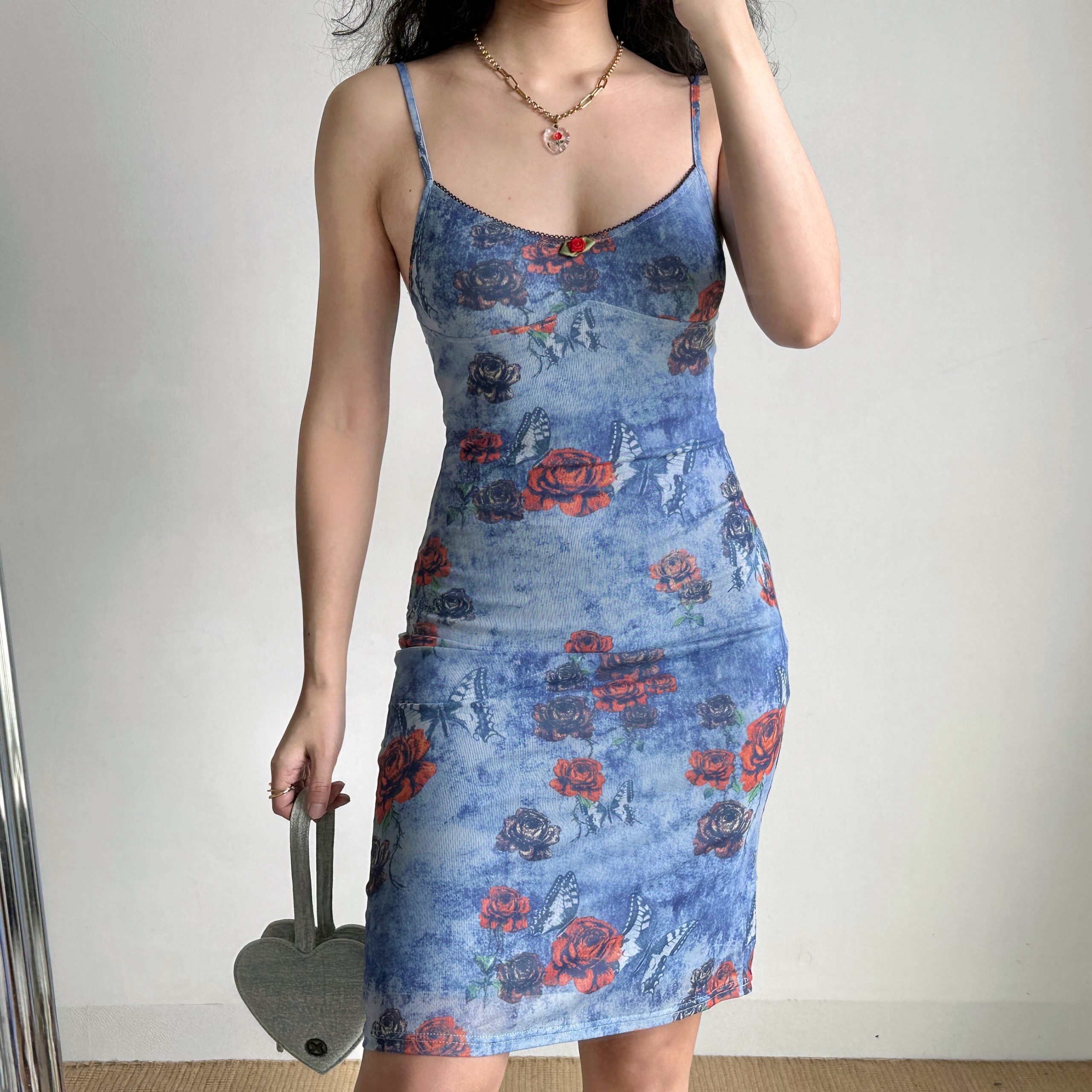 Retro Butterfly Flower Print Camisole Dress Women Fitted Waist, Hip Hug – Y2k Outfits