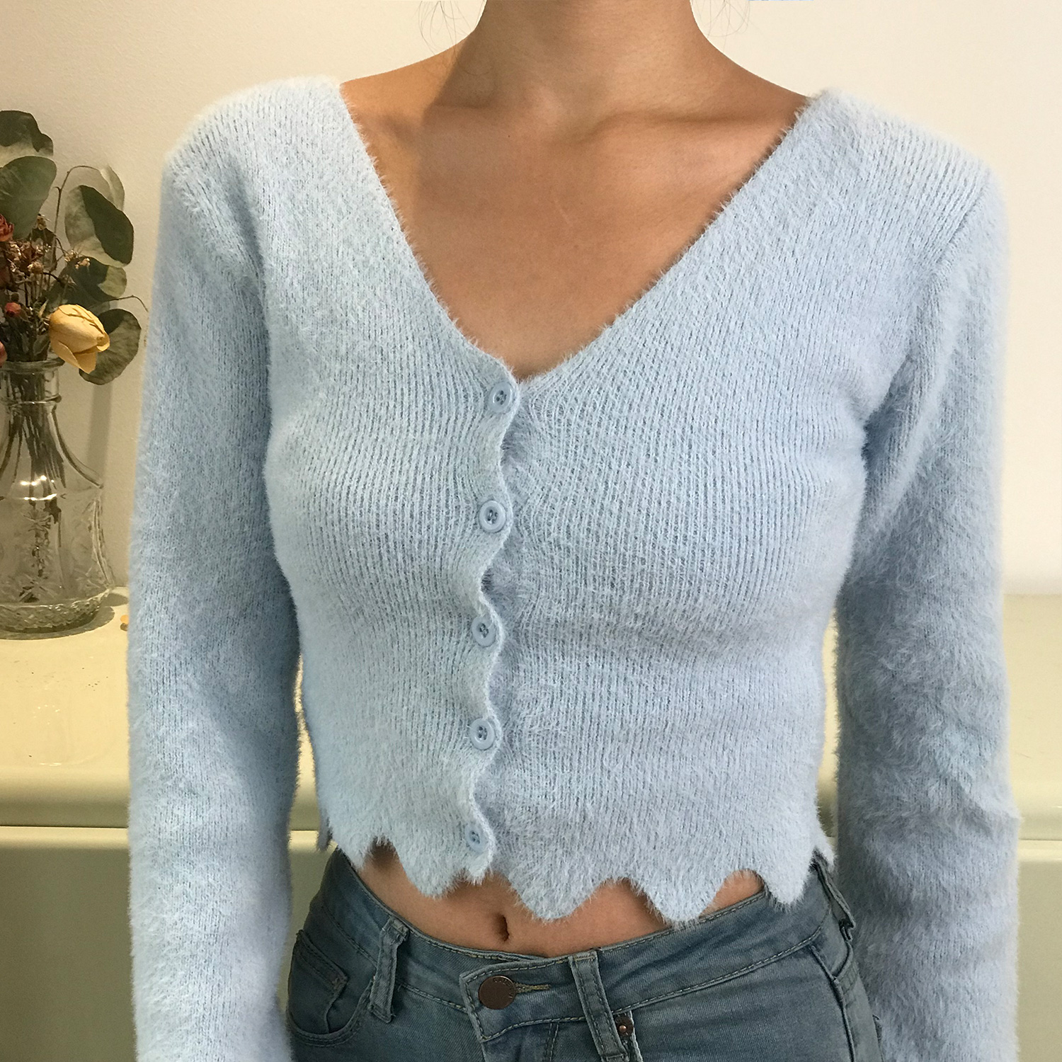 Retro Cute Girl V- Neck Ruffled Hem Fluffy High Waisted Long Sleeve Knitted Cardigan Top Y2K pired High-quality product featuring cute winter outfits, 90s fashion, 2000s fashion and more. Modern design that fits the latest trends. Premium materials ensure durability and comfort. Order now for special offers! Product designed with attention to every detail. Suitable for all occasions and personal styles.