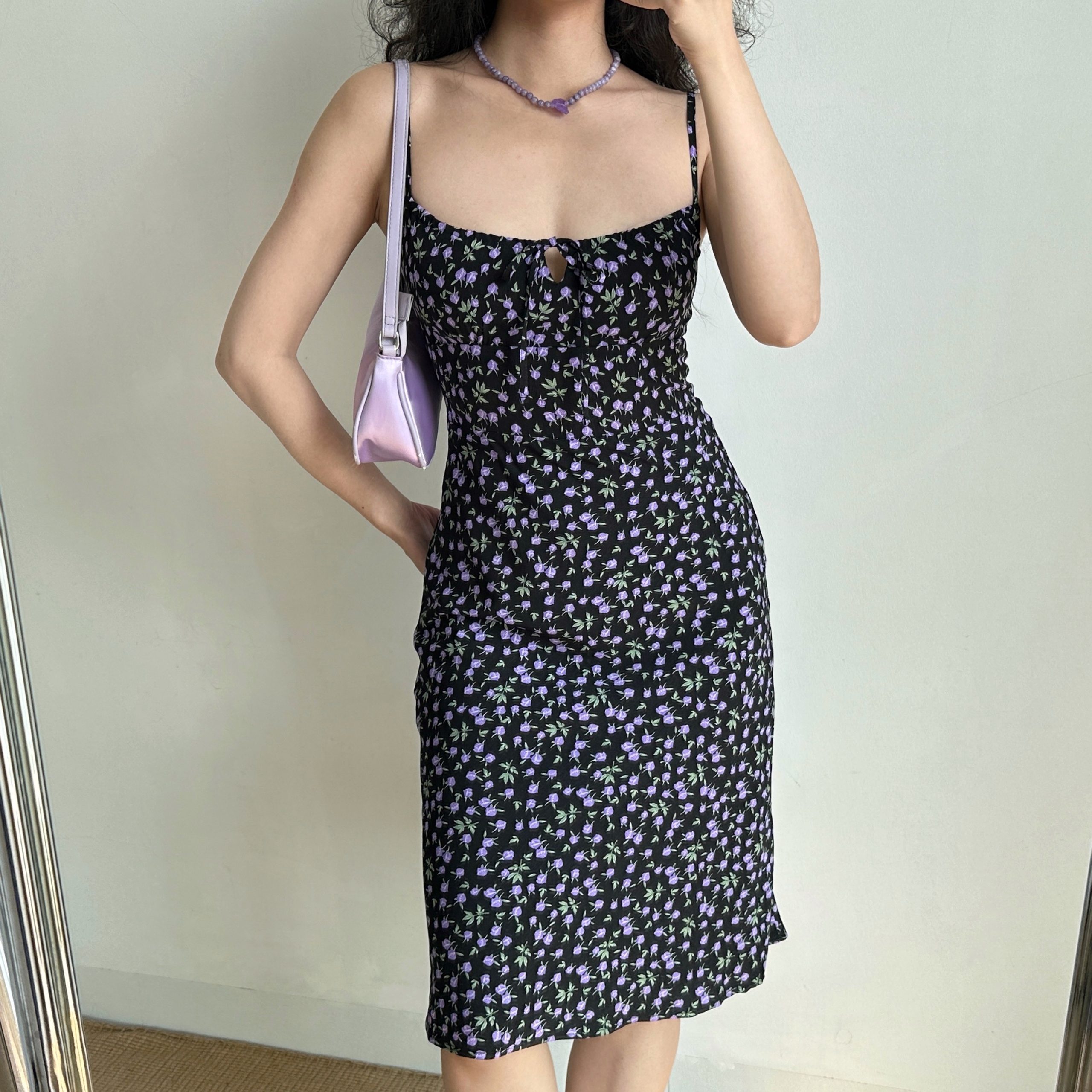 Retro Floral Front Tie Strap Dress Slim Waipired Summer High-quality product featuring spring outfit, spring outfits, hoco dresses and more. Modern design that fits the latest trends. Premium materials ensure durability and comfort. Order now for special offers! Product designed with attention to every detail. Suitable for all occasions and personal styles.