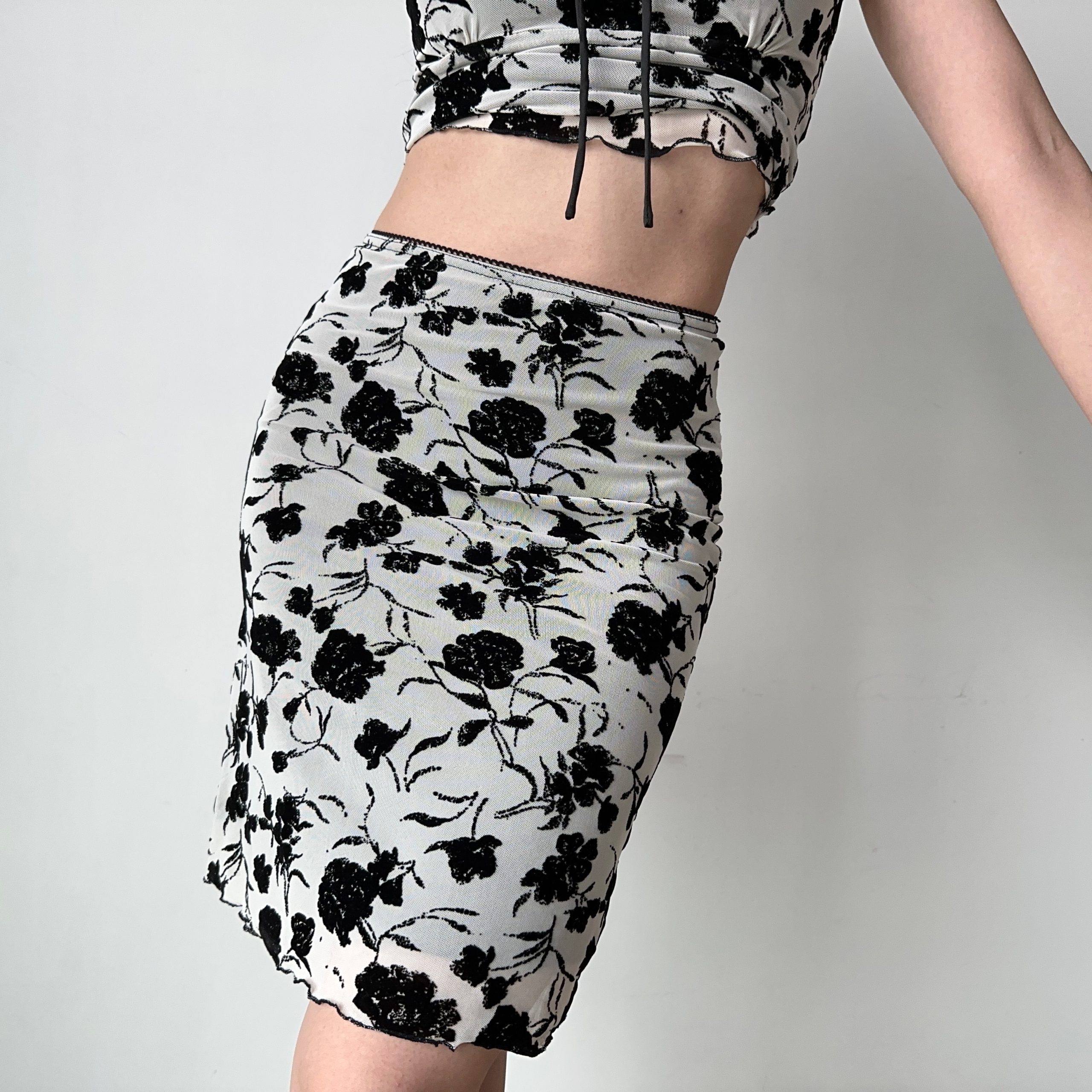 Retro Floral Print Camisole, High Waisted Bodycon Skirt Two Set Europea – Y2k Outfits