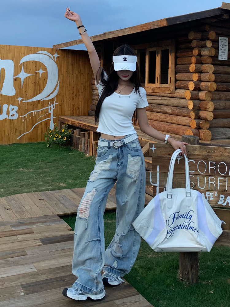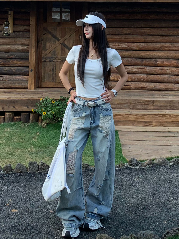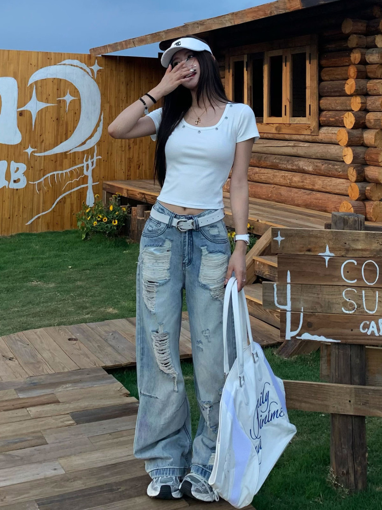 Retro Loose Wide Leg Ripped Jeans Women Summer, pired, Casual Pants High-quality product featuring summer fits, casual outfits, vacation outfits and more. Modern design that fits the latest trends. Premium materials ensure durability and comfort. Order now for special offers! Product designed with attention to every detail. Suitable for all occasions and personal styles.