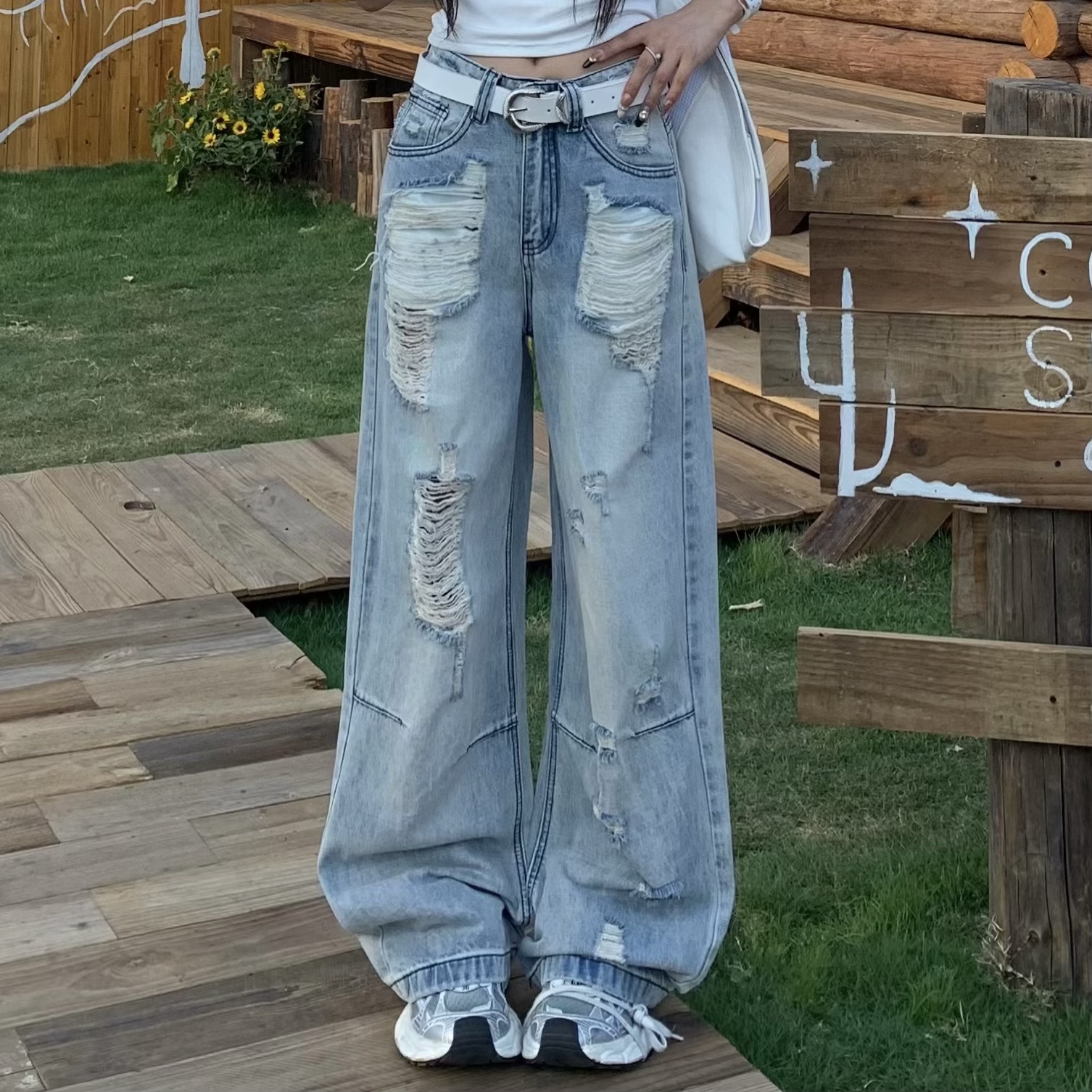 Step into effortless style with our Retro Loose Wide-Leg Ripped Jeans for Women, perfect for embracing that 90s-inspired high street vibe this summer. Designed with a relaxed fit, these casual fashion pants feature trendy ripped detailing that adds a touch of edgy charm to any outfit. Pair them with your favorite crop top or oversized tee for an effortlessly chic look that combines comfort and fashion. Don’t miss out on this wardrobe staple add to your cart today and elevate your casual ensemble!