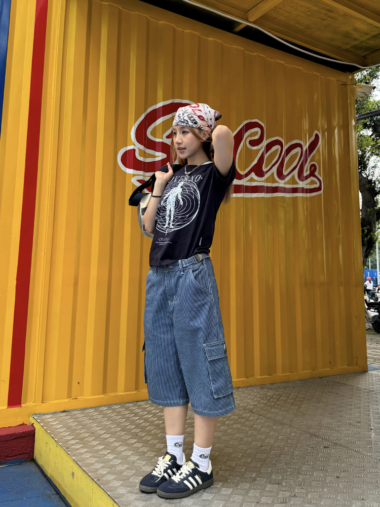 Retro Multi Pocket Striped Denim Shorts Men, Women Loose Fit Street Sum – Summer Fits