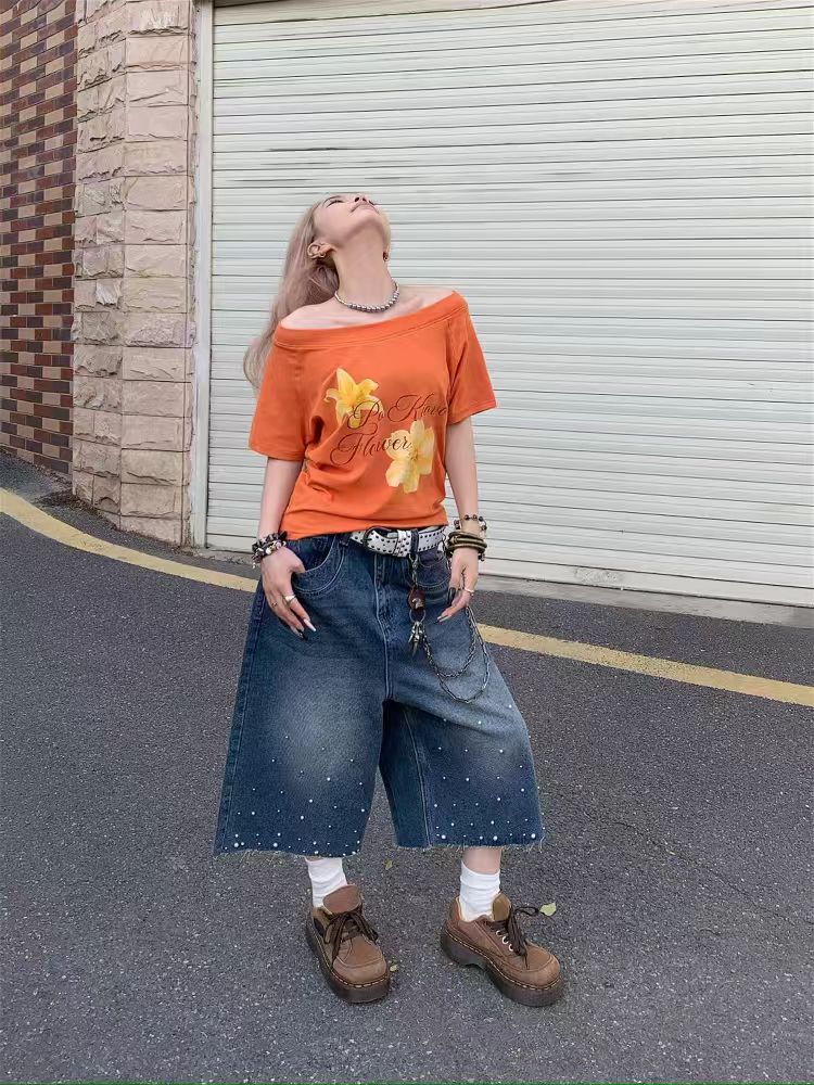 Elevate your summer wardrobe with our Retro Off-Shoulder Floral Print Short Sleeve T-Shirt for Women. This sweet and spicy slim-fit top features a charming floral pattern that perfectly embodies American street style, making it a versatile choice for any casual outing. With its flattering fit and breathable fabric, you’ll enjoy both comfort and style all season long. Don’t miss out on this must-have piece add it to your cart today!