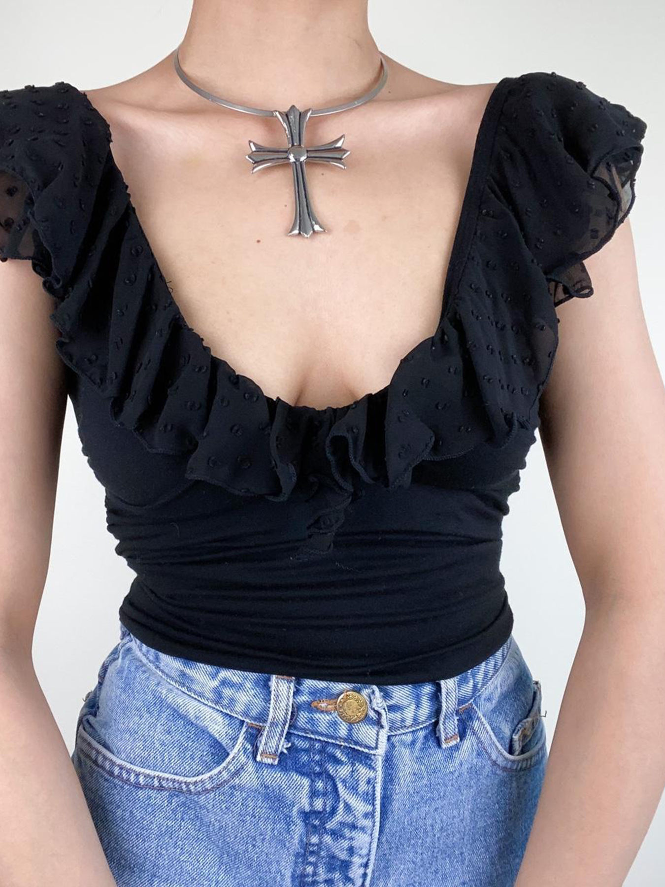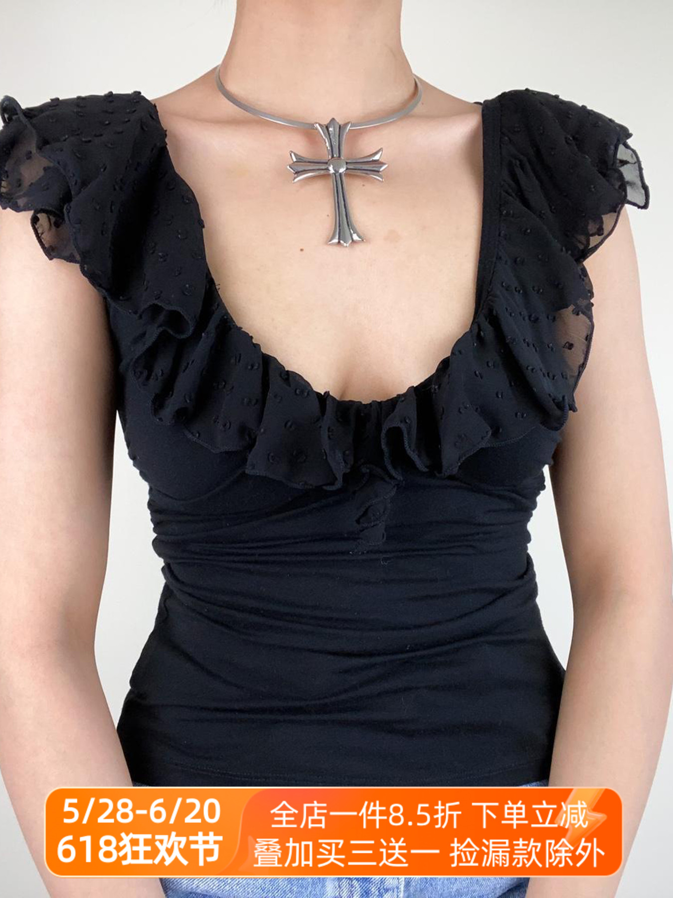 Low Neck Ruffled Backless Short Top Women Flutter Sleeves Slim Fit Tank Top High-quality product featuring outfit inspo fall, easy costumes women, going out outfits and more. Modern design that fits the latest trends. Premium materials ensure durability and comfort. Order now for special offers! Product designed with attention to every detail. Suitable for all occasions and personal styles.