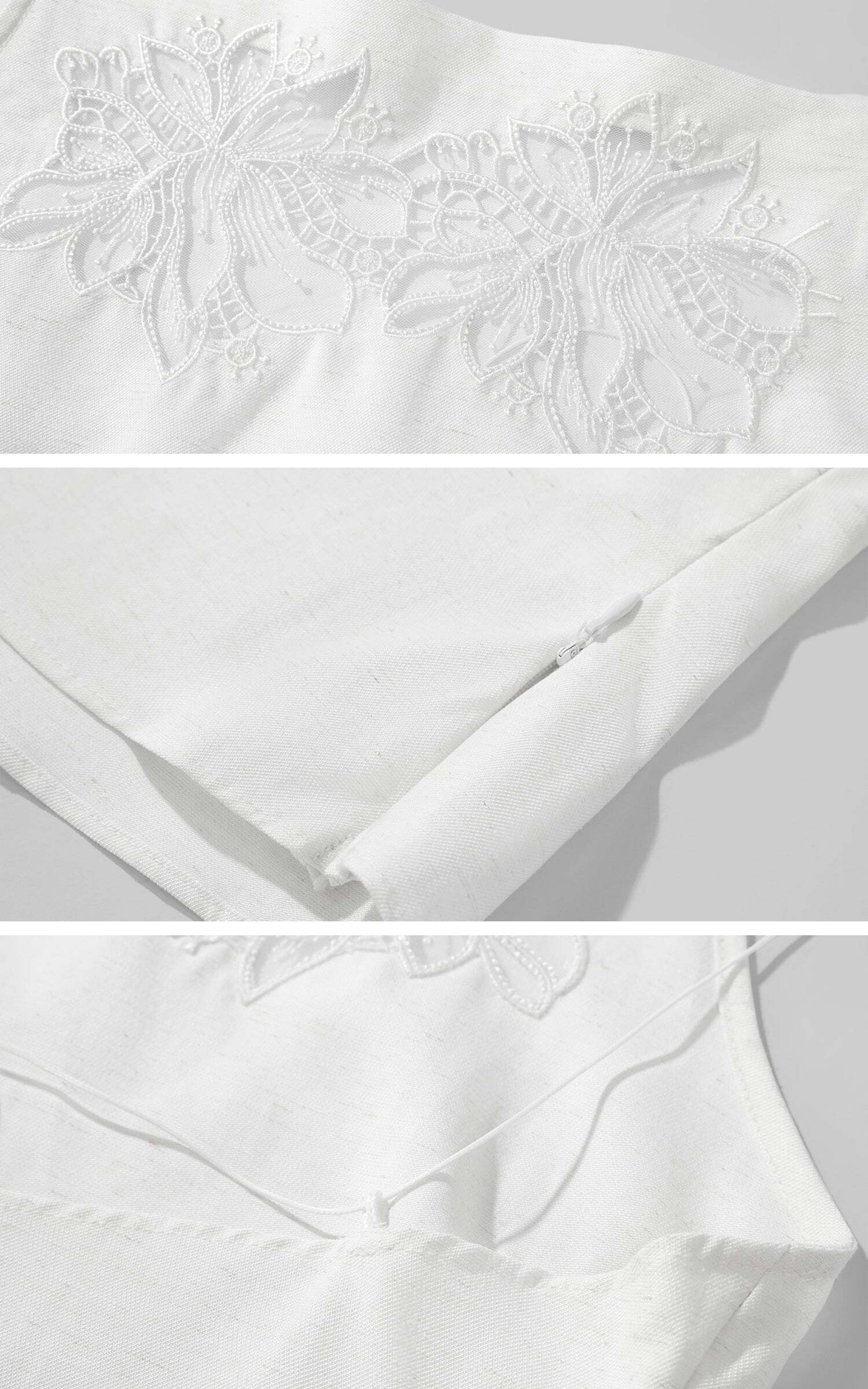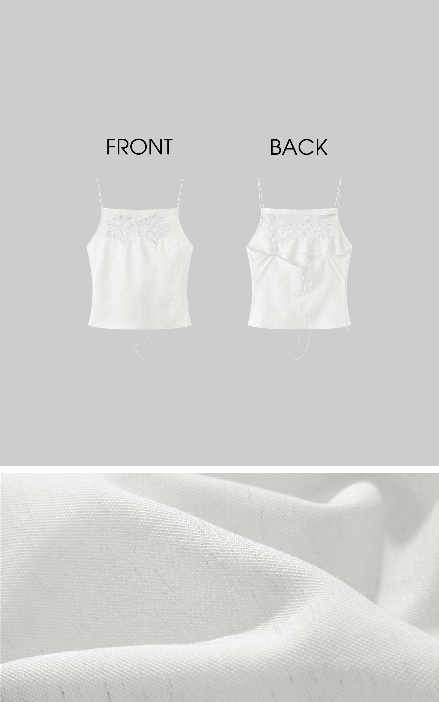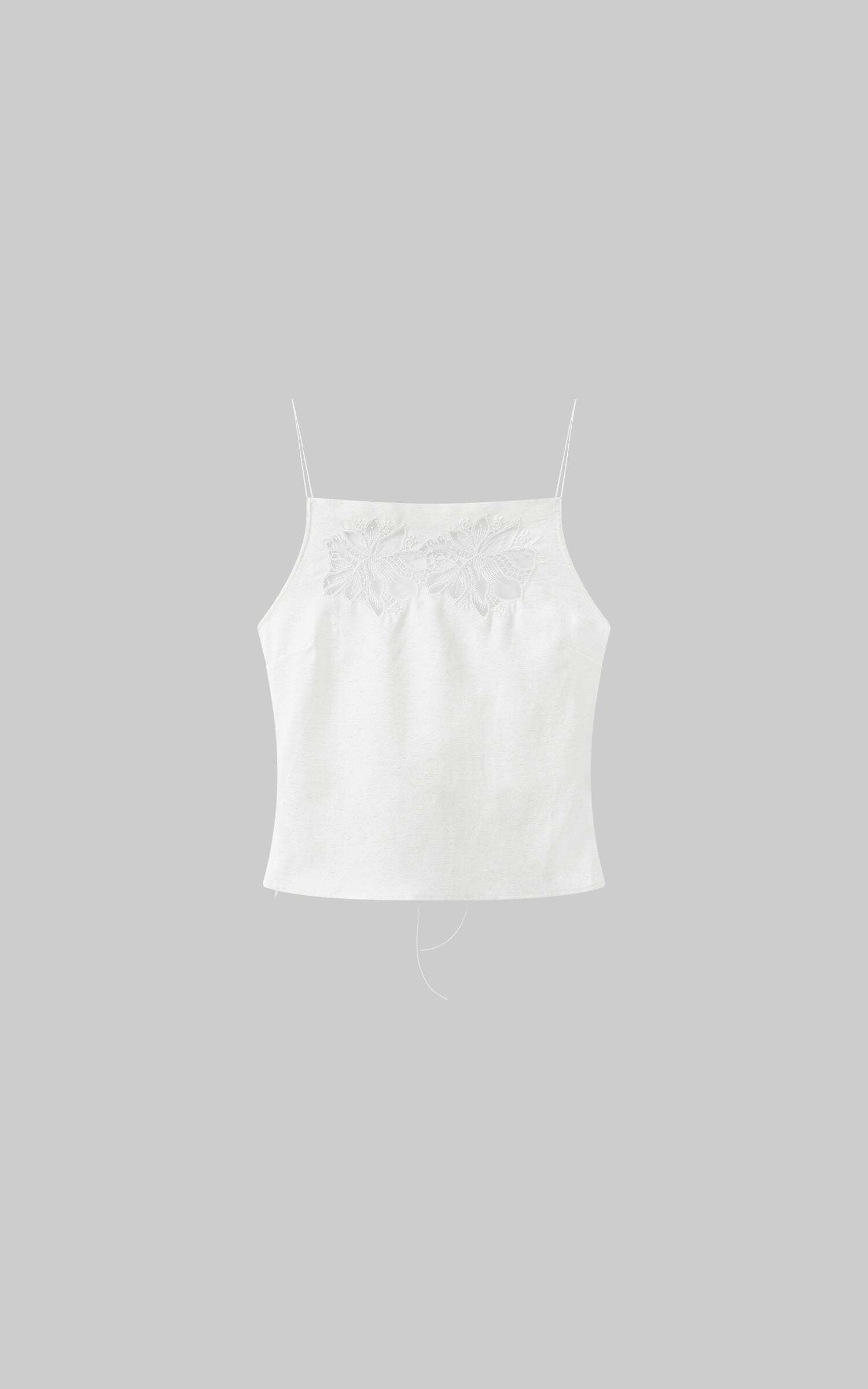 Subtle yet seductive, this camisole is a whisper of summer dreams. Cut from a softly structured fabric with a slight sheen, its sculpted neckline is framed by delicate spaghetti straps and adorned with intricate floral embroidery that reveals just enough skin beneath. The silhouette hugs your figure while maintaining a graceful ease—perfect for sun-drenched escapes or slow Sunday afternoons. Pair it with flowing midi skirts or tailored trousers to slip between romantic and refined.
