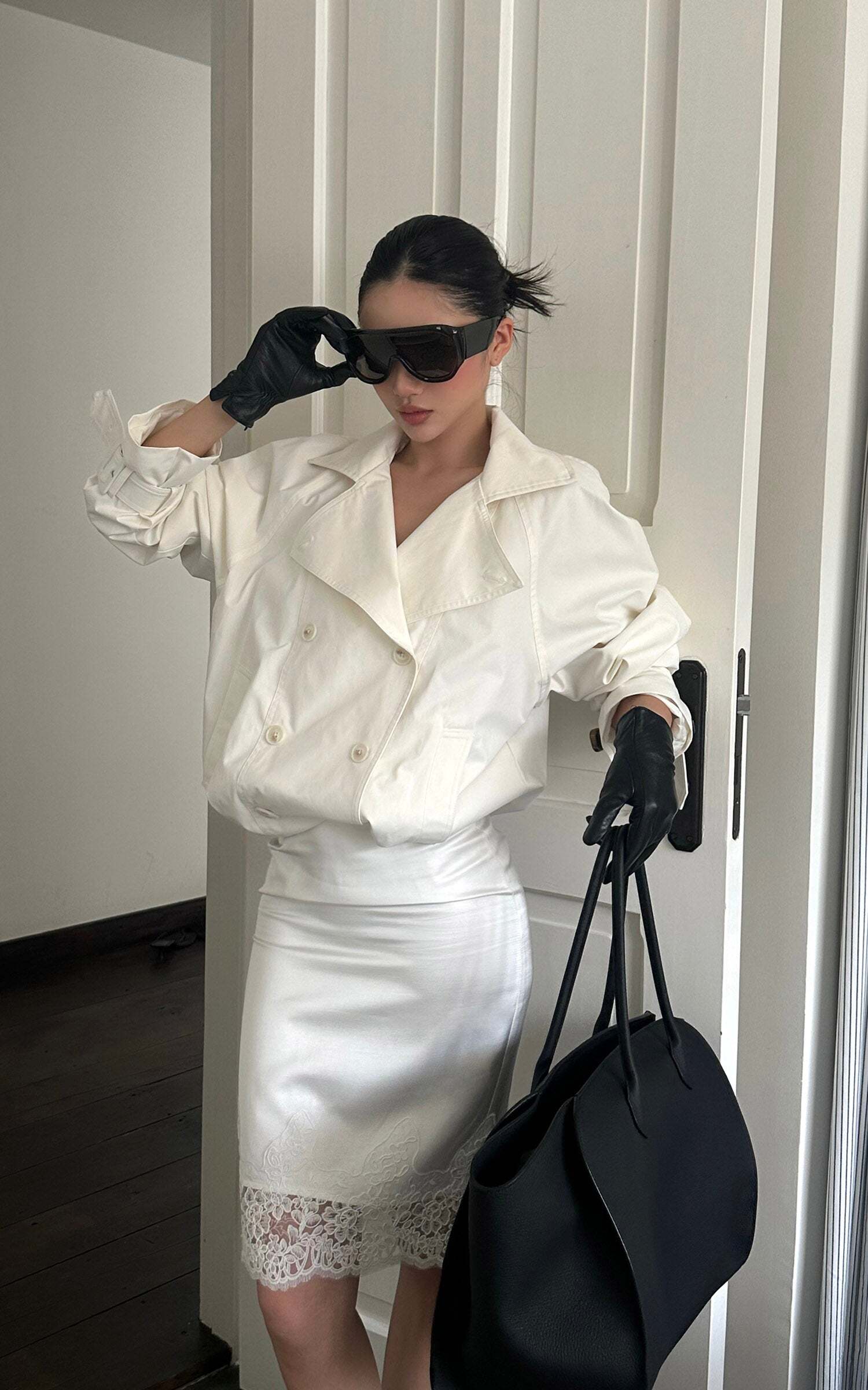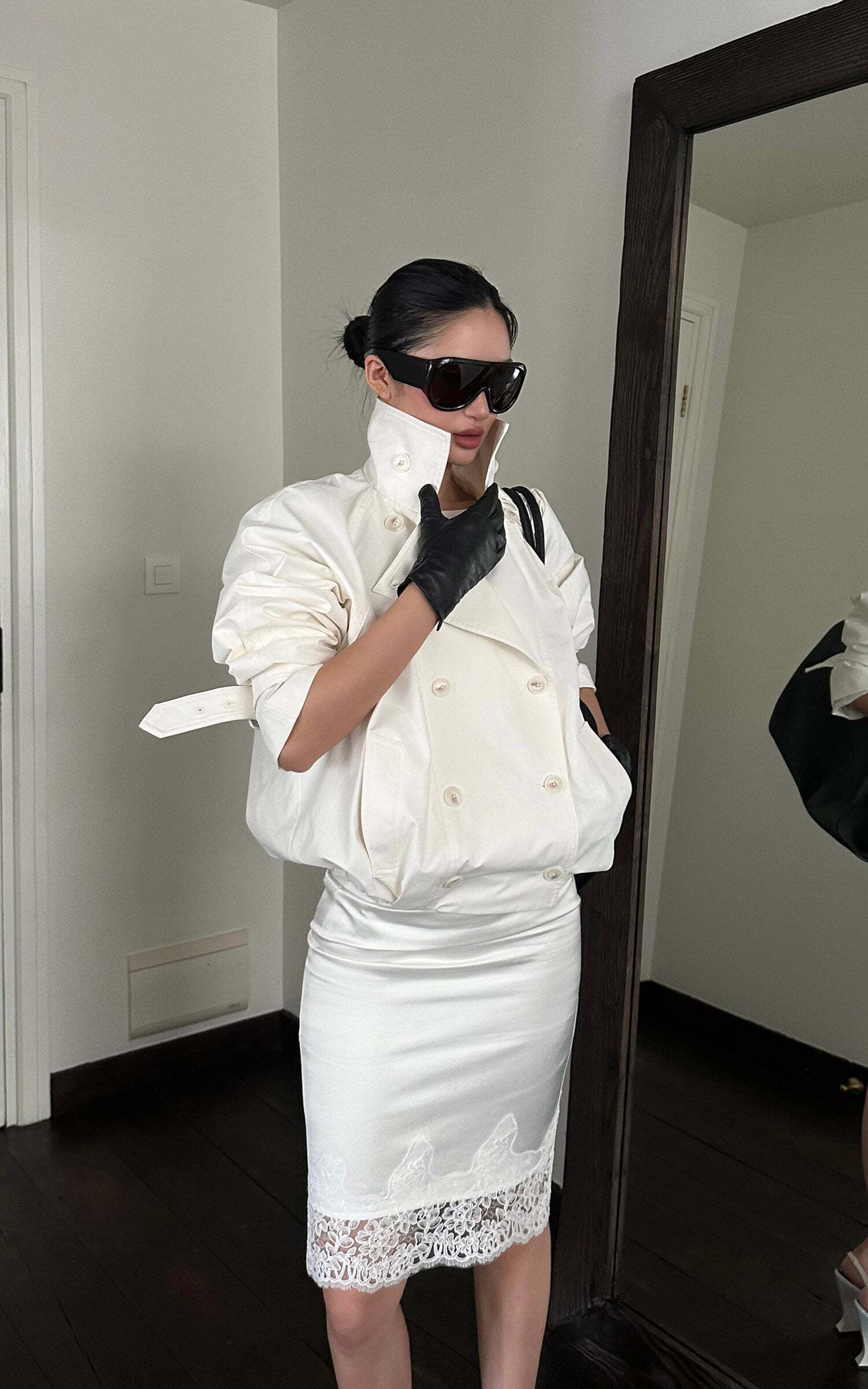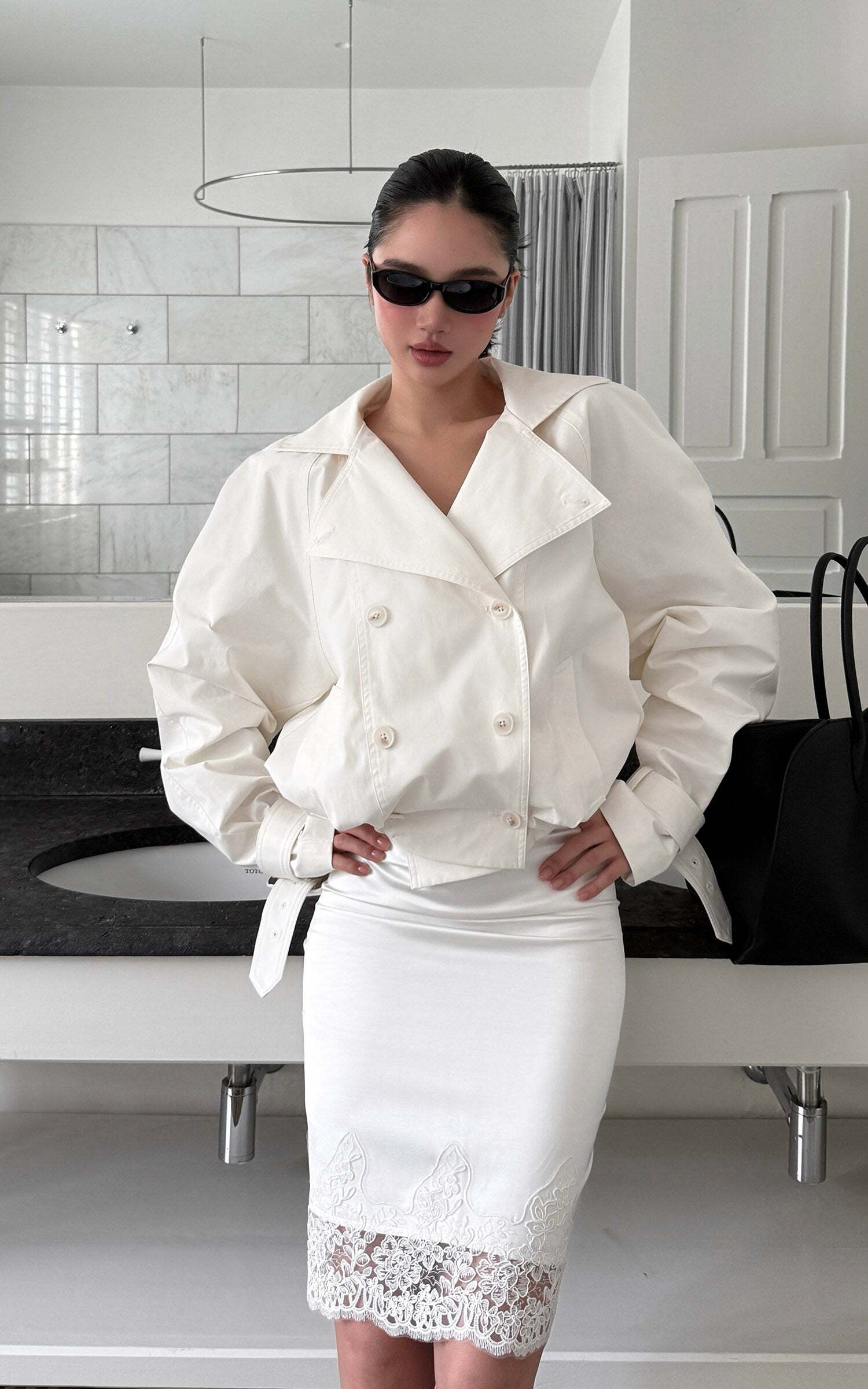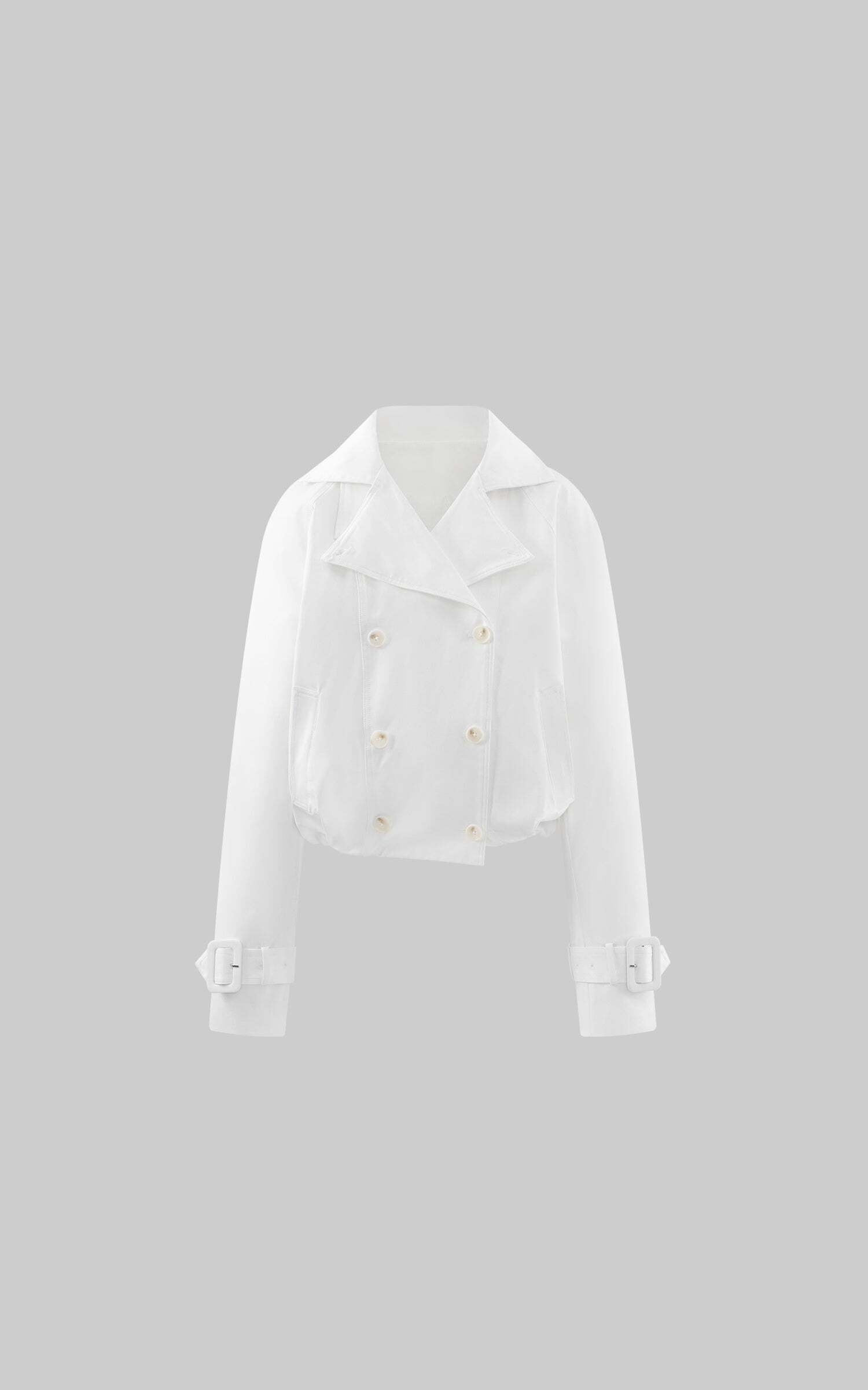 Cropped Double-breasted Trench Jacket with Structured Lapels a – Puffer Jacket Outfit