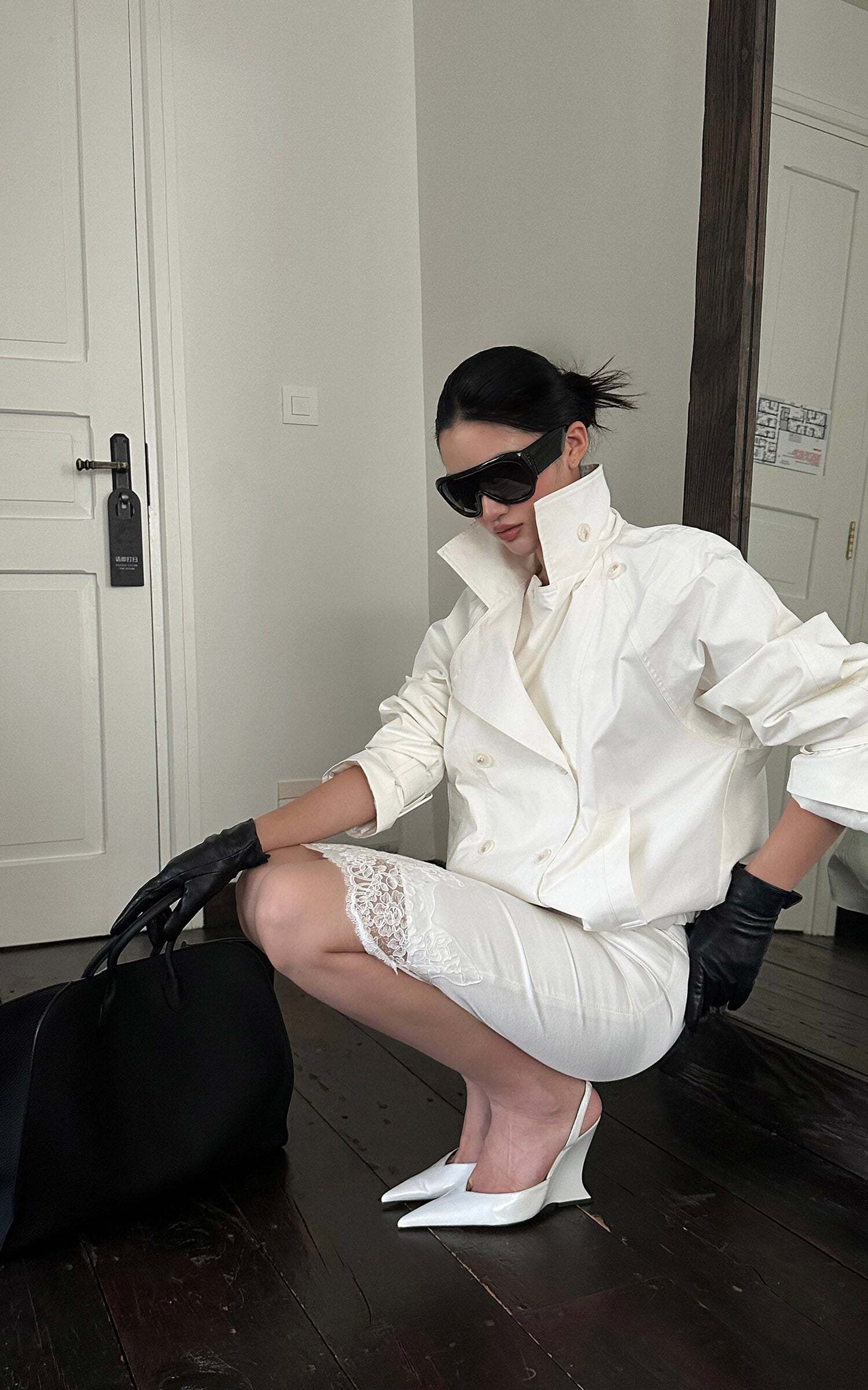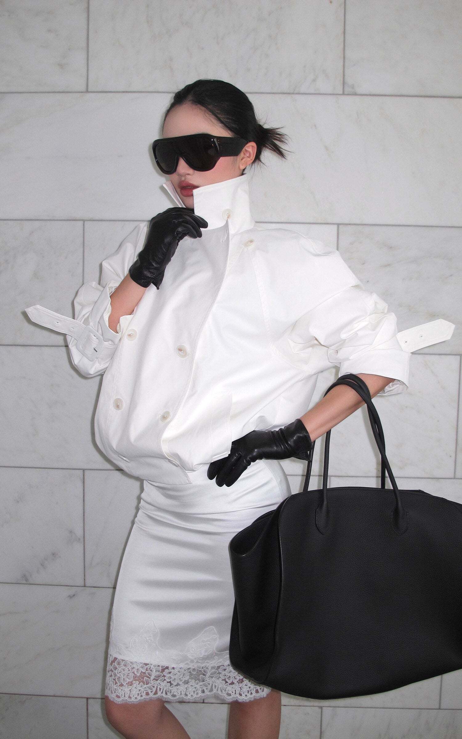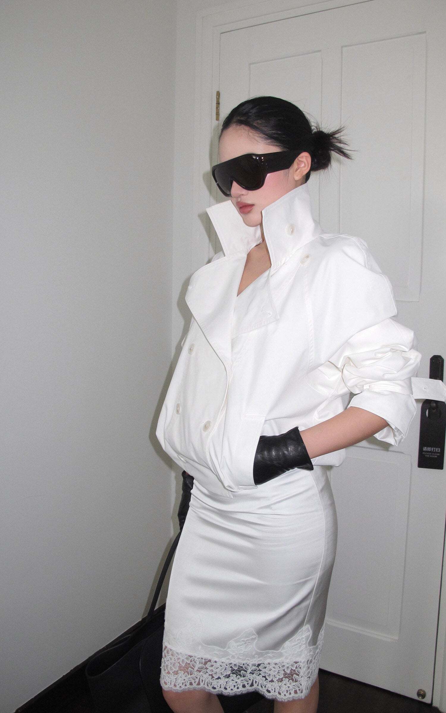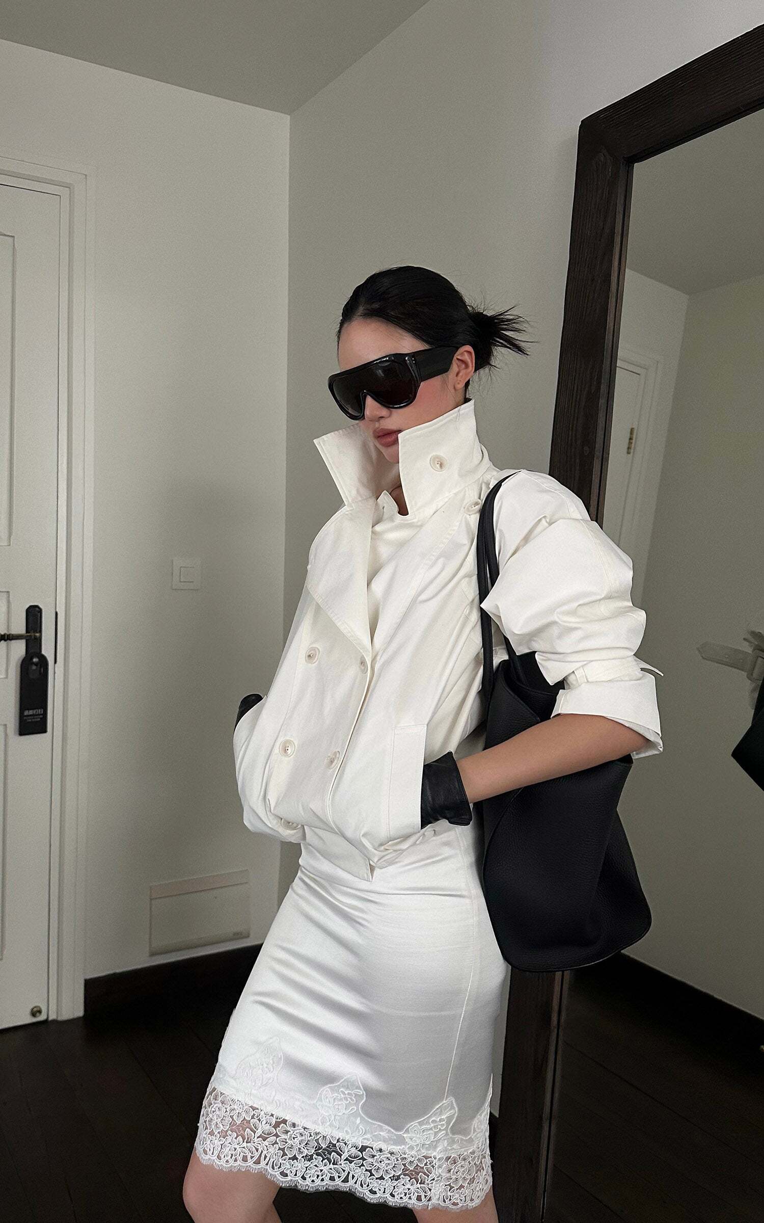 Cropped Double-breasted Trench Jacket with Structured Lapels a – Puffer Jacket Outfit