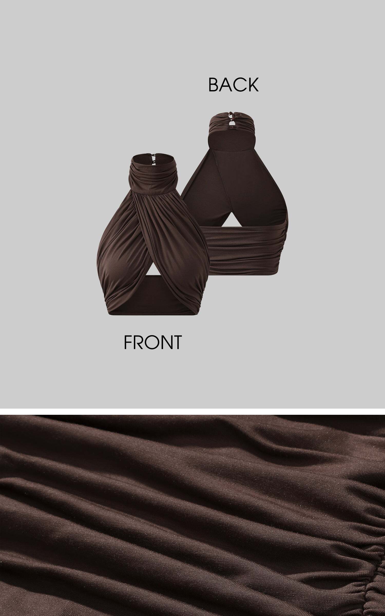 Cross-Drape Halter Top with High Neck Twist Detail High-quality product featuring fall fashion, last minute halloween costume, hoco dresses and more. Modern design that fits the latest trends. Premium materials ensure durability and comfort. Order now for special offers! Product designed with attention to every detail. Suitable for all occasions and personal styles.