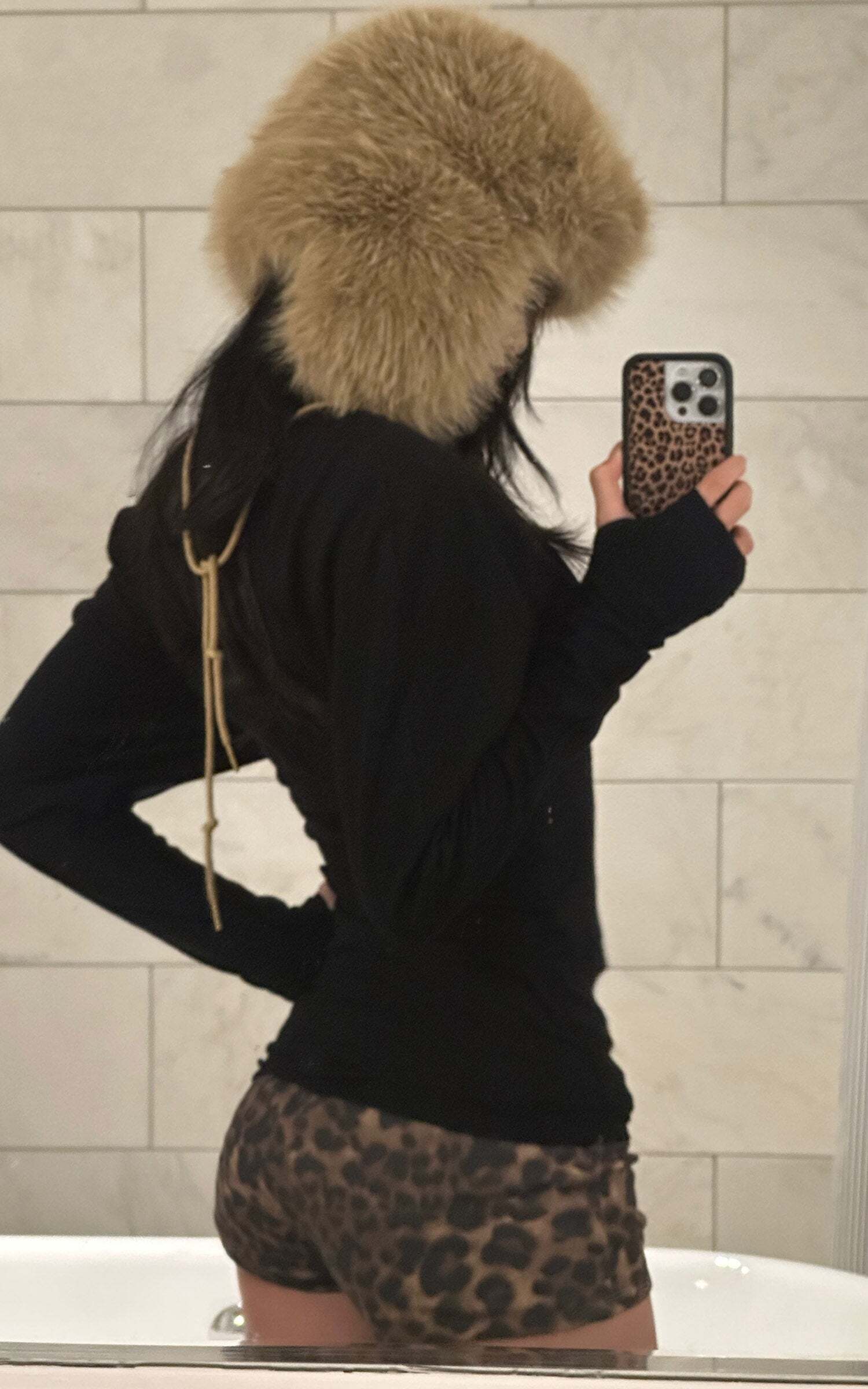 A fearless mix of sultry and wild. This set pairs a plunging deep V long-sleeve top with a bold leopard bra peeking through, matched with sleek leopard print shorts. The sharp contrast of black and animal print delivers an unapologetic edge—perfect for nights that call for drama, attitude, and untamed glamour.