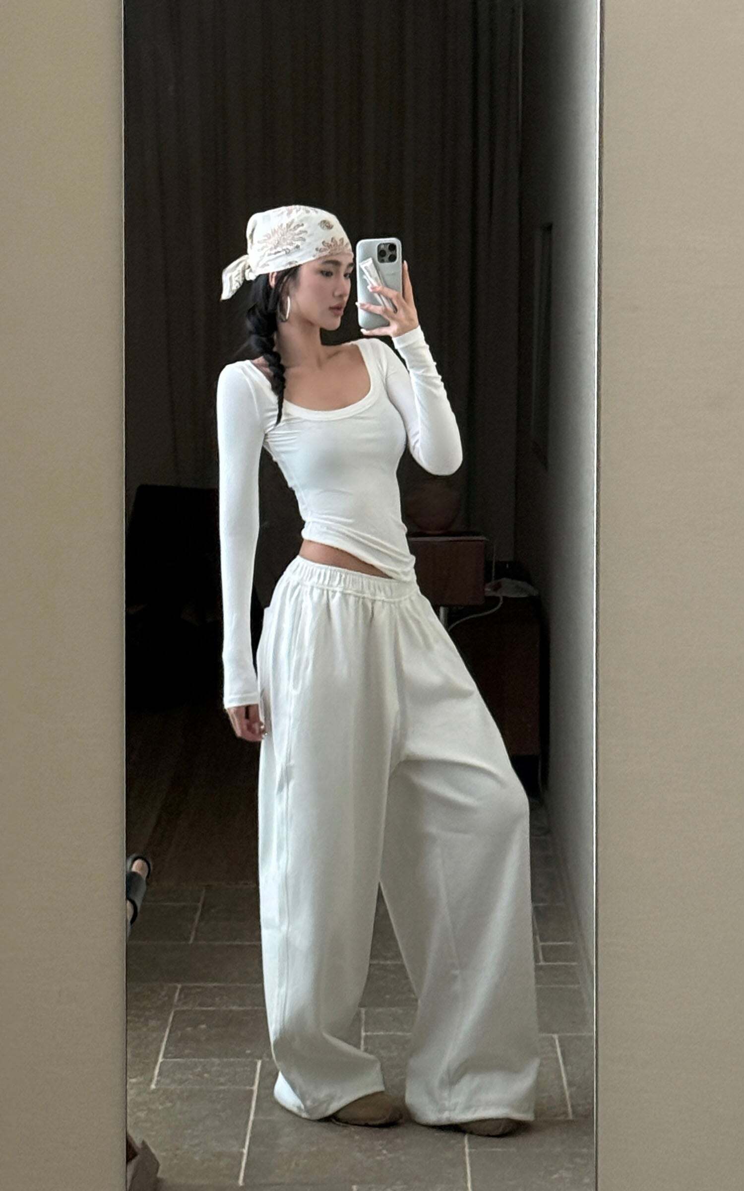 Laidback luxury meets elevated ease. These wide-leg trousers flow with an airy nonchalance, anchored by a stretch waistband and adjustable hem drawcords. The supple fabric moves with you, catching light and shadows with every step. Whether paired with a sculpted corset or a sheer body-hugging top, it brings a sense of freedom to your look—resort-worthy but made for the streets.