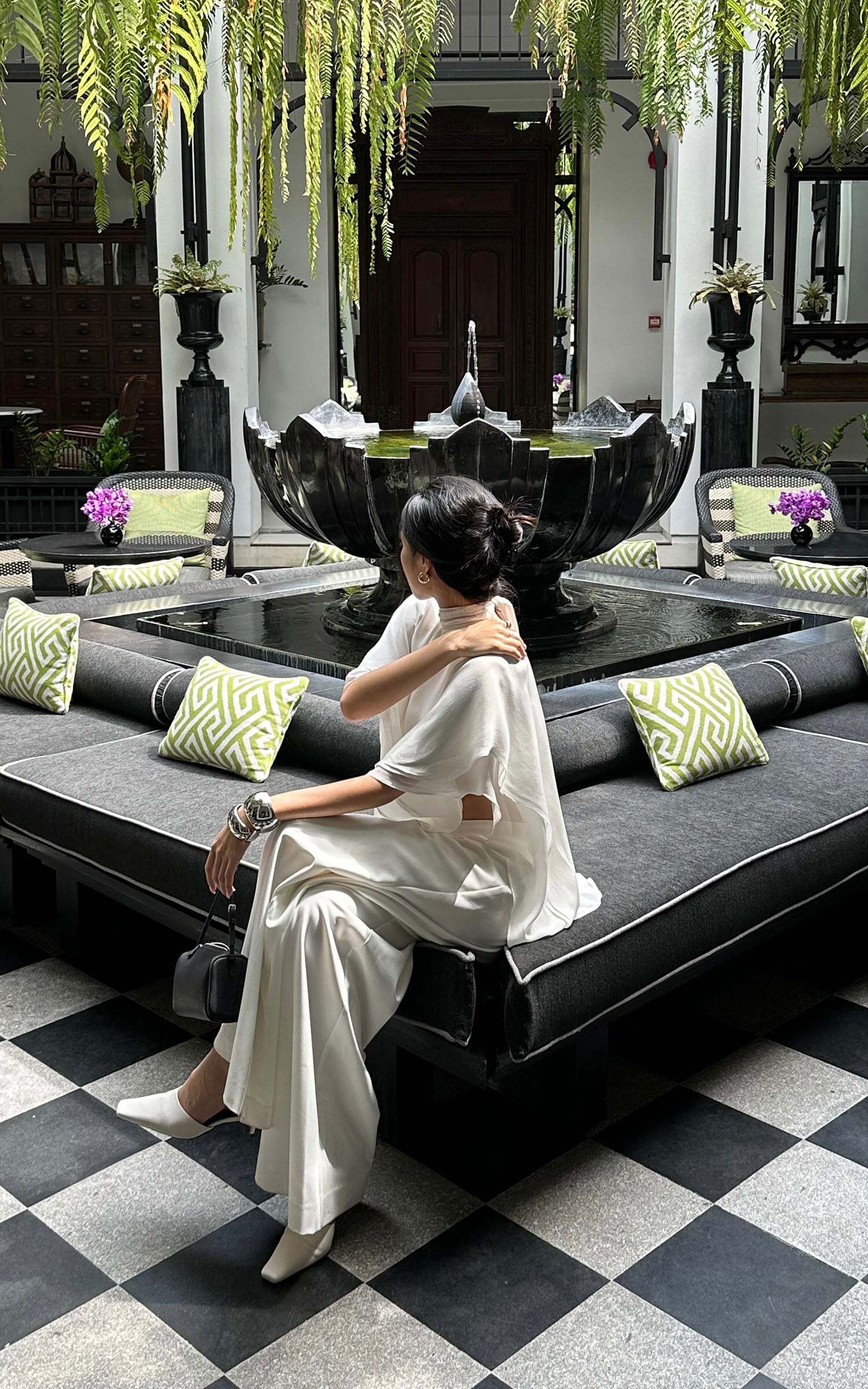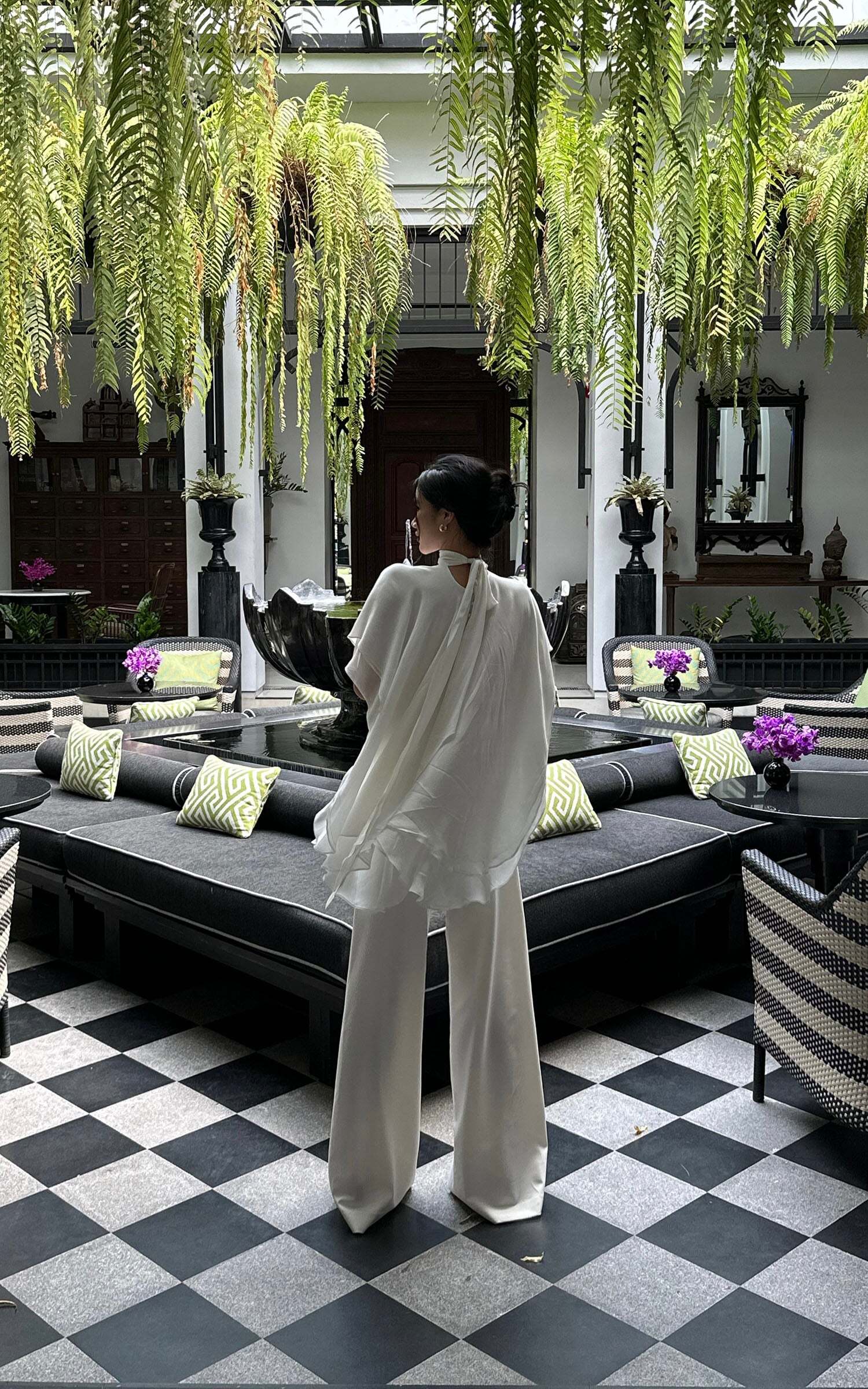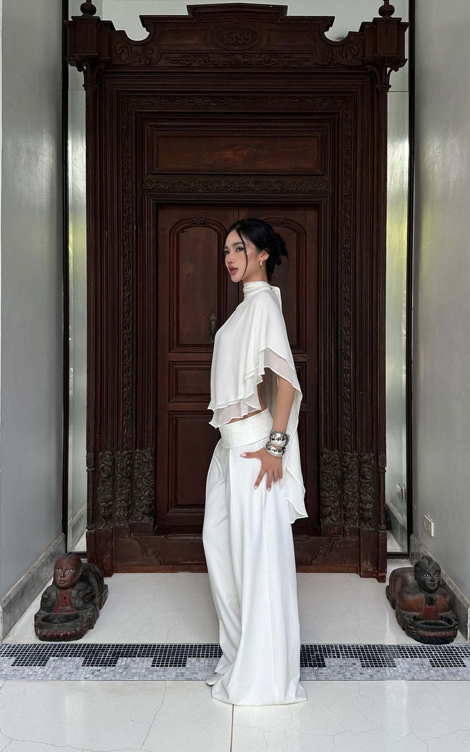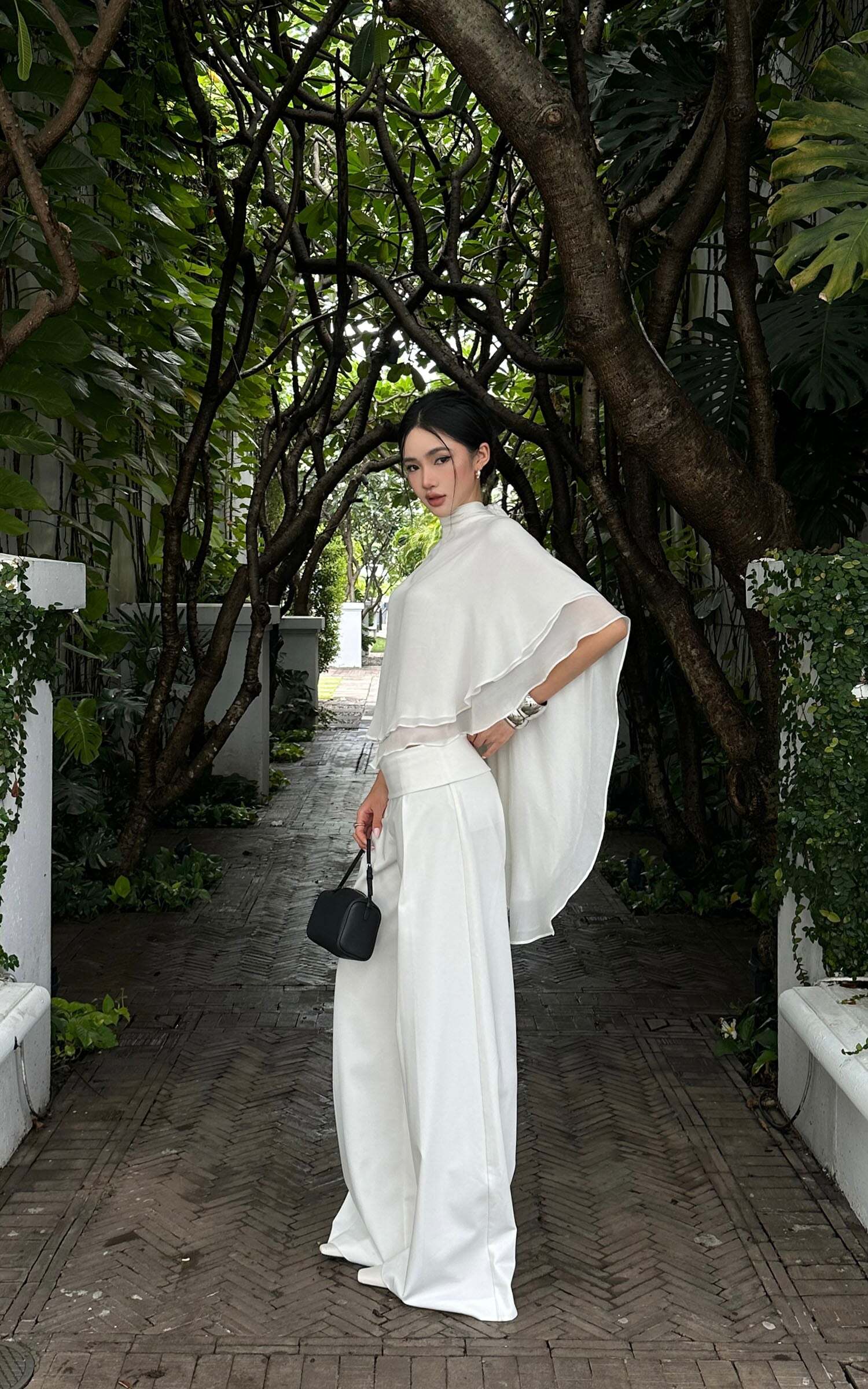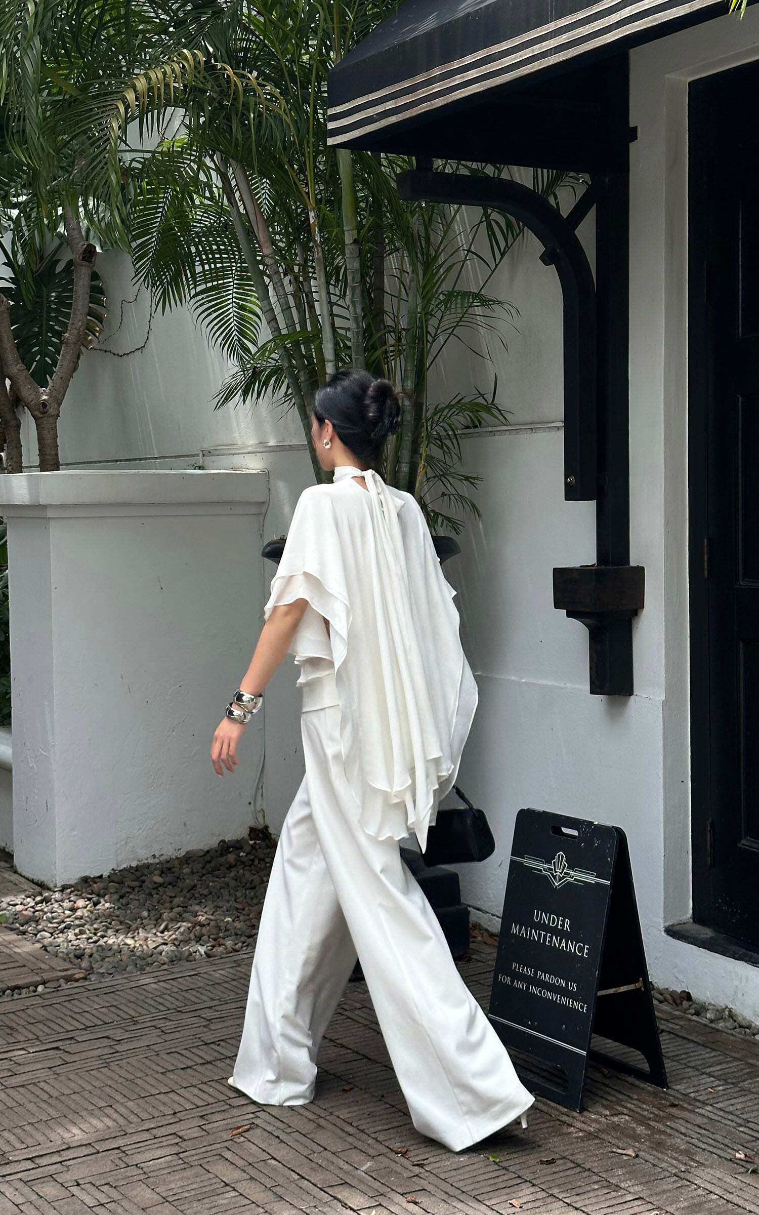 Tailored with a clean, sculptural silhouette, these wide-leg trousers sit high on the waist with a smooth, folded-over band that flatters and elongates the torso. The structured fabric drapes fluidly, holding its shape without stiffness. A concealed side zip ensures a seamless finish. Pair with airy tops or sharp blazers to channel understated boldness.