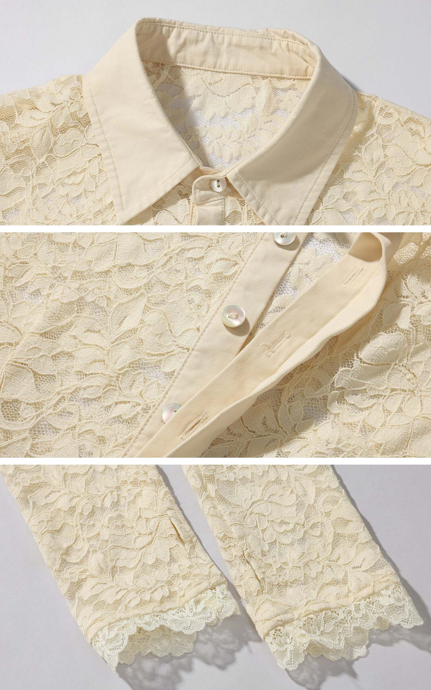 Lace Sheer Shirt with Collar and Long Sleeves High-quality product featuring fashion outfits, pretty outfits, outfit ideas and more. Modern design that fits the latest trends. Premium materials ensure durability and comfort. Order now for special offers! Product designed with attention to every detail. Suitable for all occasions and personal styles.