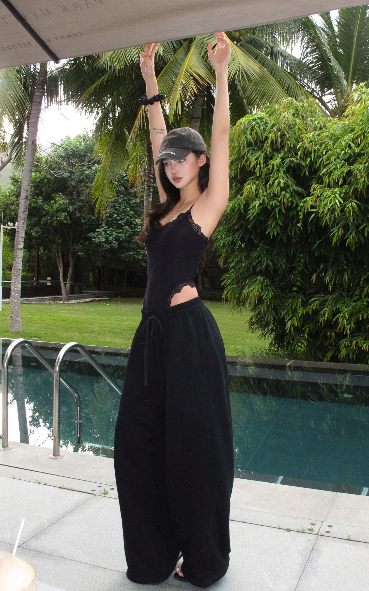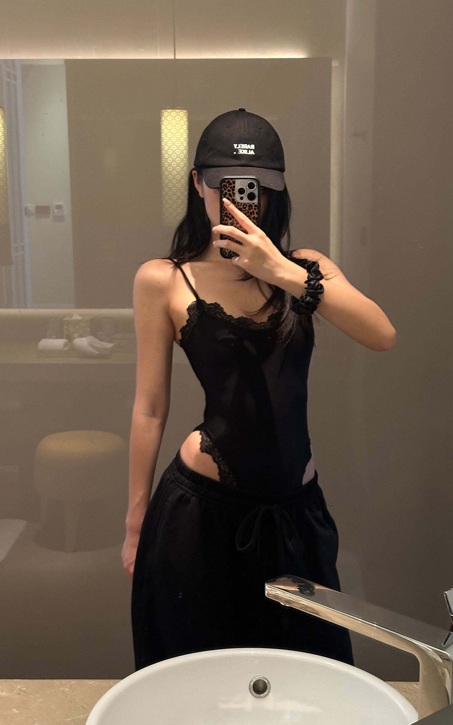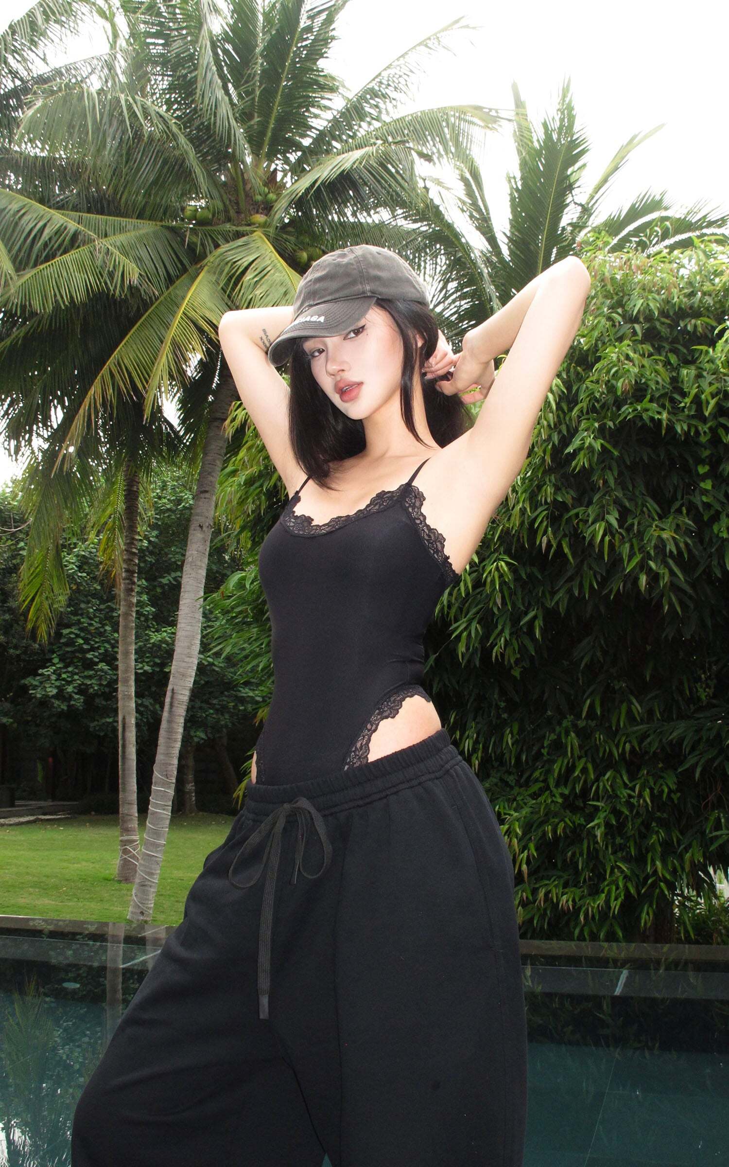 This is not your average bodysuit. Cut from a soft stretch fabric that sculpts the body like second skin, it’s finished with delicate lace trimming that dances along the neckline and high-cut leg openings. A daring side cut-out elongates the silhouette, adding heat to its clean lines. Adjustable straps and snap-button closure ensure the perfect fit from every angle.Dress it down with oversized sweatpants and a cap for off-duty attitude, or layer it under sheer layers and blazers for sultry nighttime energy. Bold yet minimal, intimate yet public—this piece exists in tension, and that’s where the magic lies.