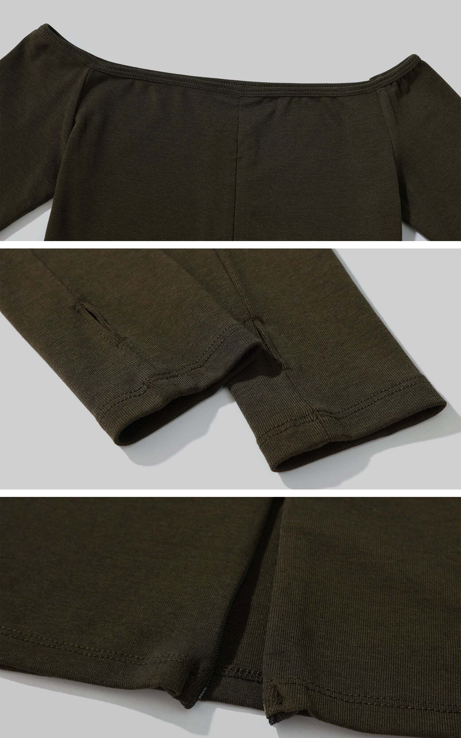 Off-Shoulder Slim-Fit Long Sleeve Top with Front Hem Slit High-quality product featuring fall fashion, easy halloween costume, fall fits and more. Modern design that fits the latest trends. Premium materials ensure durability and comfort. Order now for special offers! Product designed with attention to every detail. Suitable for all occasions and personal styles.