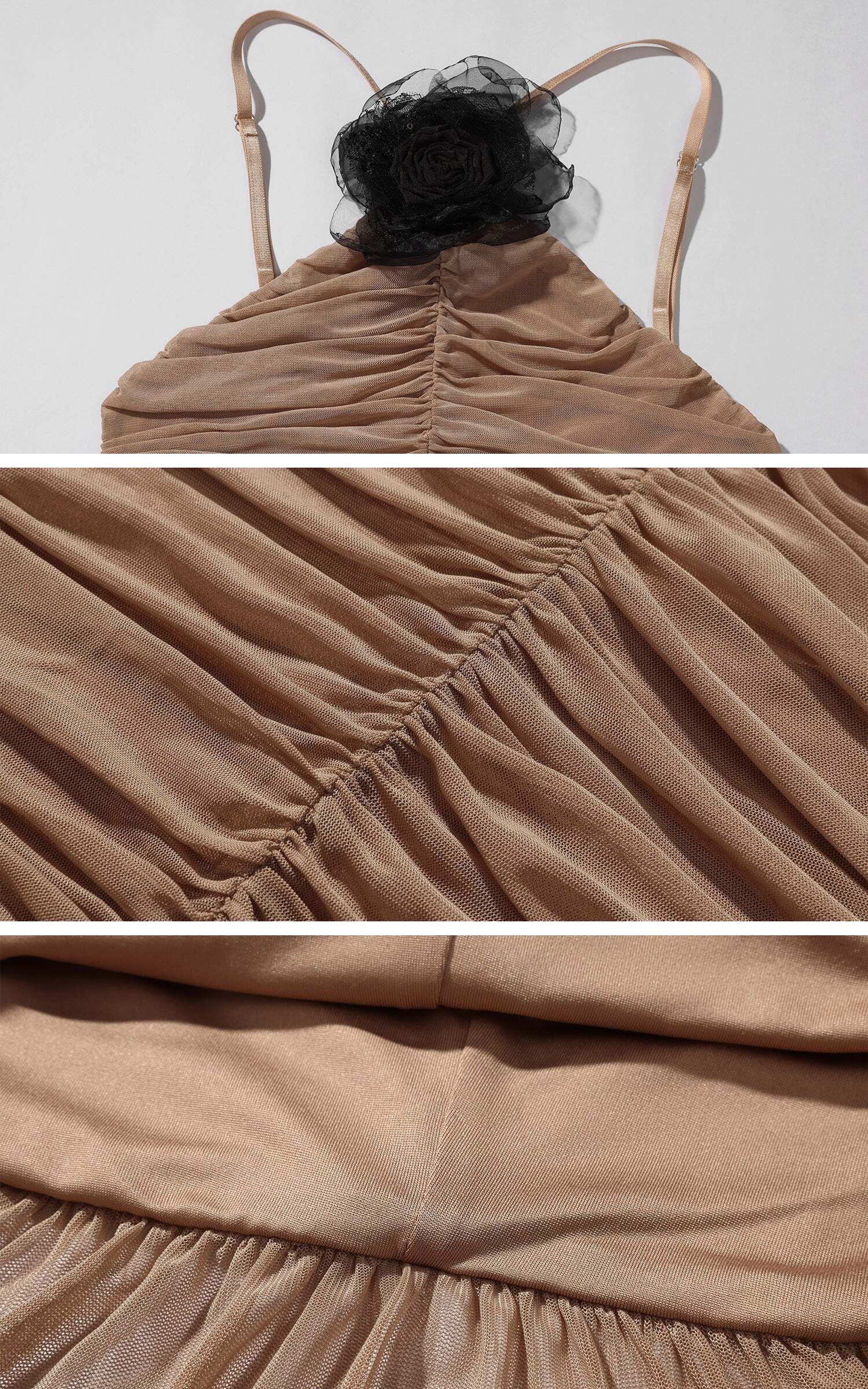 Ruched Mesh Maxi Dress with Detachable Floral Brooch and Flowing Hem High-quality product featuring hoco dresses, graduation dress, fashion outfits and more. Modern design that fits the latest trends. Premium materials ensure durability and comfort. Order now for special offers! Product designed with attention to every detail. Suitable for all occasions and personal styles.