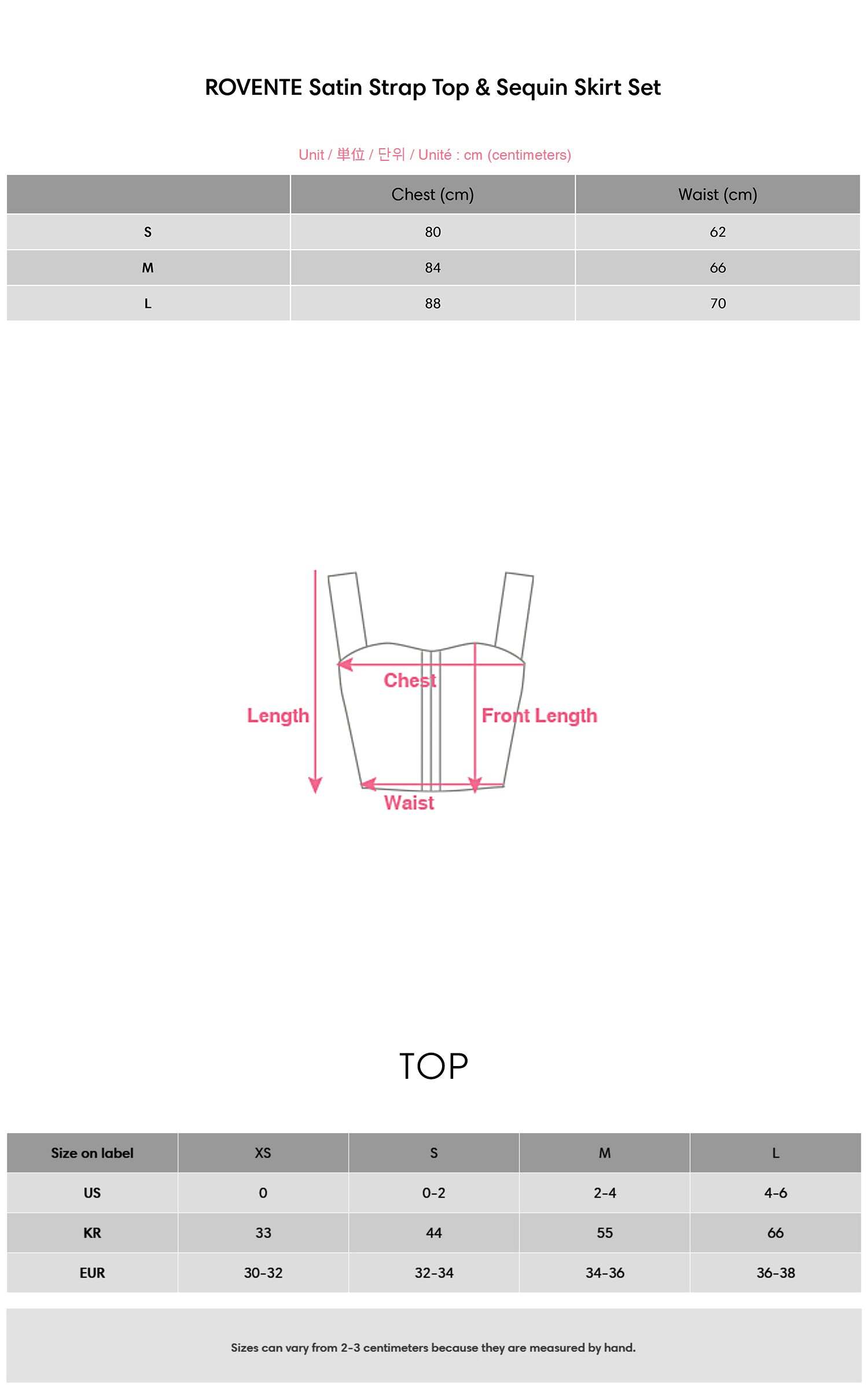 - Model is wearing size S for the Top and size S for the Skirt.
