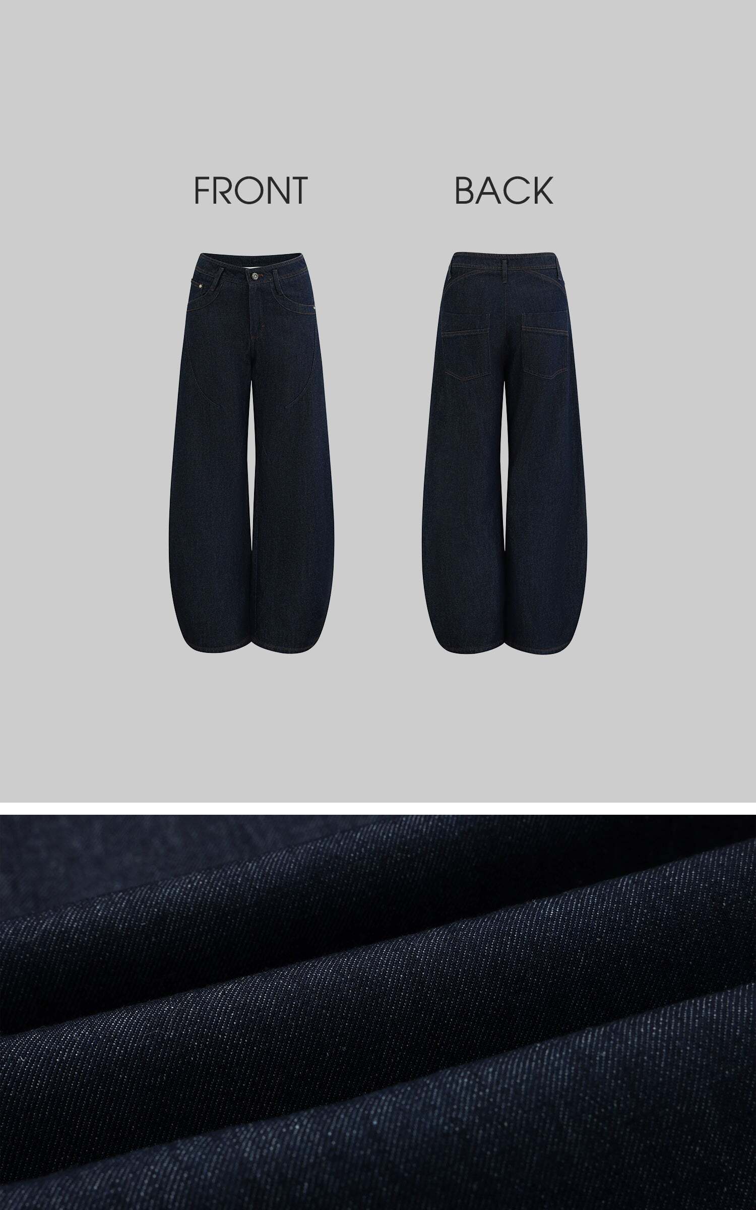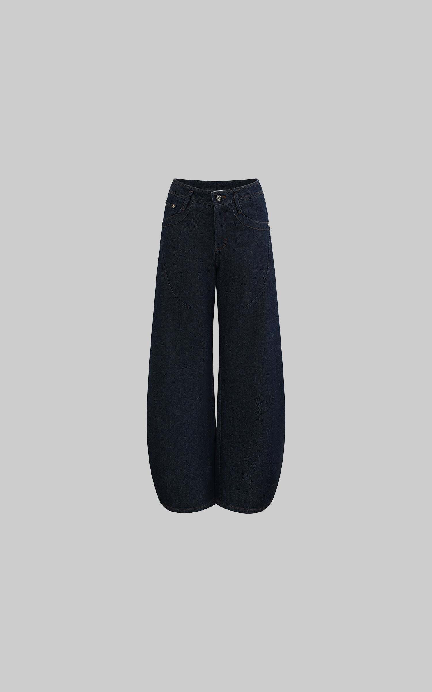 Sculpted volume meets 90s nostalgia. These wide-leg jeans reimagine a streetwear staple with exaggerated balloon shaping and curved paneling. Cut from structured denim, they hug mid-rise on the waist and flare dramatically through the leg for a look that’s both bold and architectural. Designed to elevate basics and exaggerate silhouettes, they’re made for modern rebels who don’t play it safe.