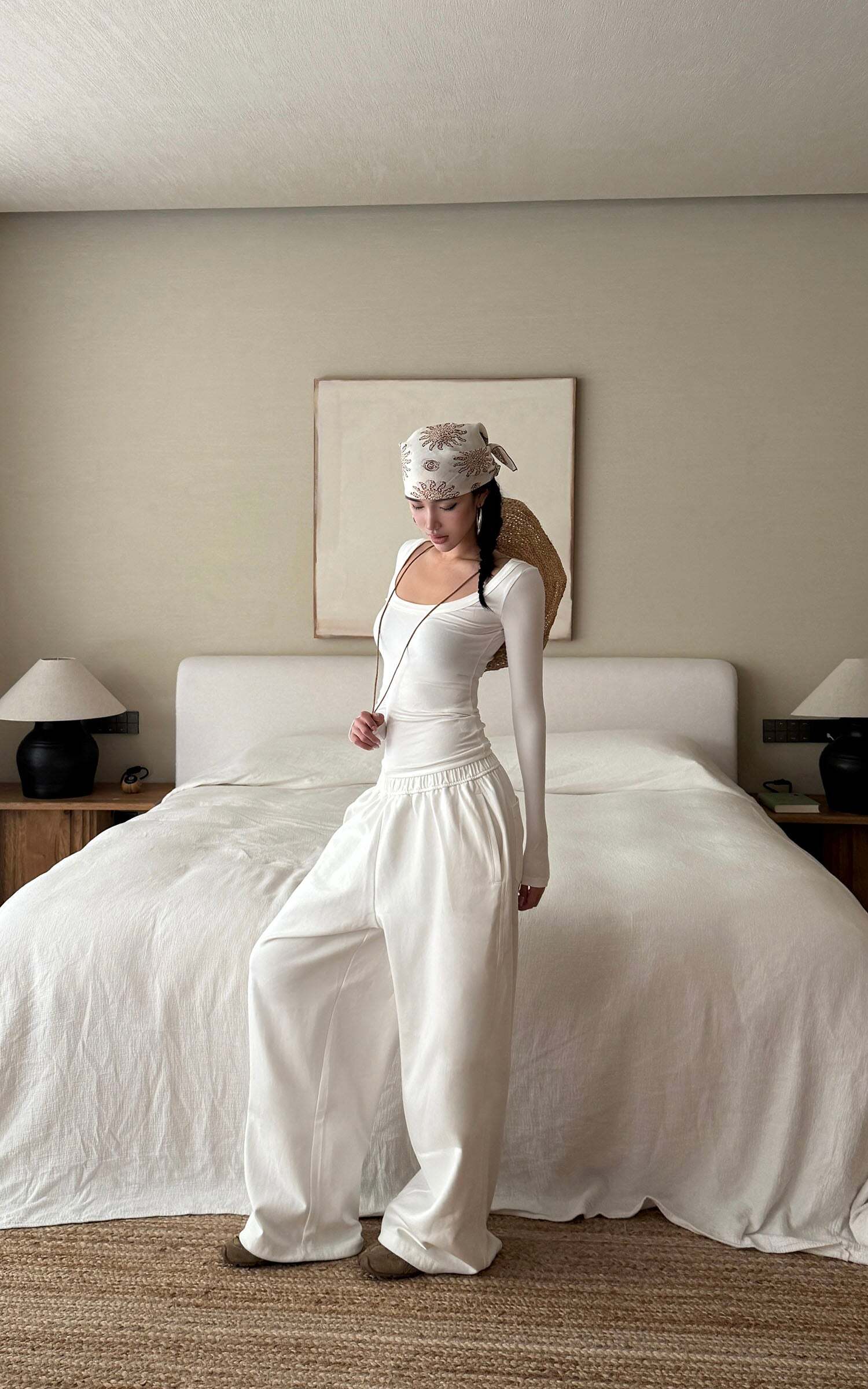 A razor-sharp essential for any modern wardrobe. This sculpted ribbed tank is cut from a soft, stretchy cotton blend that hugs the body like a second skin. With a racerback silhouette and squared neckline, it delivers an ultra-flattering fit that’s both understated and bold. Style it with oversized parachute pants for a laidback, off-duty attitude, or pair it with a voluminous skirt for a play on contrast. Available in monochrome classics and a muted army green tone—effortless, clean, and made to move with you.