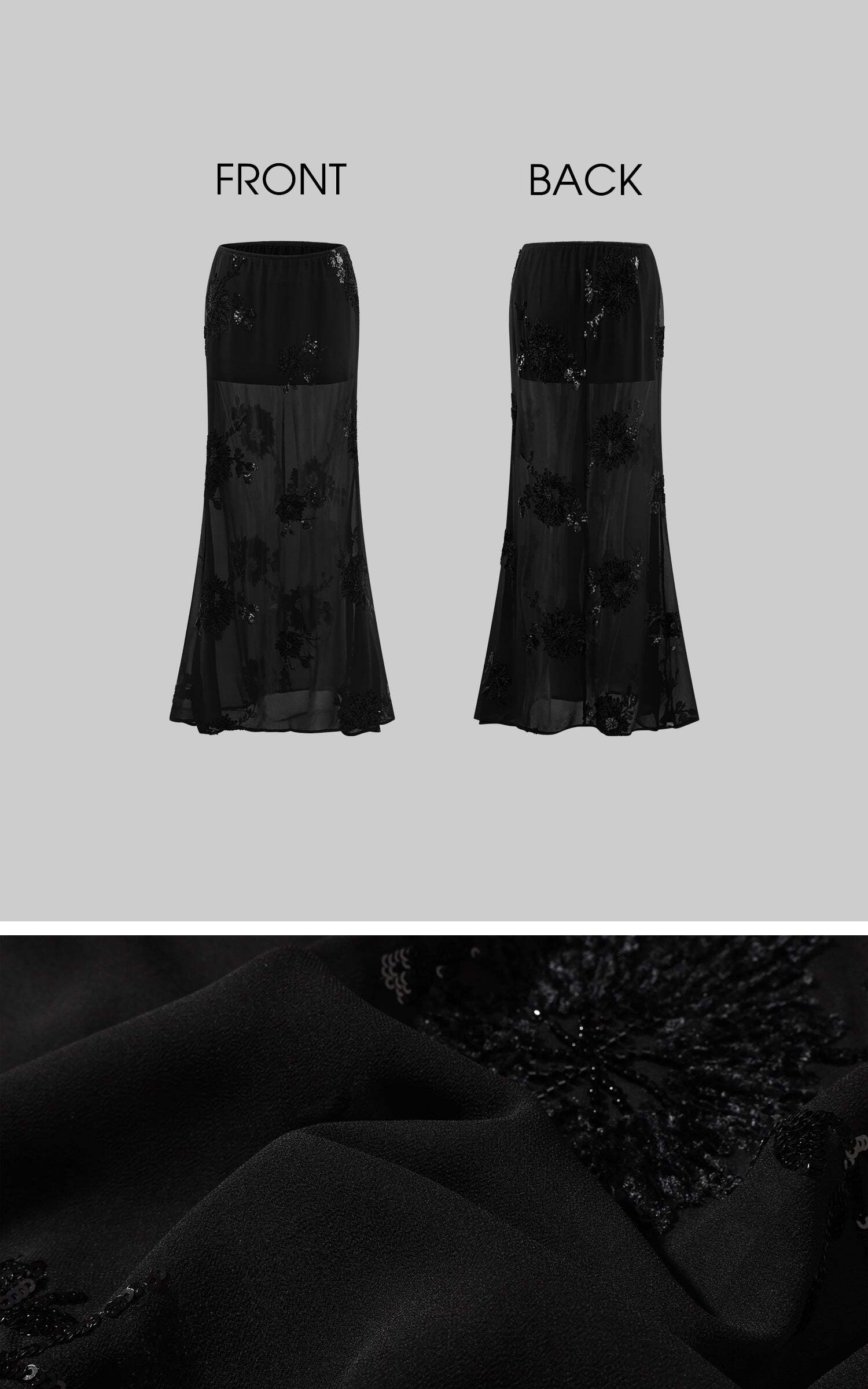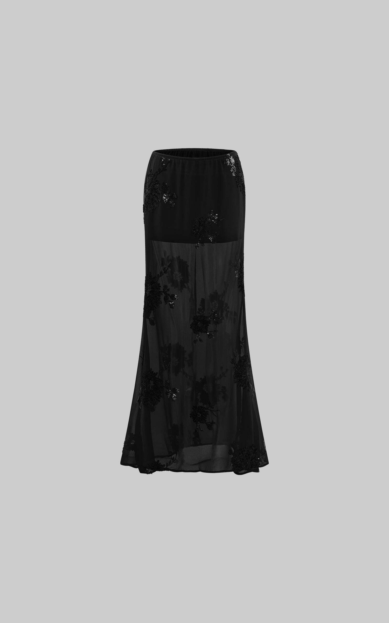 Sheer Mesh Sequin Maxi Skirt with Floral Embroidery High-quality product featuring coquette outfit, fairy costume, spring outfit and more. Modern design that fits the latest trends. Premium materials ensure durability and comfort. Order now for special offers! Product designed with attention to every detail. Suitable for all occasions and personal styles.