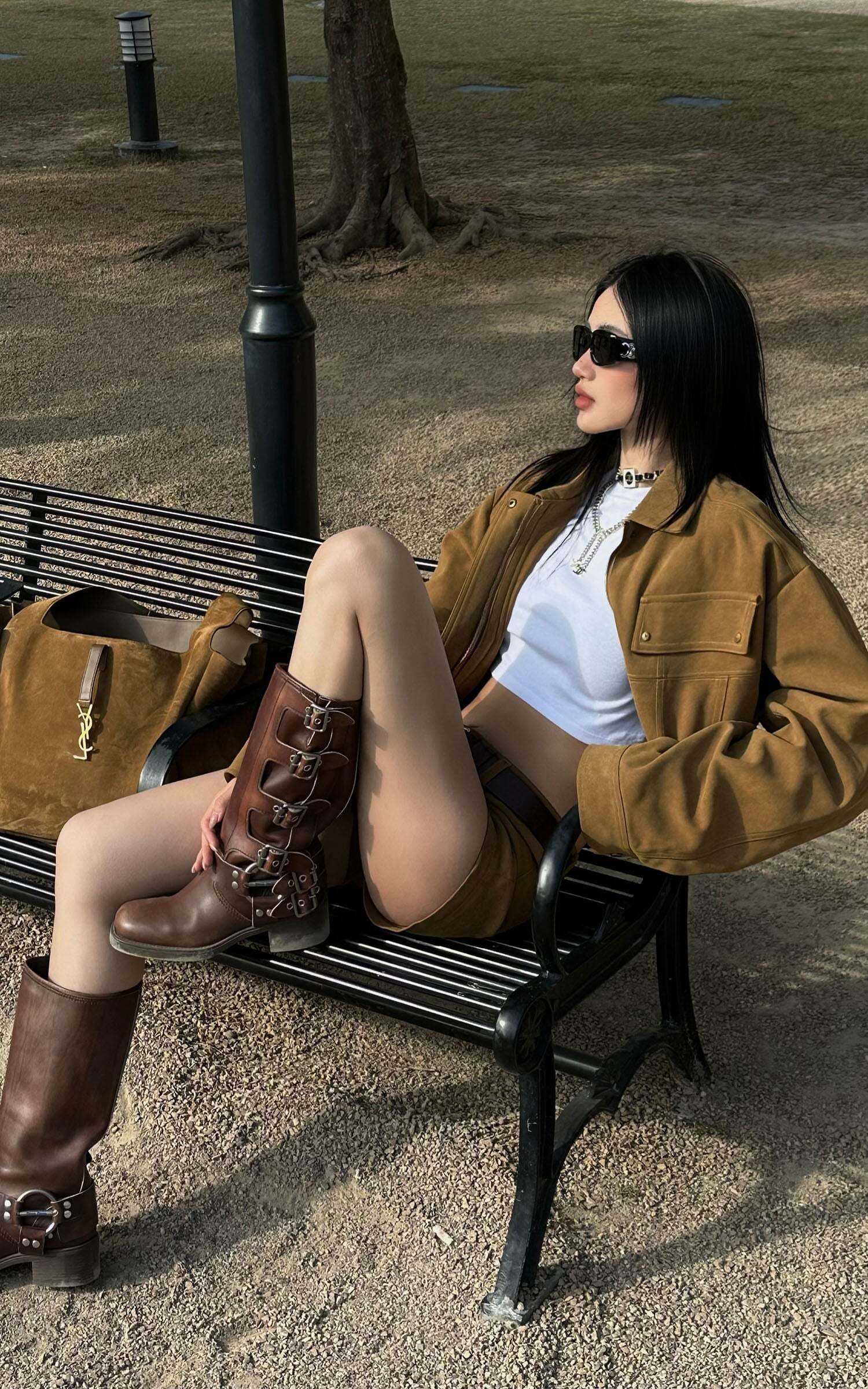 Suede Effect Jacket and Shorts Set High-quality product featuring outfit inspo, fashion outfits, spring outfit and more. Modern design that fits the latest trends. Premium materials ensure durability and comfort. Order now for special offers! Product designed with attention to every detail. Suitable for all occasions and personal styles.
