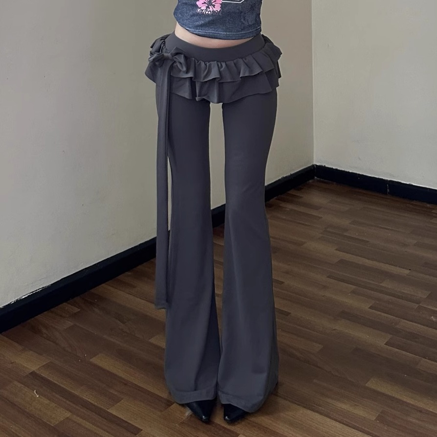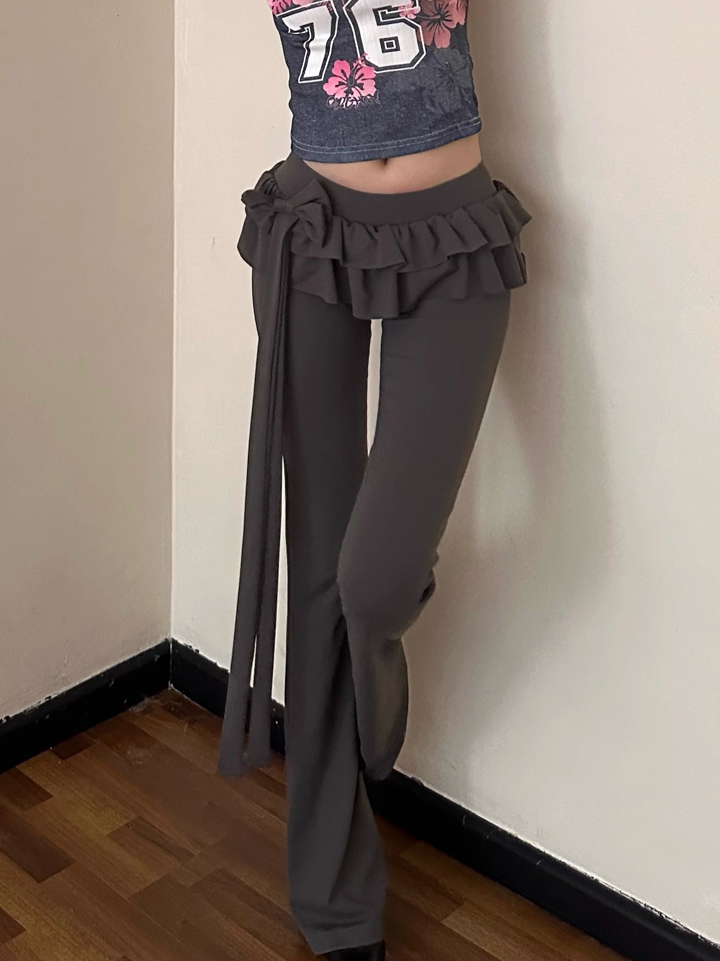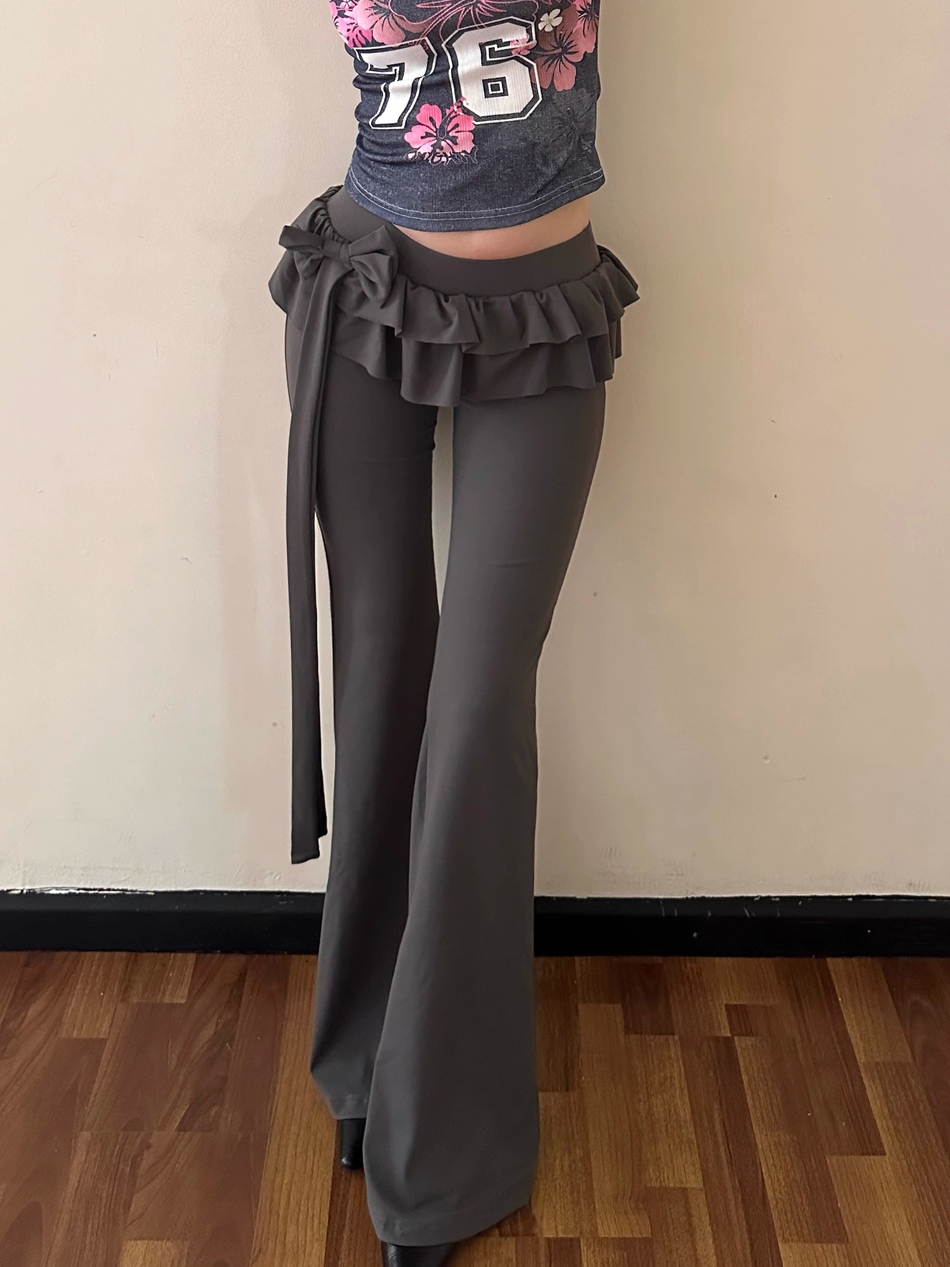 Ruffle Flared Pants Women Low Waislim Fit Casual Long Pants Y2k – Y2k Outfits