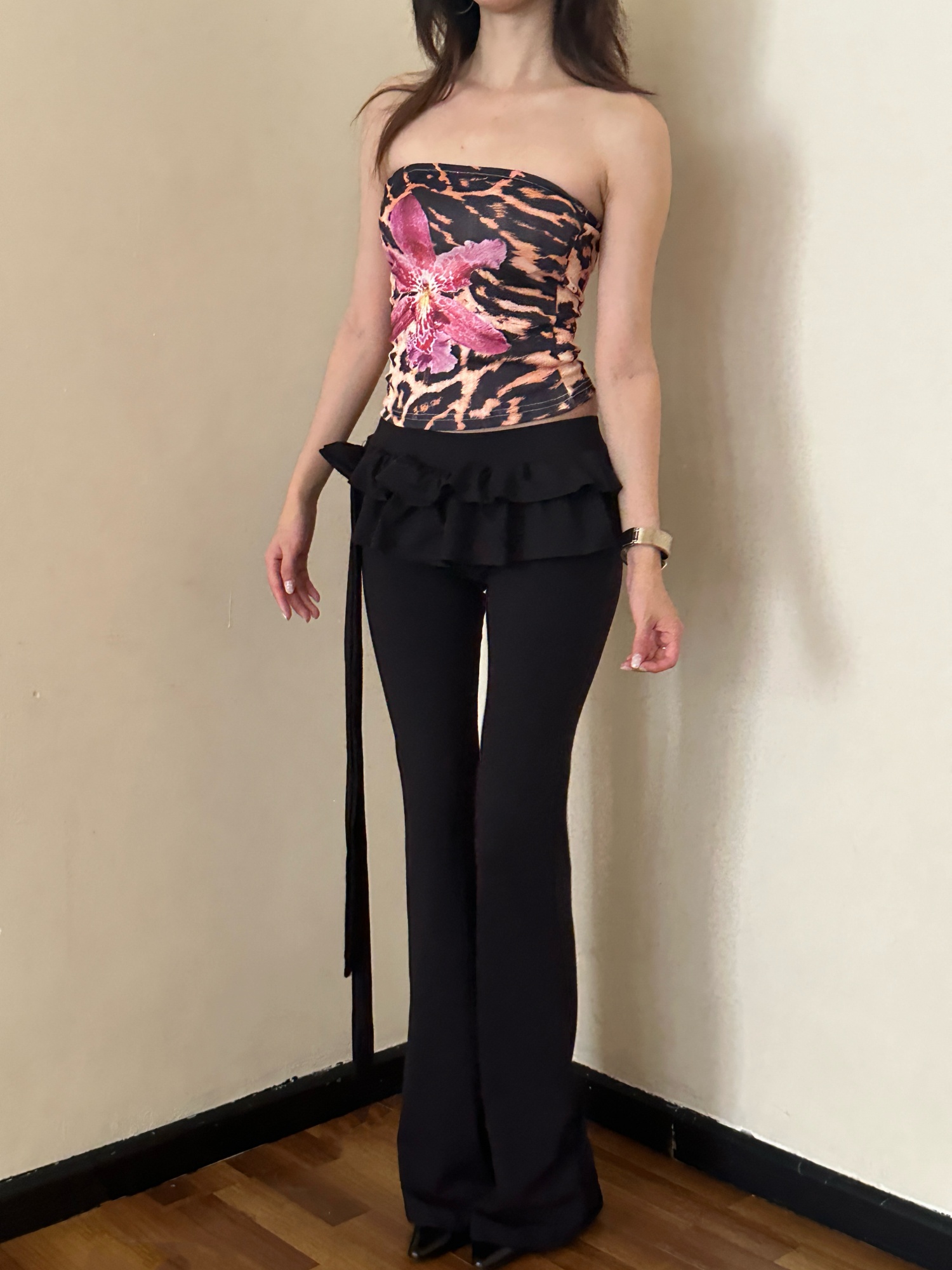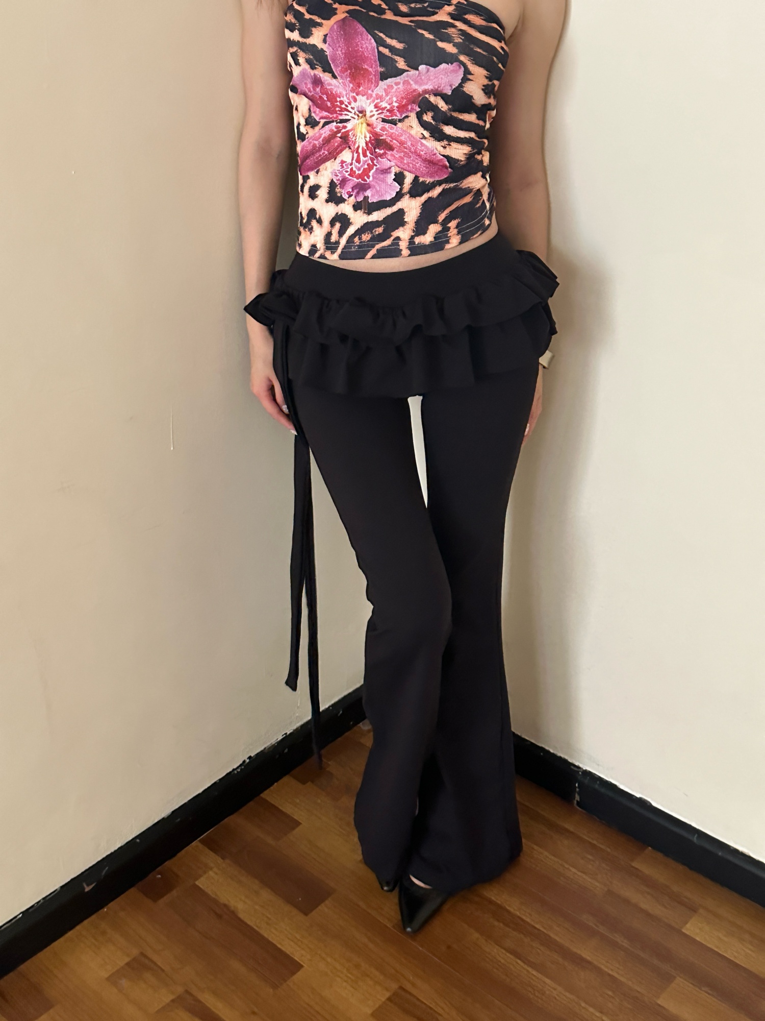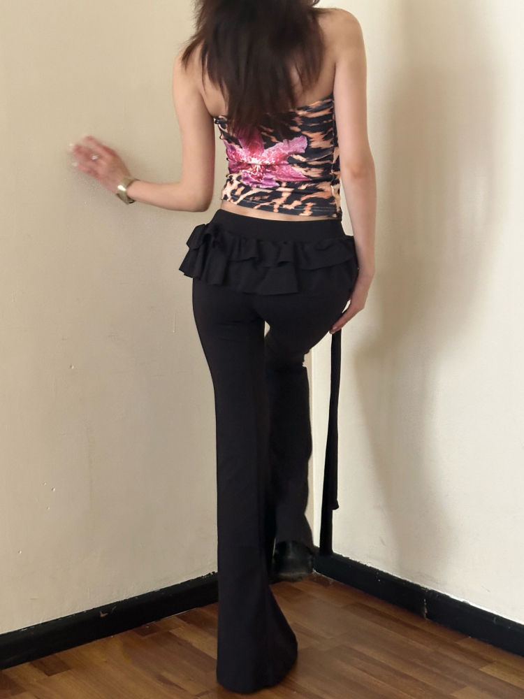 Ruffle Flared Pants Women Low Waislim Fit Casual Long Pants Y2k – Y2k Outfits