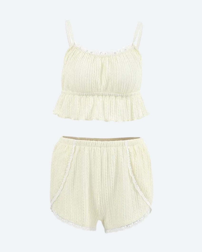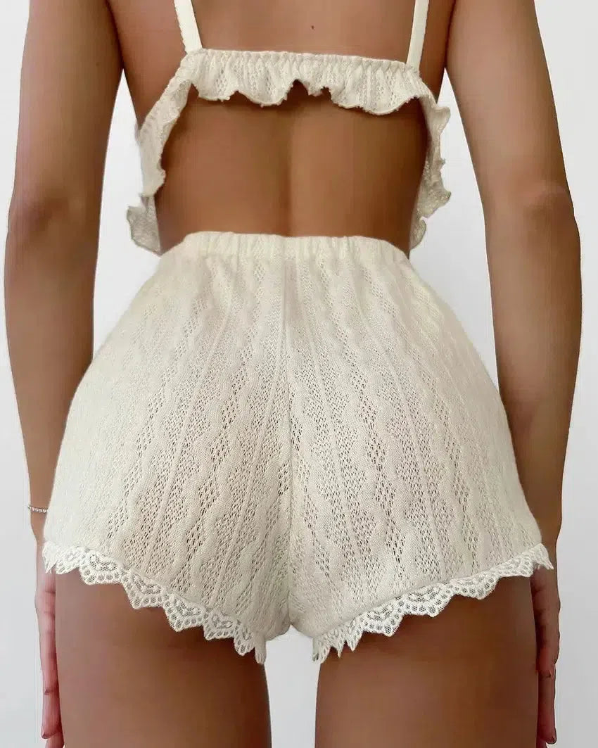 Ruffled Crop Top & Lace Trim Shorts Two Piece Set High-quality product featuring outfit ideas, going out outfits, skirt outfits and more. Modern design that fits the latest trends. Premium materials ensure durability and comfort. Order now for special offers! Product designed with attention to every detail. Suitable for all occasions and personal styles.