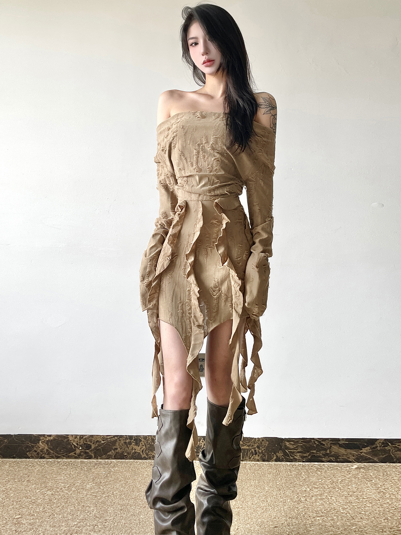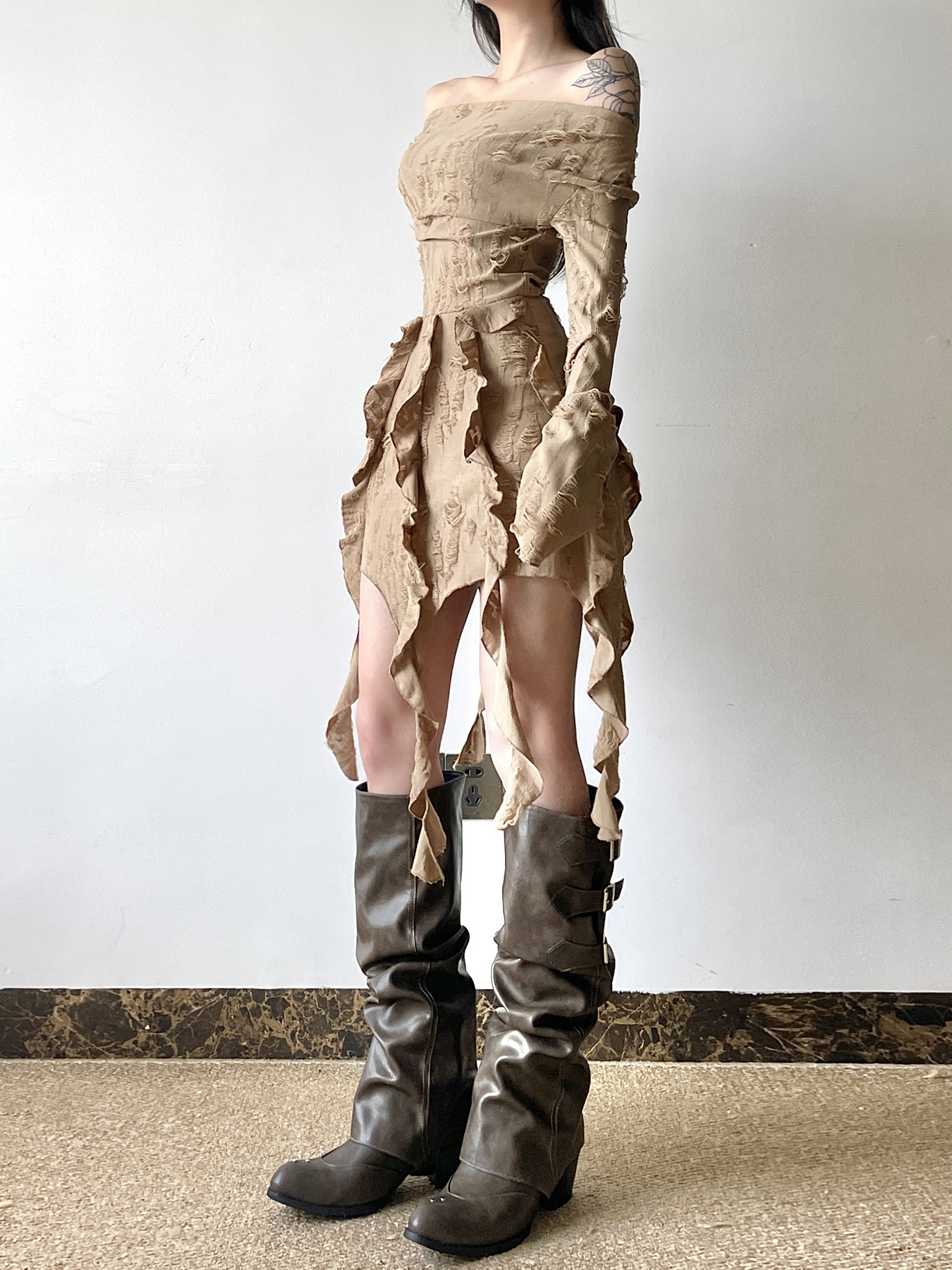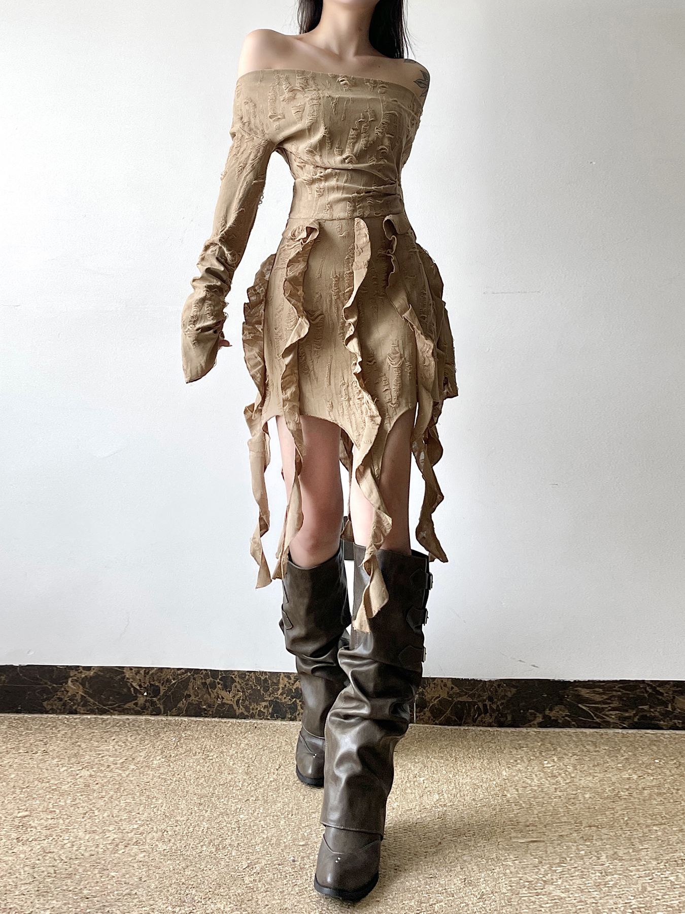Ruffled Fringe Denim Skirt Women, Light Wash Short Skirt, Off Shoulde – Skirt Outfits