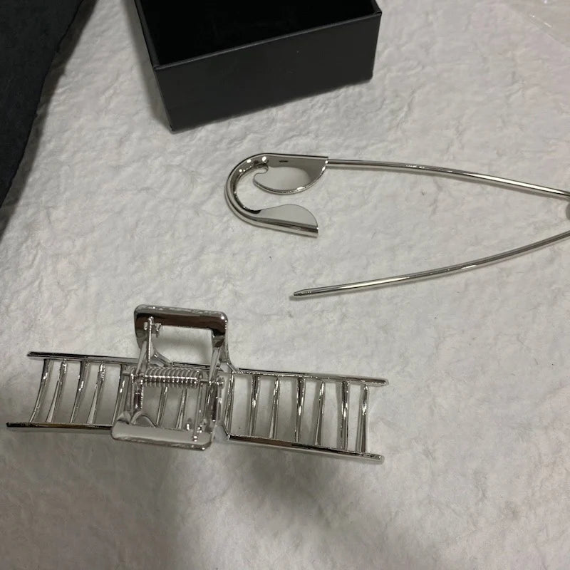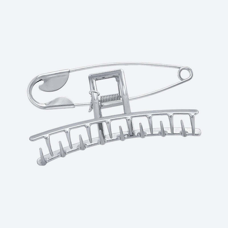 Give your hair a rebellious twist with the Safety Pin Hair Claw. This bold metal clip adds punk vibes to any look while keeping your hair in place with serious grip.