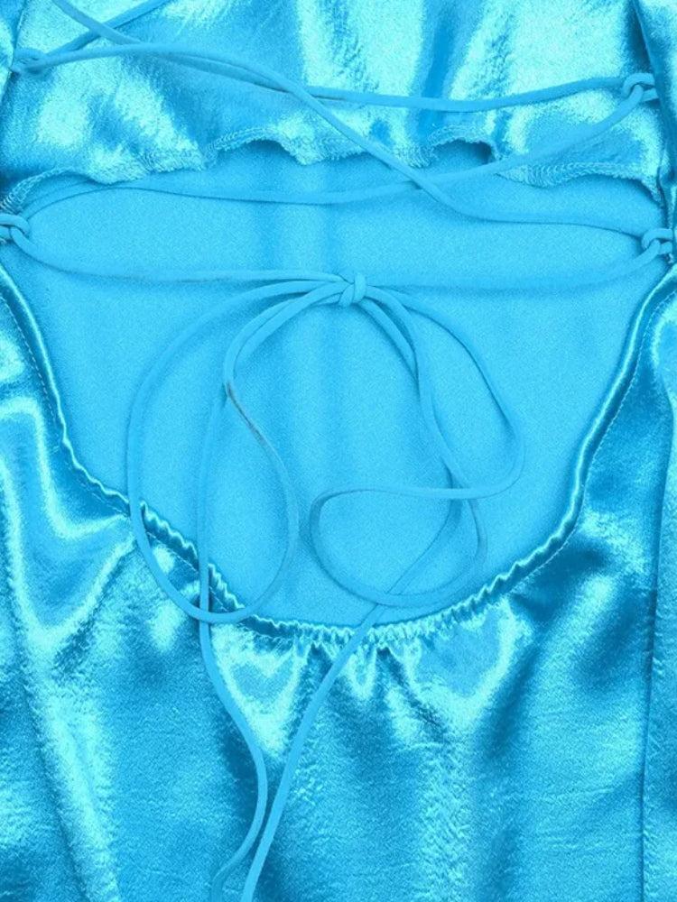 Satin Lace Up Backless Mini Dress
