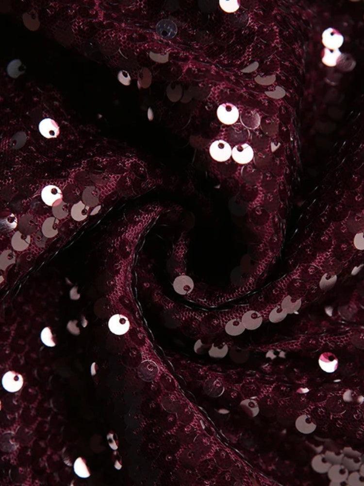 All eyes on you. The Sequined Backless Mini Dress brings the glam in full force with a deep plunge, tie-around halter neck, and high-shine burgundy sequins. Sultry, daring, and made for the after-dark scene.