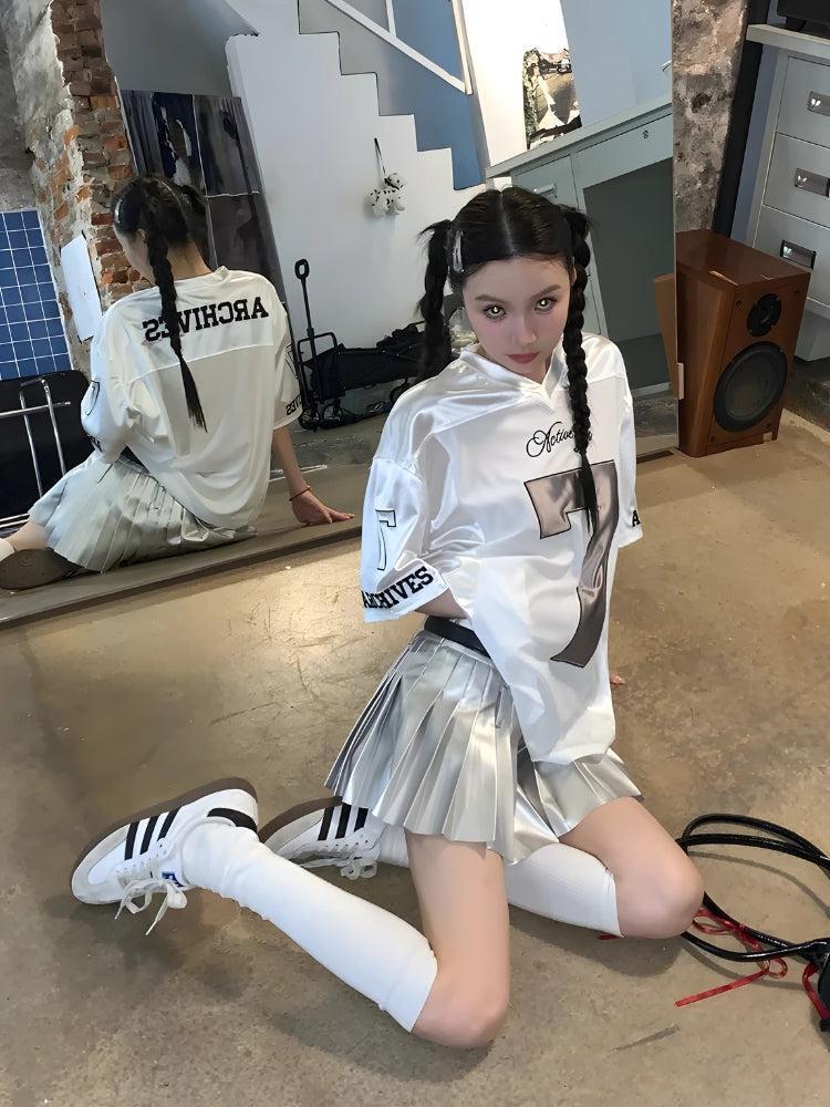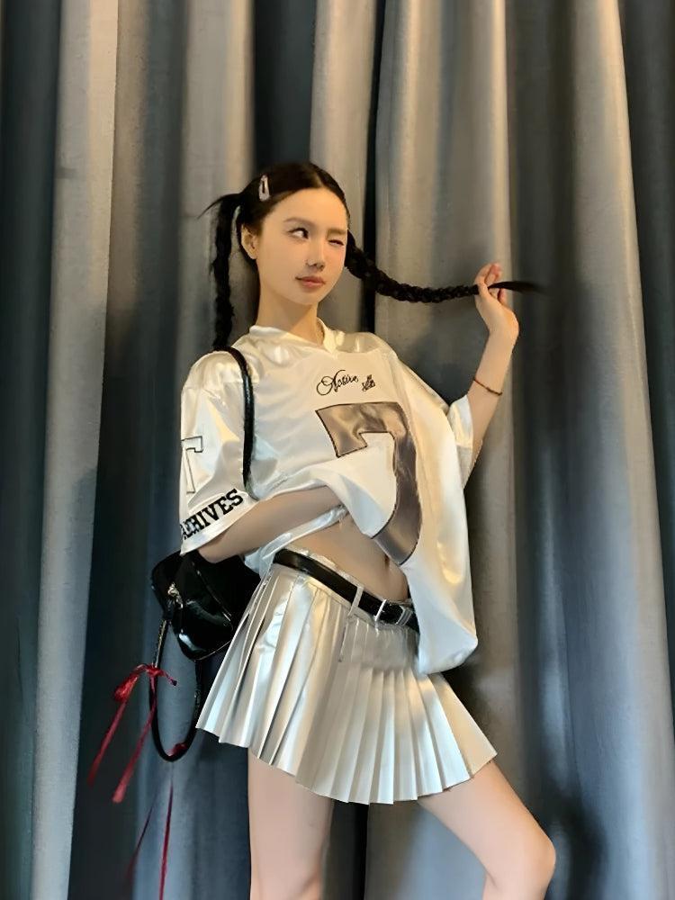The Seven Jersey Top is a sporty-chic statement piece that blends streetwear aesthetics with a playful edge. Designed with an oversized silhouette, this jersey-style top features bold graphic details, including a metallic ‘7’ print, adding a touch of retro athleticism to your look.