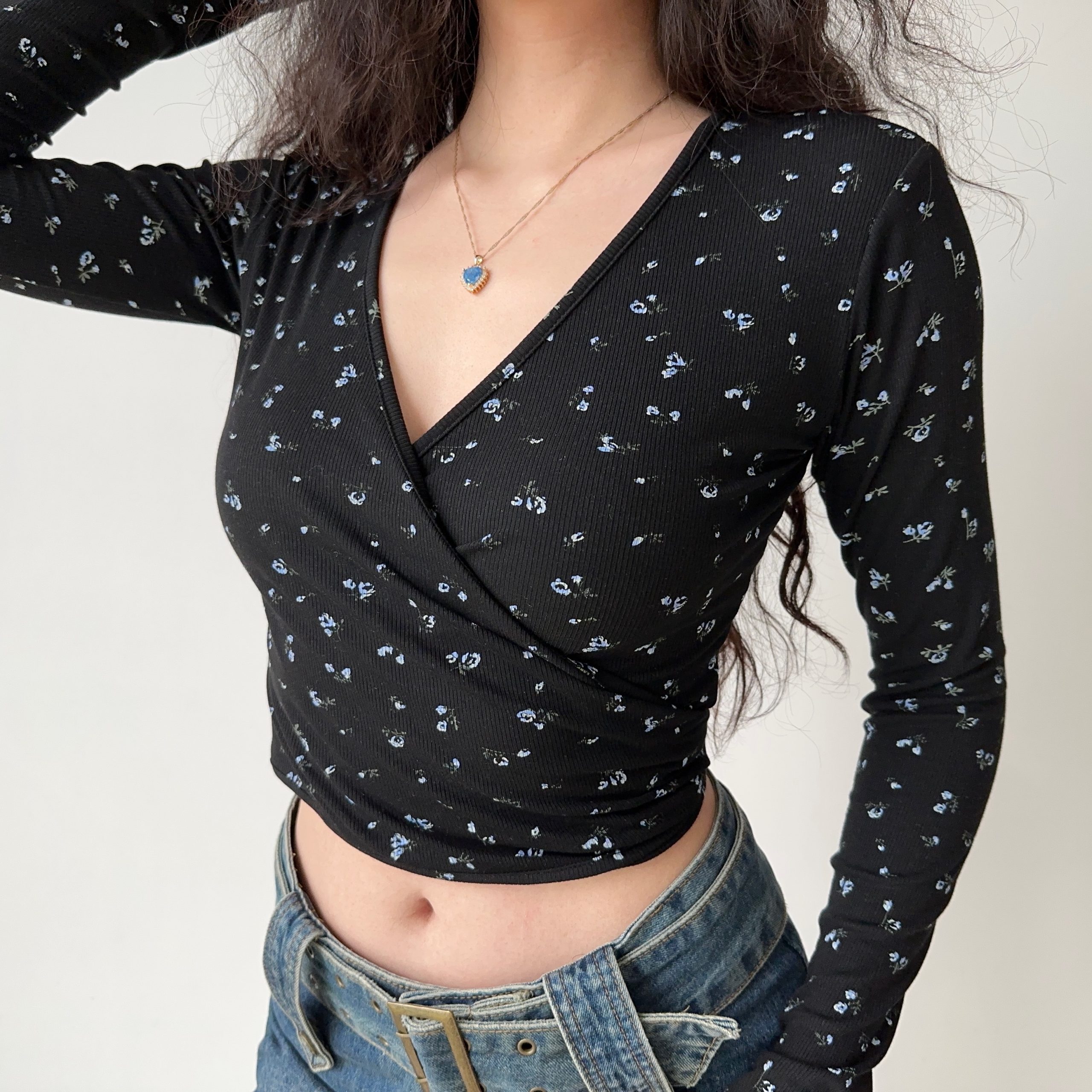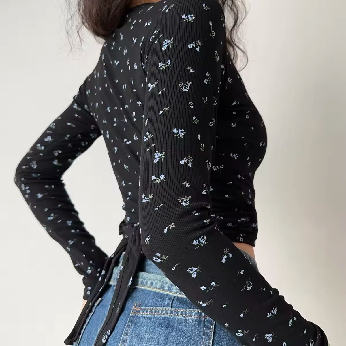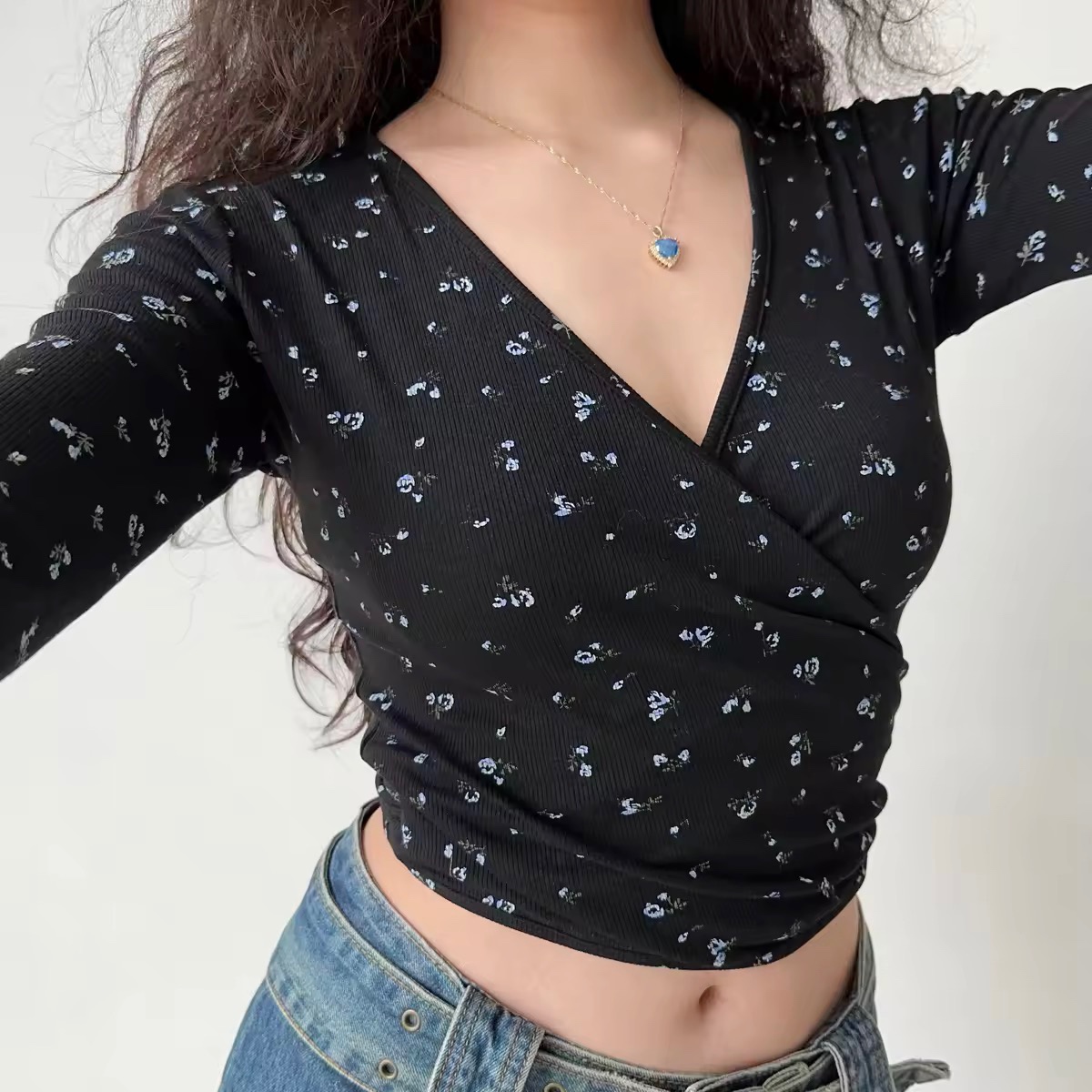 Elevate your wardrobe with our Sexy Floral Tie Cross V-Neck Long Sleeve T-Shirt, designed for the modern woman who loves to blend comfort with style. This slim-fit short top showcases a stunning floral pattern, perfect for Y2K vibes and casual outings. With its flattering V-neck and tie detail, you’ll feel confident and chic wherever you go. Don’t miss out on this versatile addition to your closet add it to your cart today!