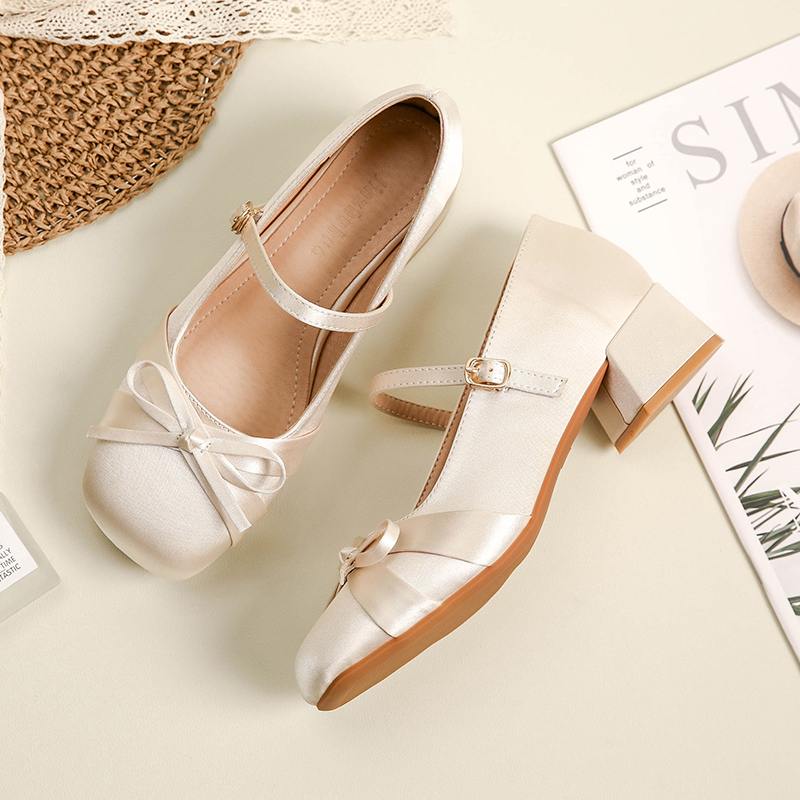 Sheepskin Mary Jane Women Shoes, Chunky Heel High Heels Skirts, Spri – Spring Outfits