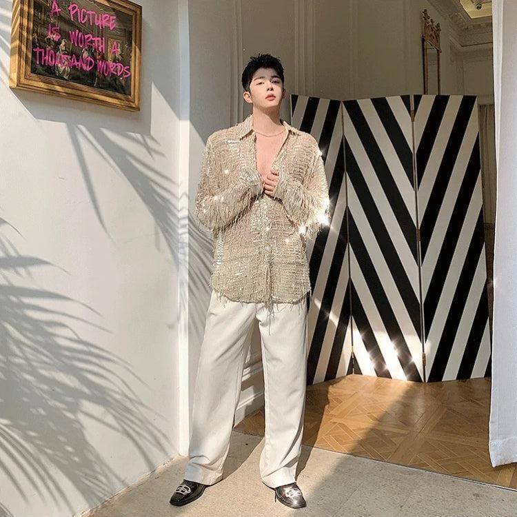 Shiny Sequin Sheer Shirt – Outfit Inspo