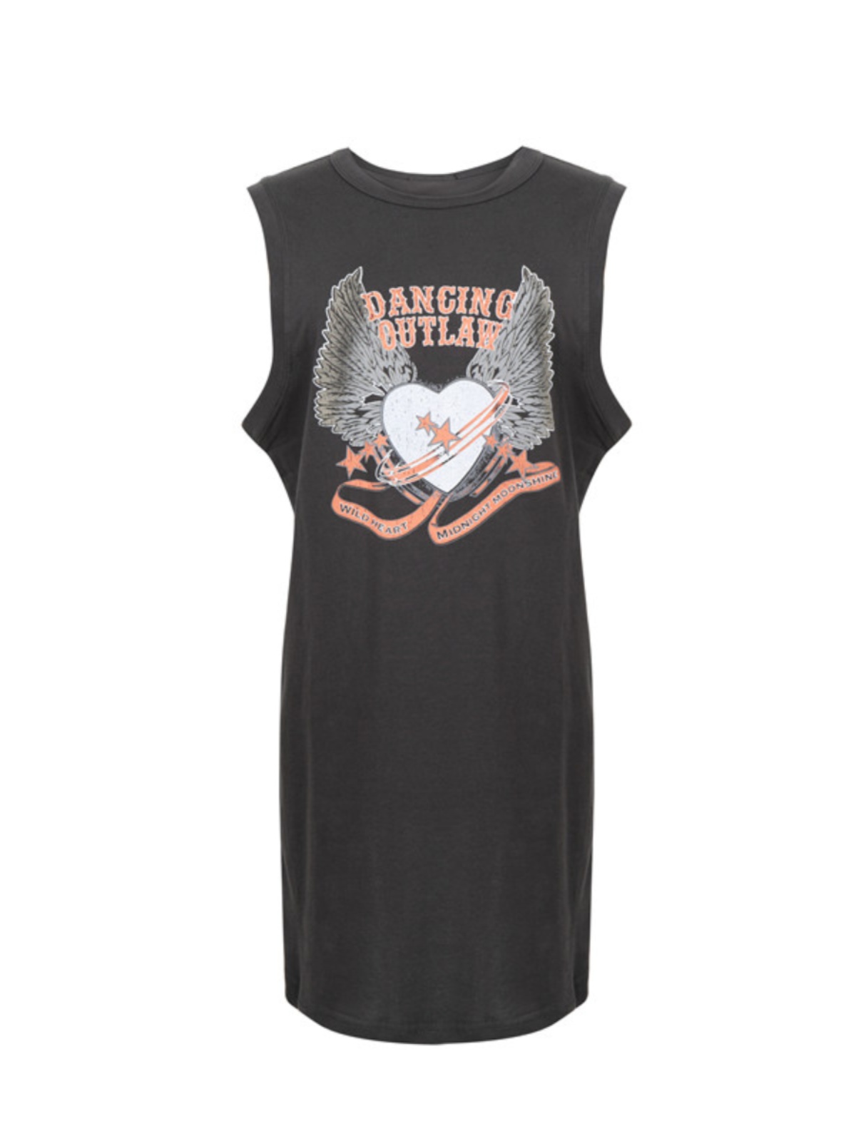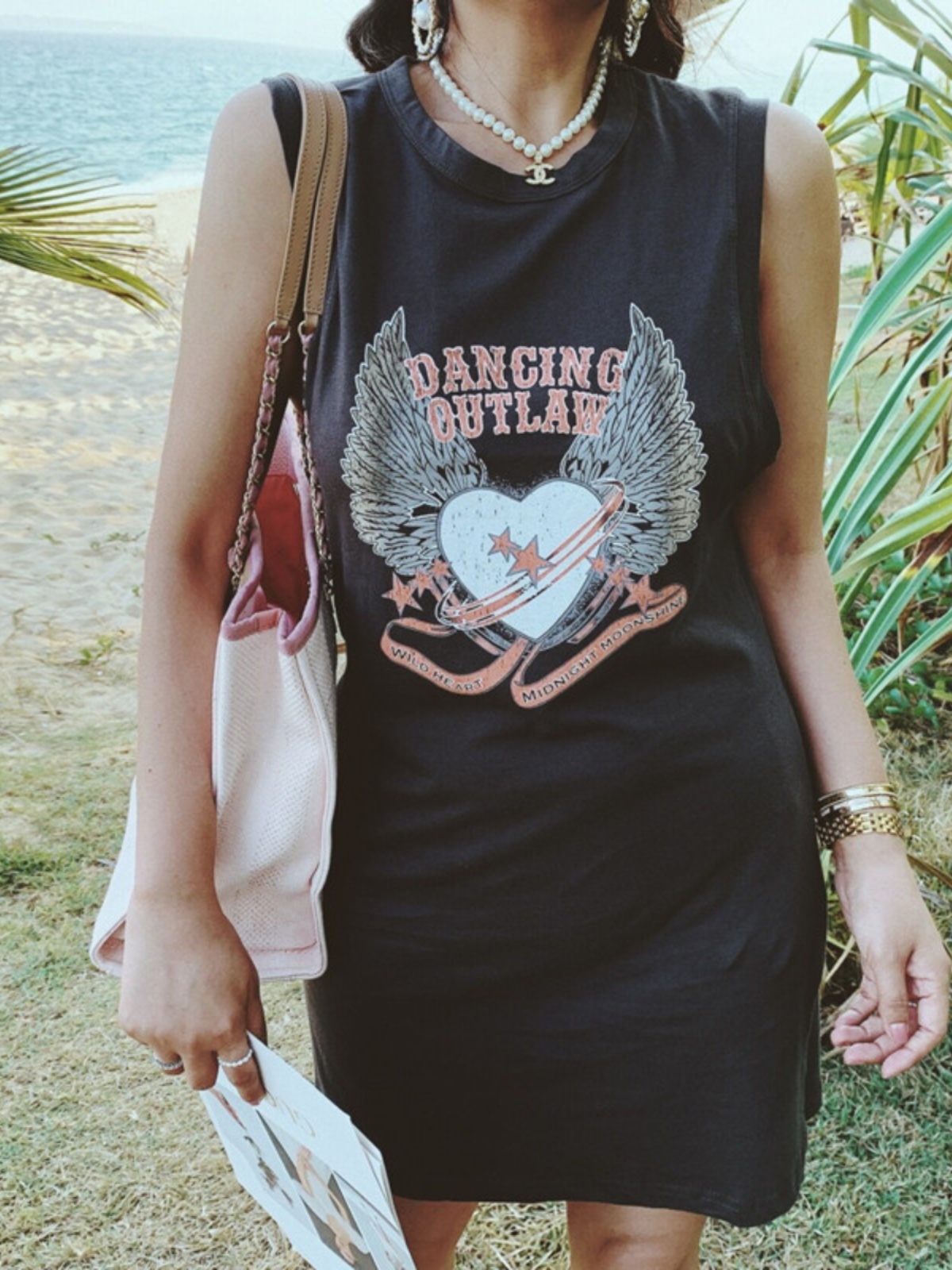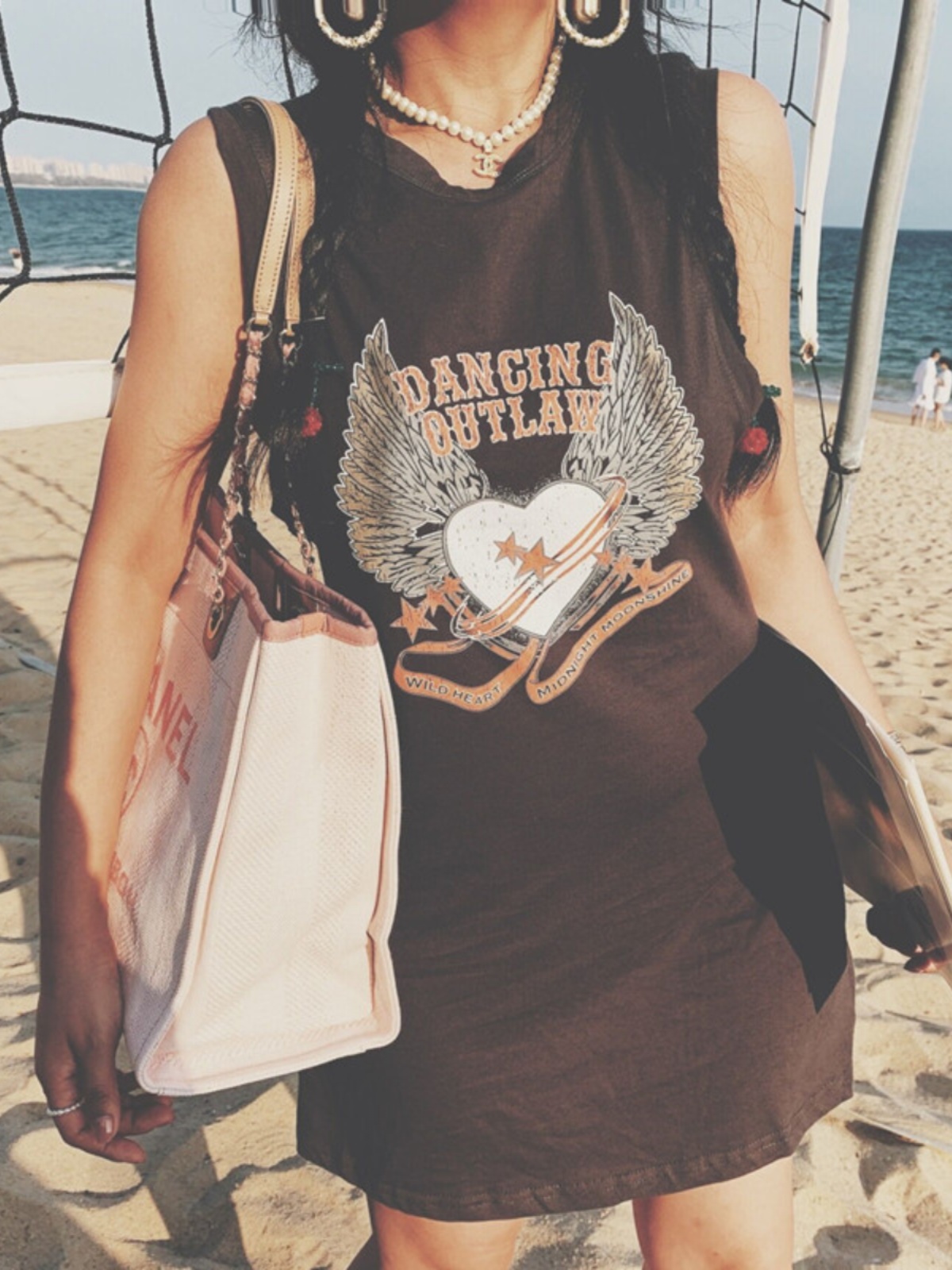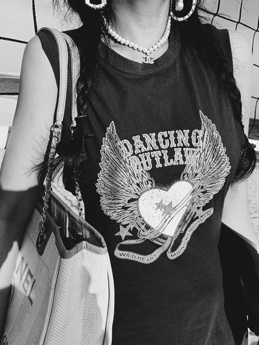 Sleeveless Long Slim Dress Small Wing Heart Print Pring/summer Vintage – Summer Fits