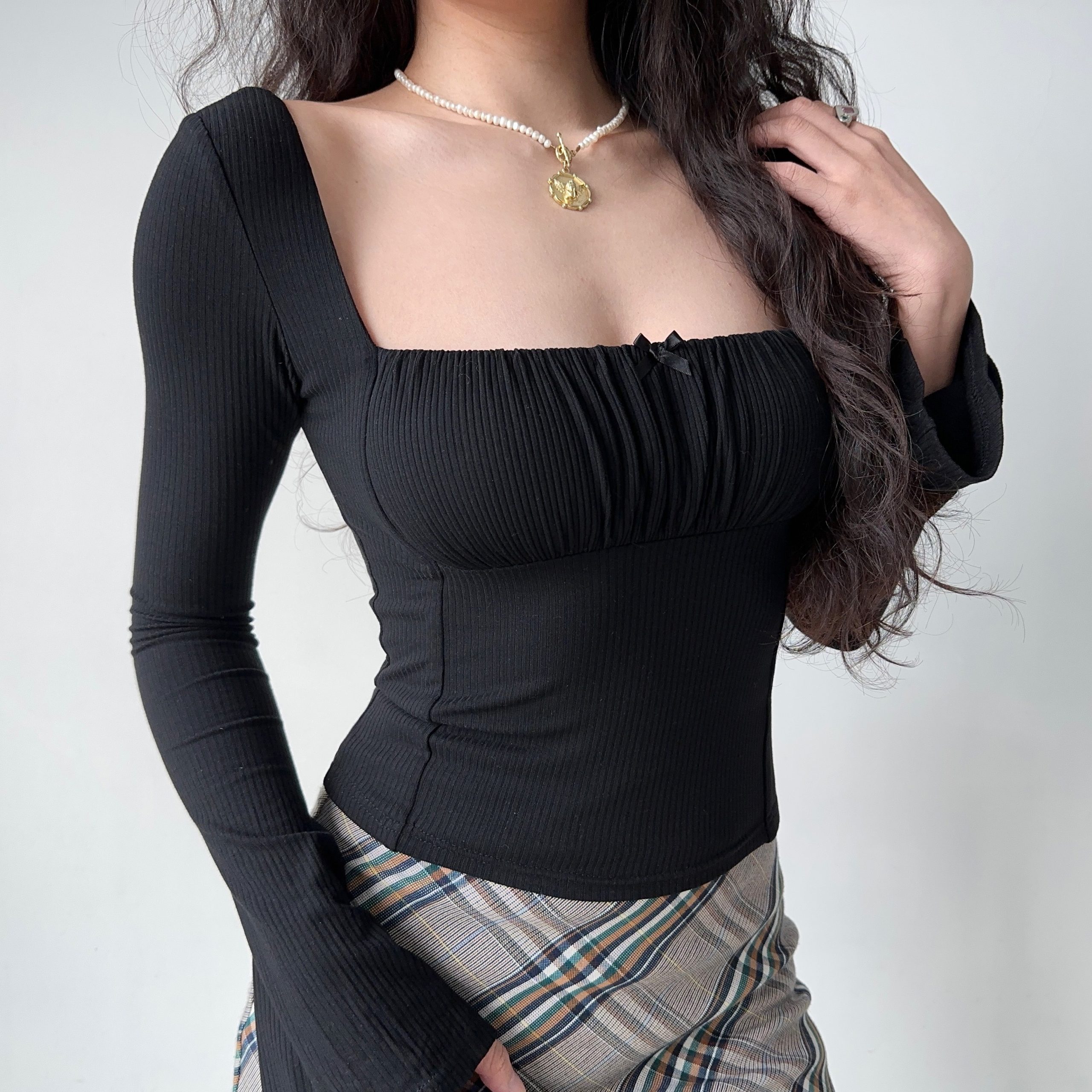 Slim Fit Long Sleeve Black Women Three Dimensional Cut, Flattering Square Neck High-quality product featuring easy costumes women, coquette outfit, work outfits women and more. Modern design that fits the latest trends. Premium materials ensure durability and comfort. Order now for special offers! Product designed with attention to every detail. Suitable for all occasions and personal styles.
